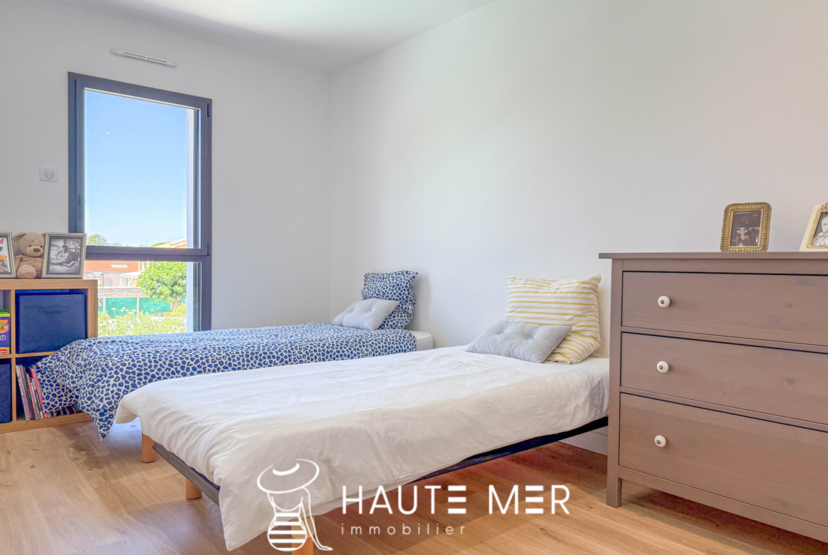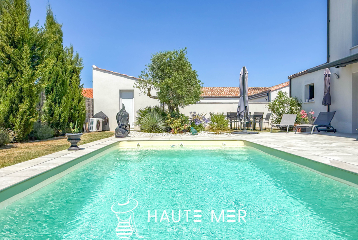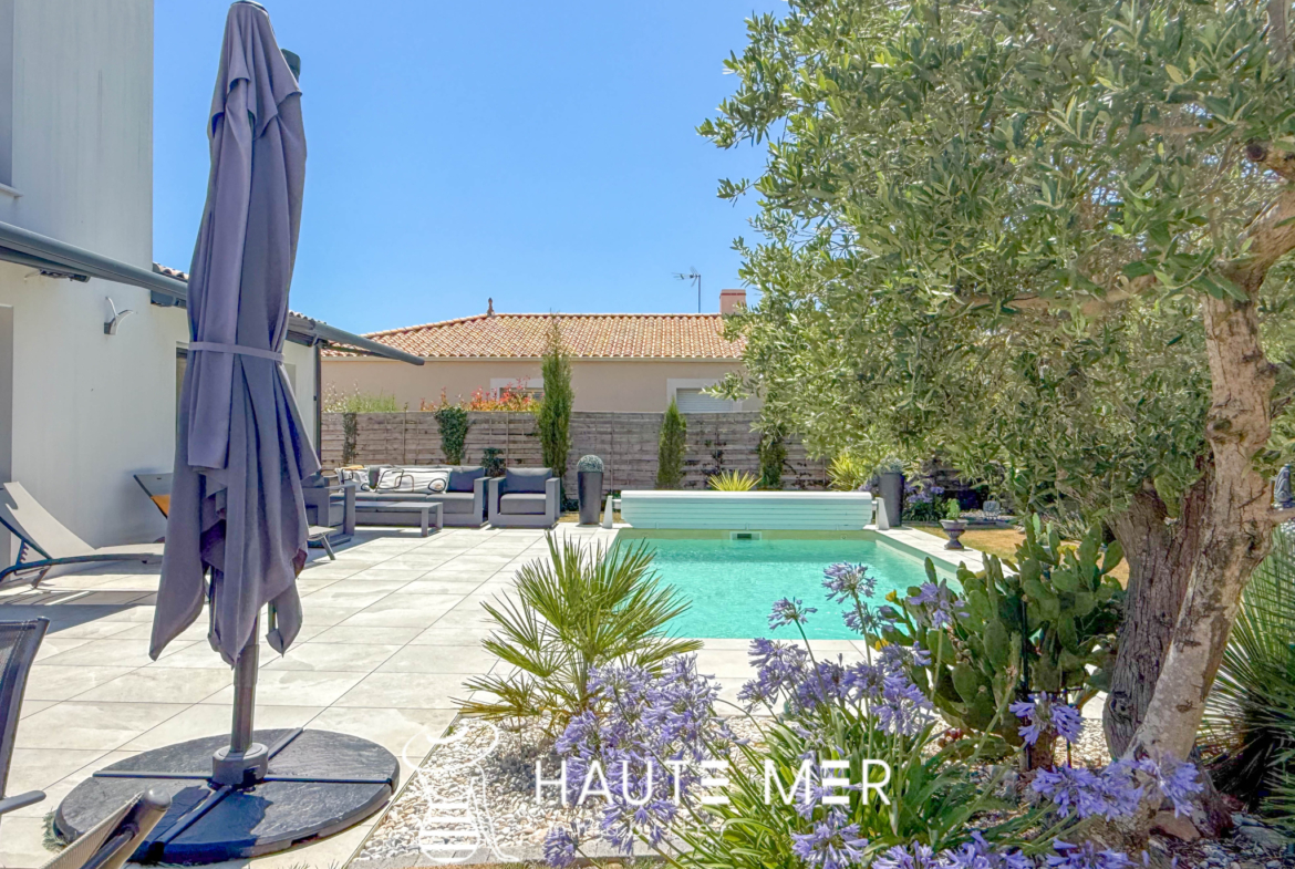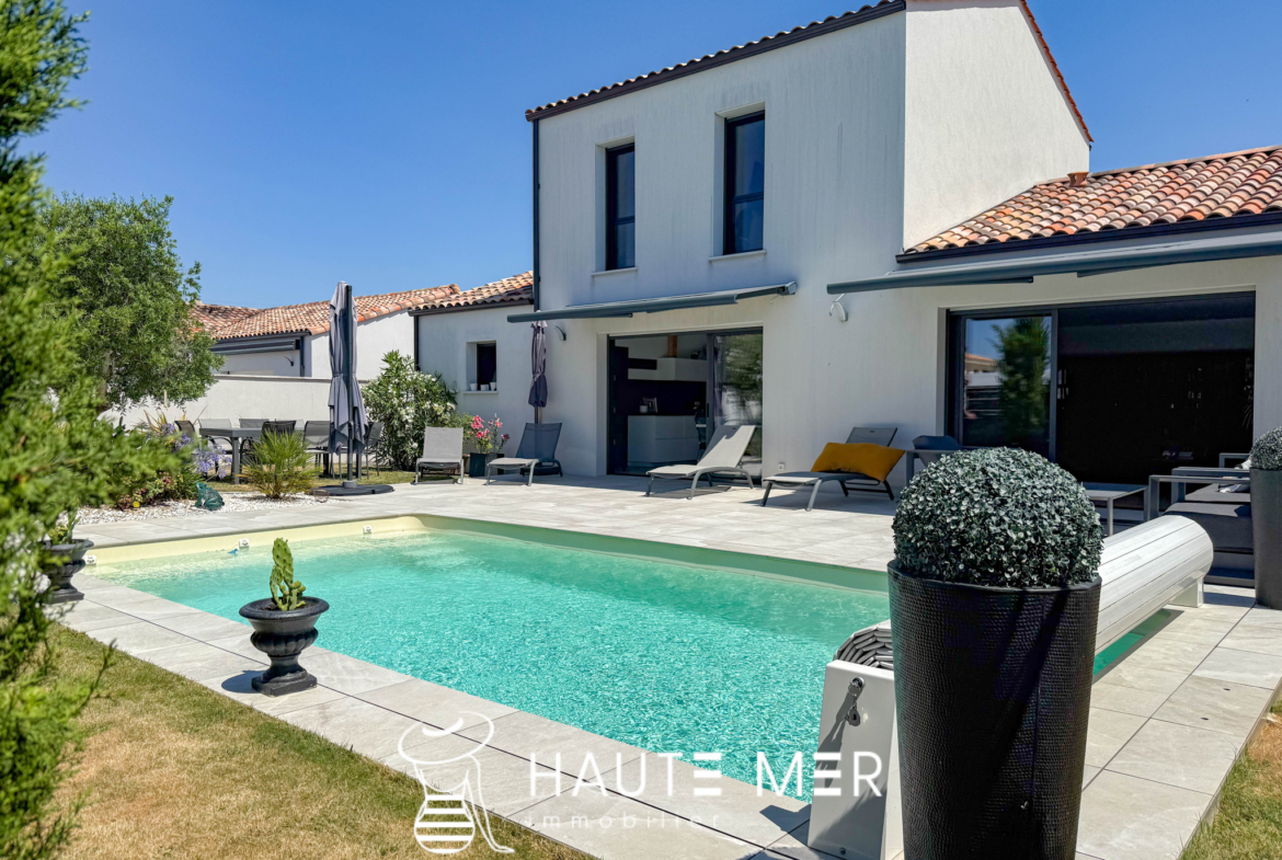 Nichée dans un quartier résidentiel recherché, à proximité du port de Bourgenay, cette maison aux douces lignes contemporaines de 2021 séduit par ses volumes et ses prestations soignées. Dès l’entrée, le charme opère : une pièce de vie baignée de lumière naturelle, une cuisine élégante et fonctionnelle, l’ensemble se prolongeant sur un jardin arboré et aménagé d’une terrasse et doté d’une piscine. L’espace nuit est rythmé par deux lieux distincts : le rez-de-chaussée accueille une suite parentale offrant calme et confort au quotidien. L’étage est composé de deux agréables chambres, idéales pour recevoir, se partageant une salle d’eau. Un garage et une buanderie viennent compléter cette lumineuse maison à l’architecture rectiligne et aux finitions remarquables.