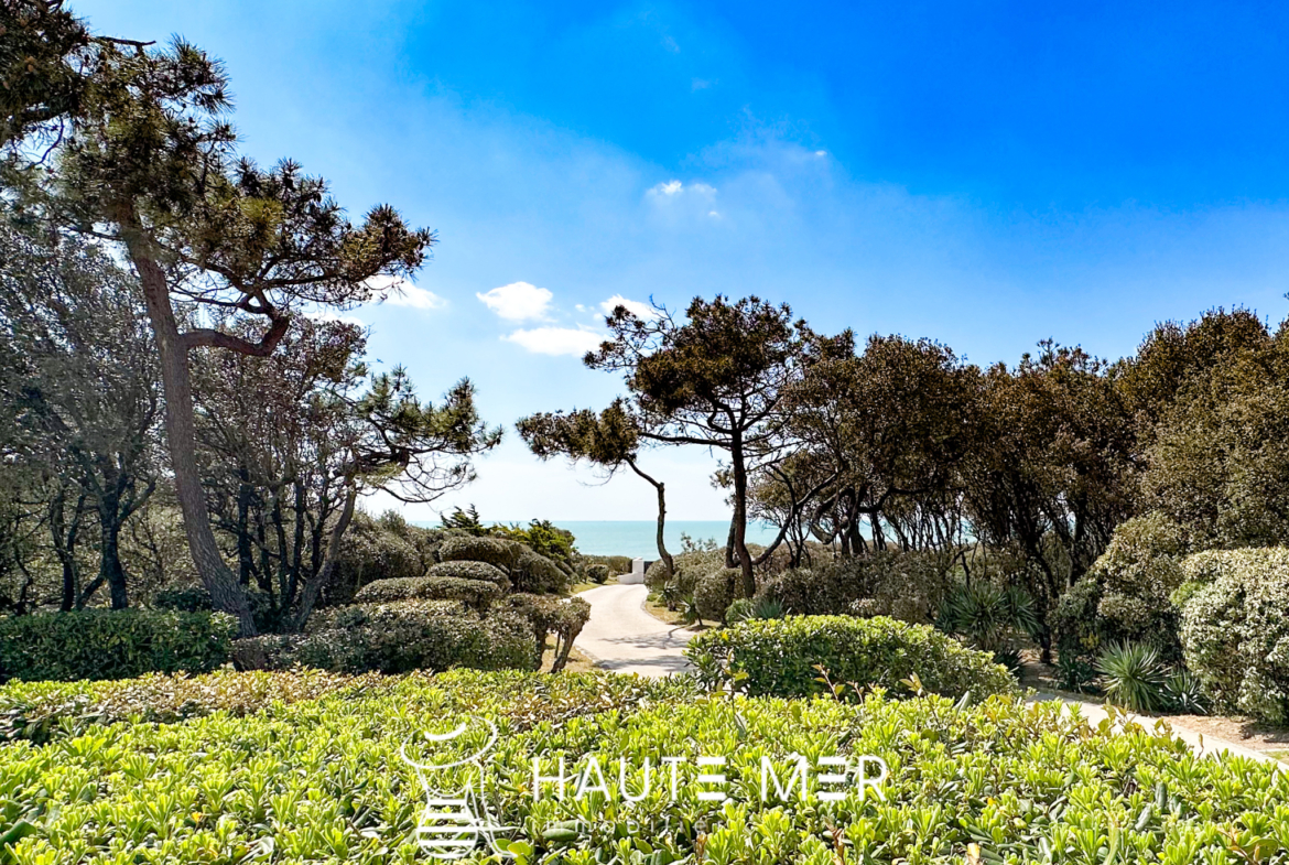 L’agence HAUTE MER IMMOBILIER recommande cette villa de bord de mer pour son cadre verdoyant et intimiste.