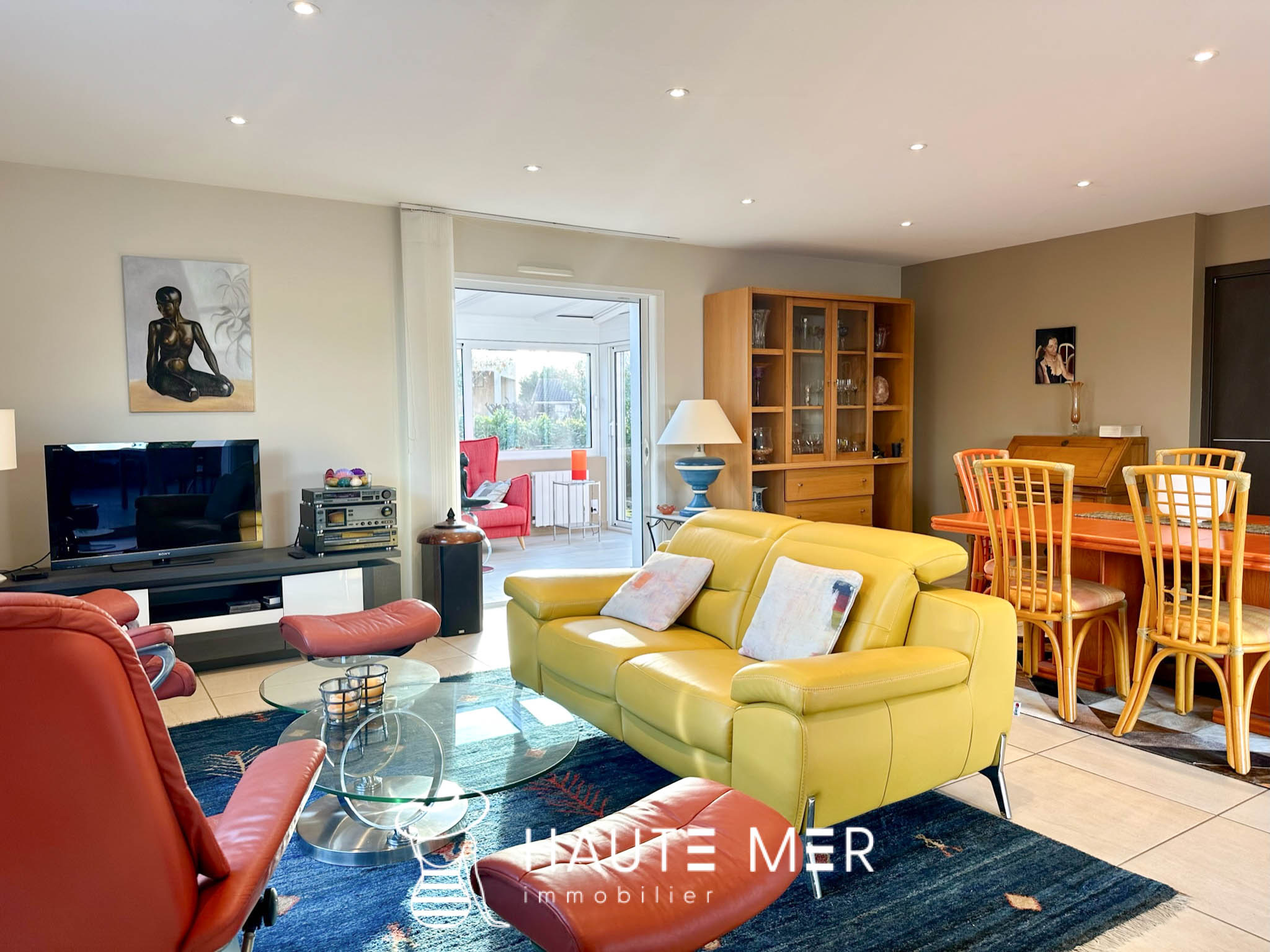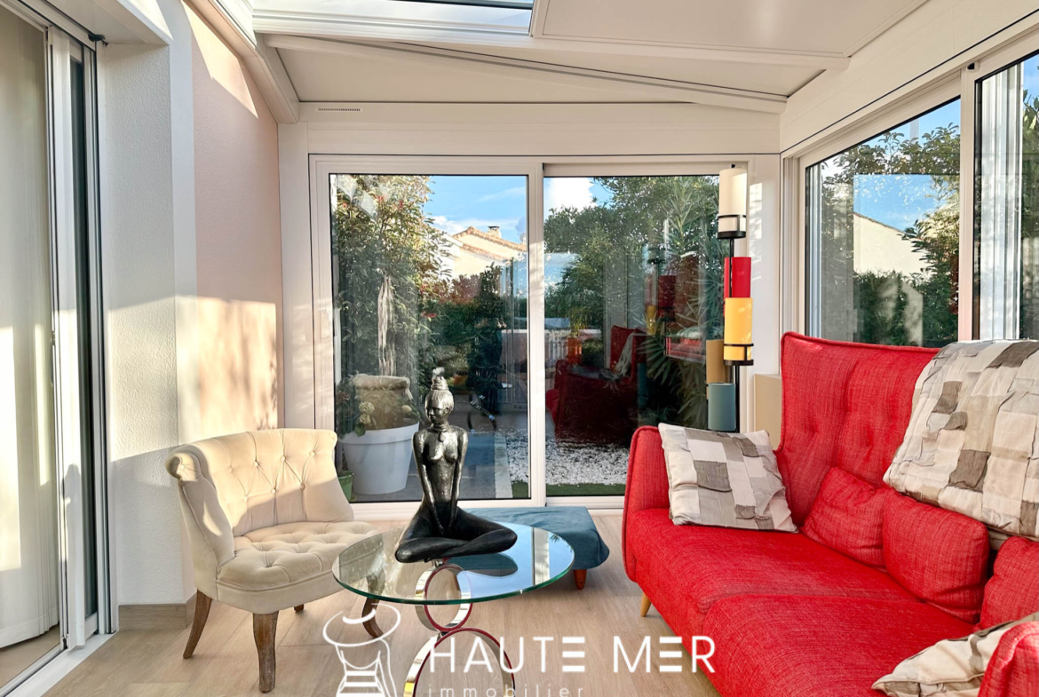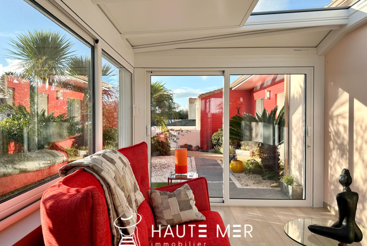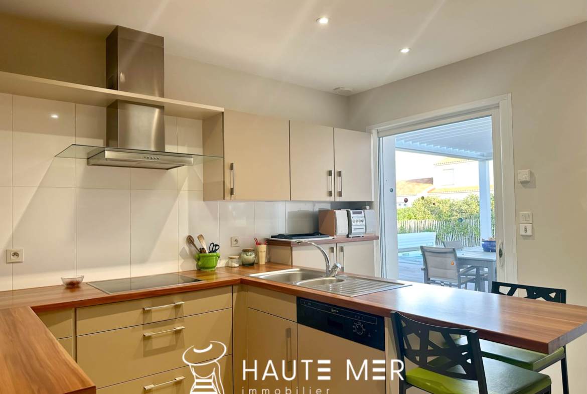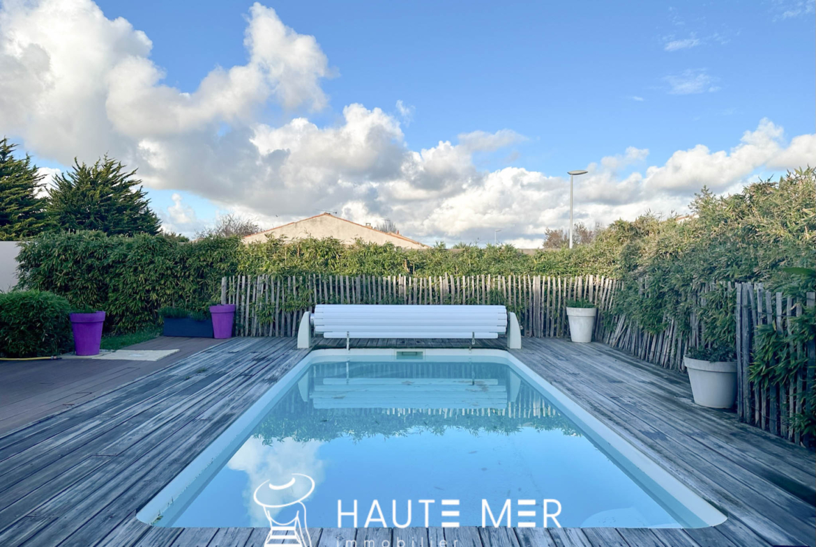 À moins d’1 km des commerces et 2 km de la plage de Tanchet, dans une rue calme, siège cette maison à l’agencement accompli. Lumineuse et spacieuse, la pièce à vivre s’ouvre sur son jardin avec 3 baies vitrées profitant ainsi de la piscine et de la pergola bioclimatique, lieux propices aux moments de convivialité et de partage. Une amonieuse véranda exposée à l’ouest ainsi qu’une grande cuisine équipée allient fonctionnalité et confort de vie. L’espace nuit de plain-pied se pare de 4 chambres avec rangements dont l’une dispose d’une salle d’eau privative. Une salle de bains avec douche et baignoire, 2 wc ainsi qu’une buanderie finalisent cet espace. Un double garage de 48 m2 complète ces prestations de choix.