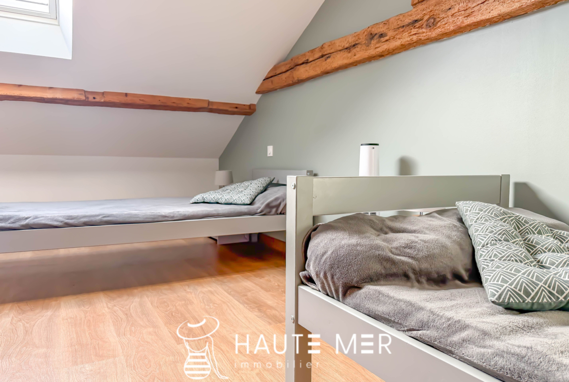 Entre le quartier recherché d’Arago et le cœur animé des Sables-d’Olonne, à moins de 400 mètres de l’océan, cet ensemble immobilier offre une qualité de vie, où volumes et lumière se conjuguent harmonieusement. L’ensemble se compose de deux maisons indépendantes et d’un studio, idéal pour accueillir famille, amis ou envisager un projet locatif. La première maison séduit par sa vaste pièce de vie baignée de lumière orientée sur le jardin, prolongée par une cuisine aménagée et équipée, pensée pour le quotidien comme pour les moments de partage. Un bureau et une salle d’eau ce niveau. À l’étage, l’espace nuit propose trois chambres, dont une suite avec dressing, ainsi qu’une salle de bain confortable. La seconde maison, offre une grande pièce de vie conviviale, une cuisine séparée, idéale pour recevoir, ainsi qu’une buanderie fonctionnelle. À l’étage, deux chambres se partagent une salle d’eau, tandis que le dernier niveau révèle un dortoir, véritable cocon dédié aux enfants. Un studio indépendant vient compléter cet ensemble, apportant une flexibilité précieuse. Dans le prolongement des habitations, un joli jardin arboré, exposé plein sud, s’impose comme un véritable écrin de verdure en cœur de ville, propice au calme et à la détente. Enfin, deux garages viennent renforcer les atouts de cette propriété.