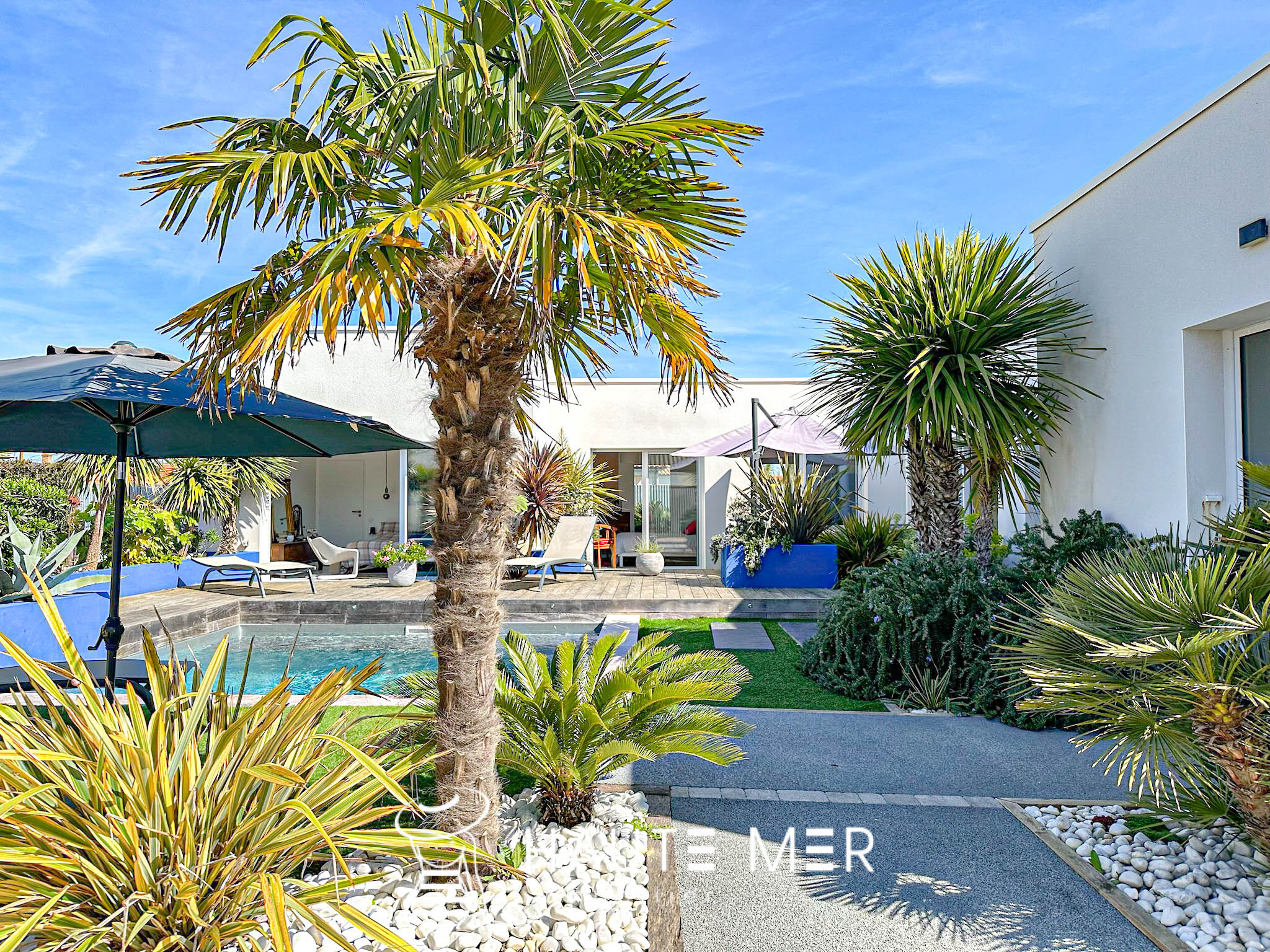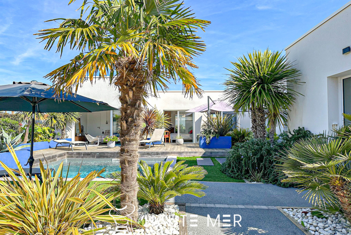 BALI – Située à moins de 2 km du bord de mer et du golf, cette réalisation contemporaine aux lignes épurées déploie 152 m2 sur un terrain de près de 900 m2 . L’entrée s’ouvre sur un espace à vivre baigné de lumière sous 2,90 mètres de hauteur sous plafond, accentuant ainsi la sensation d’espace et de clareté. Une magnifique cuisine dînatoire domine la pièce de vie. Les nombreuses ouvertures permettent l’accès au jardin paysagé et aménagé d’une piscine, représentant autant d’invitations à la détente et à la convivialité. La villa abrite 3 chambres, une salle de bains et une salle d’eau. Pour le confort, elle dispose d’un cellier, d’une pergola permettant d’accueillir aisément plusieurs véhicules. Exclusivité HAUTE MER IMMOBILIER.