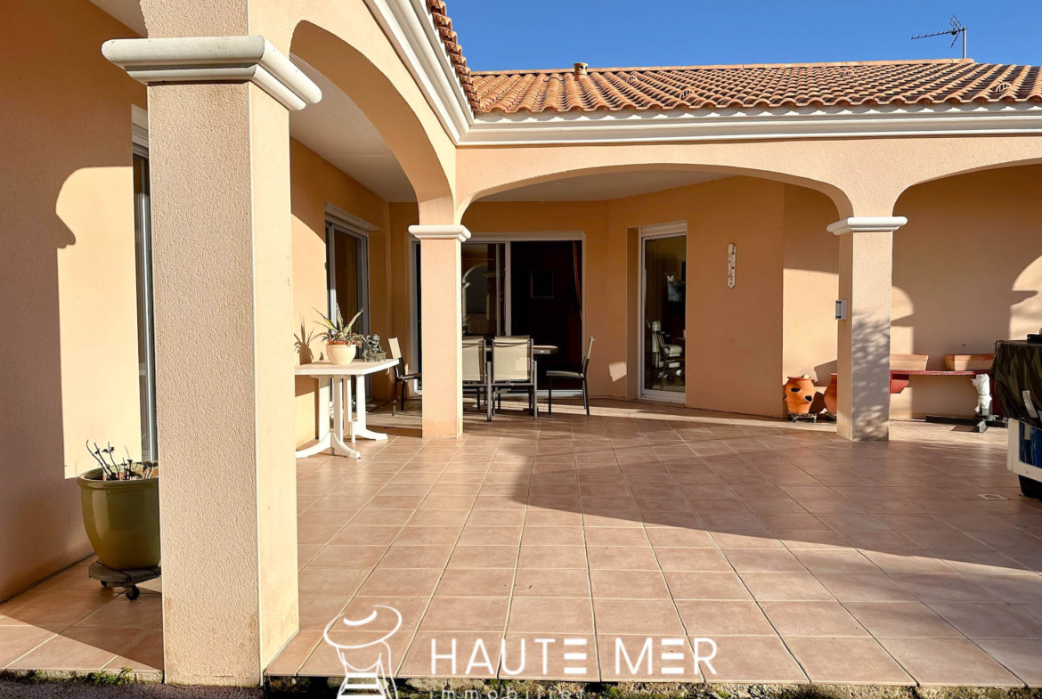 SOUS COMPROMIS – À moins d’1 km des commerces, le quartier résidentiel de la Gillerie abrite une maison récente de 167 m2 conçue de plain-pied et tournée vers une étendue naturelle préservée. L’espace à vivre de 46 m2 est rythmé par une enfilade de pièces se prolongeant vers la terrasse couverte ainsi qu’une spacieuse cuisine s’orientant sur le jardin. L’espace nuit se compose de 4 confortables chambres, une salle d’eau et une salle de bains. La maison dispose de spacieuses dépendances : une buanderie, un garage ainsi qu’un atelier viennent parfaire la distribution de cette lumineuse et confortable maison. Exclusivité HAUTE MER IMMOBILIER.