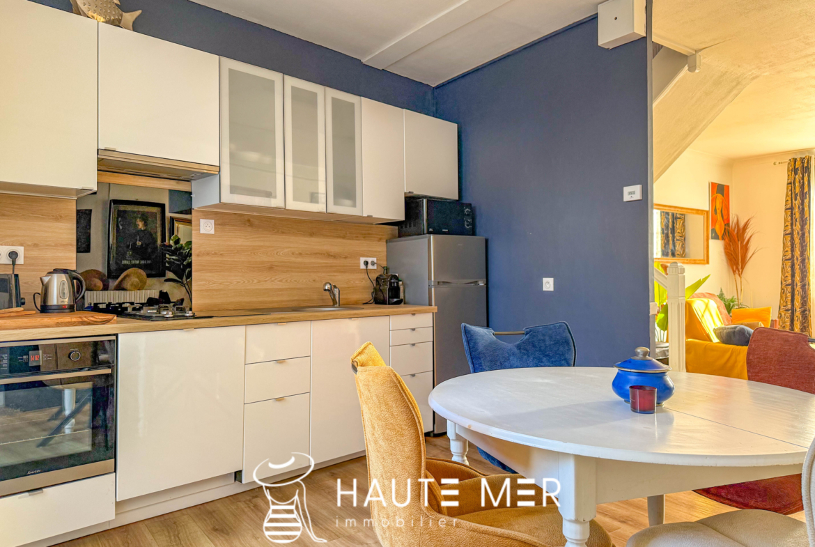 Située à seulement 200 mètres de la grande plage et des commerces animés d’Arago, cette charmante maison Sablaise est un véritable coup de coeur. Dès l’entrée, la lumière naturelle s’invite généreusement dans chaque pièce, révélant le caractère et l’atmosphère chaleureuse de cette maison entièrement rénovée avec soin. La pièce de vie, baignée de clarté, accueille une cuisine aménagée et équipée, ouverte sur une agréable courette, véritable écrin intimiste pour les instants du quotidien. L’espace nuit se compose de deux chambres, dont une suite disposant de sa salle d’eau, complétées par une salle de bains, une lingerie fonctionnelle et deux WC, pour un confort optimal. Un lieu de vie rare, où l’on savoure la douceur de vivre sablaise, entre océan, lumière et vie de quartier.