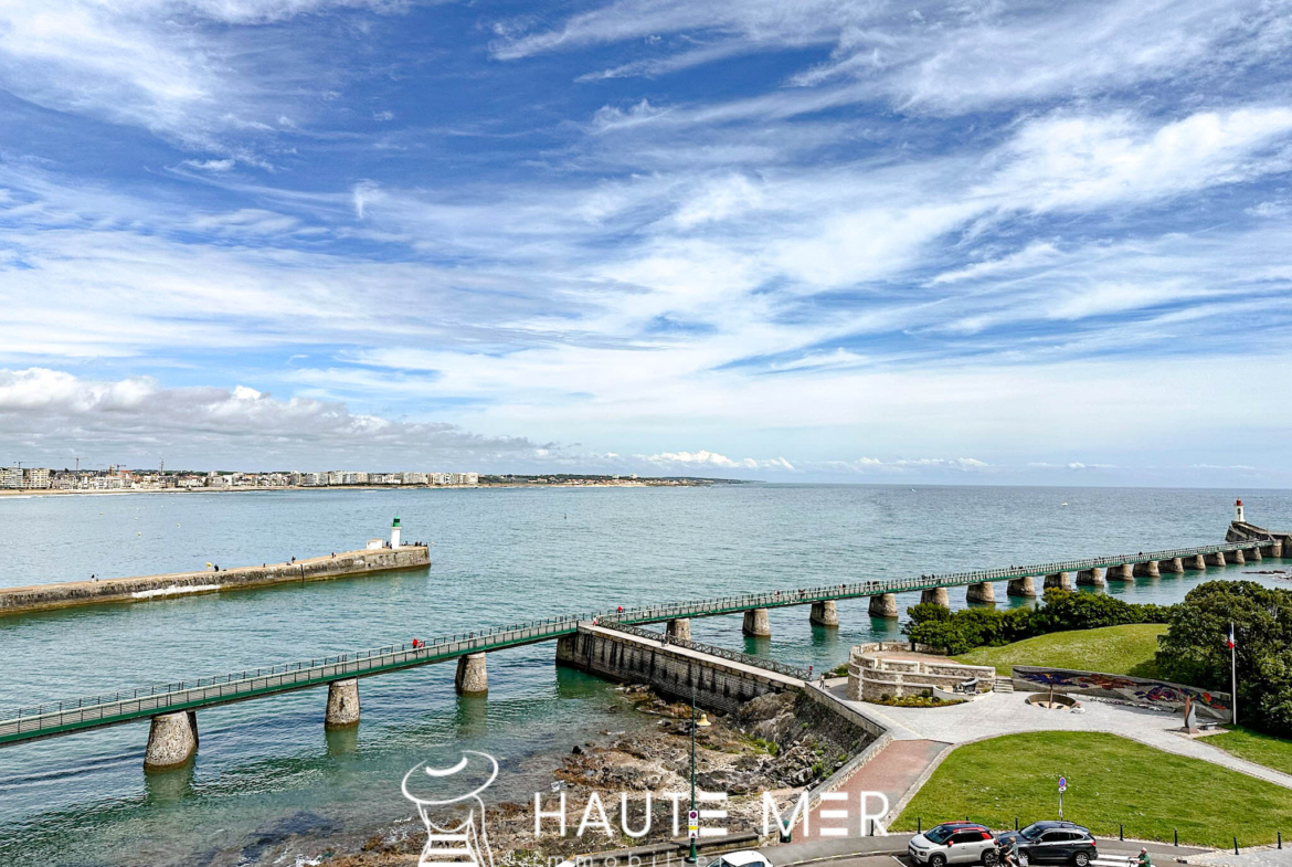 Situé dans un quartier privilégié, à la croisée des quais de la Chaume et de la côte sauvage, ce spacieux T3 dévoile un point de vue exceptionnel sur la baie des Sables d’Olonne. Son volume de 79 m2 distribue généreusement les différentes pièces. Le séjour se prolonge vers un balcon à la vue dégagée sur l’océan, idéal pour les déjeuners. Placé au 6ème étage d’une résidence entretenue, le panorama offre une alliance parfaite entre l’entrée du port et la grande plage. L’espace nuit composé de deux chambres avec rangements ainsi qu’une cave et un parking privatif confortent la sensation de bien être. Ce lumineux appartement promet de belles perspectives de rénovation à ses futurs occupants.