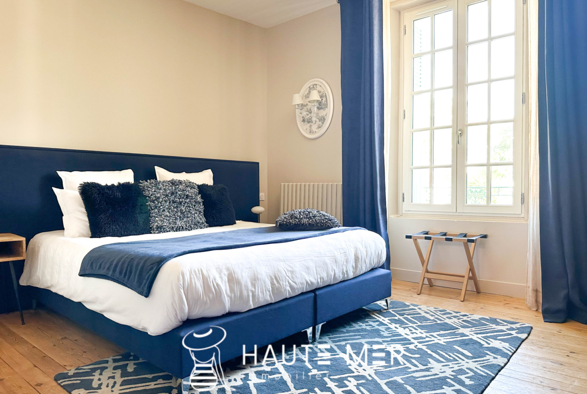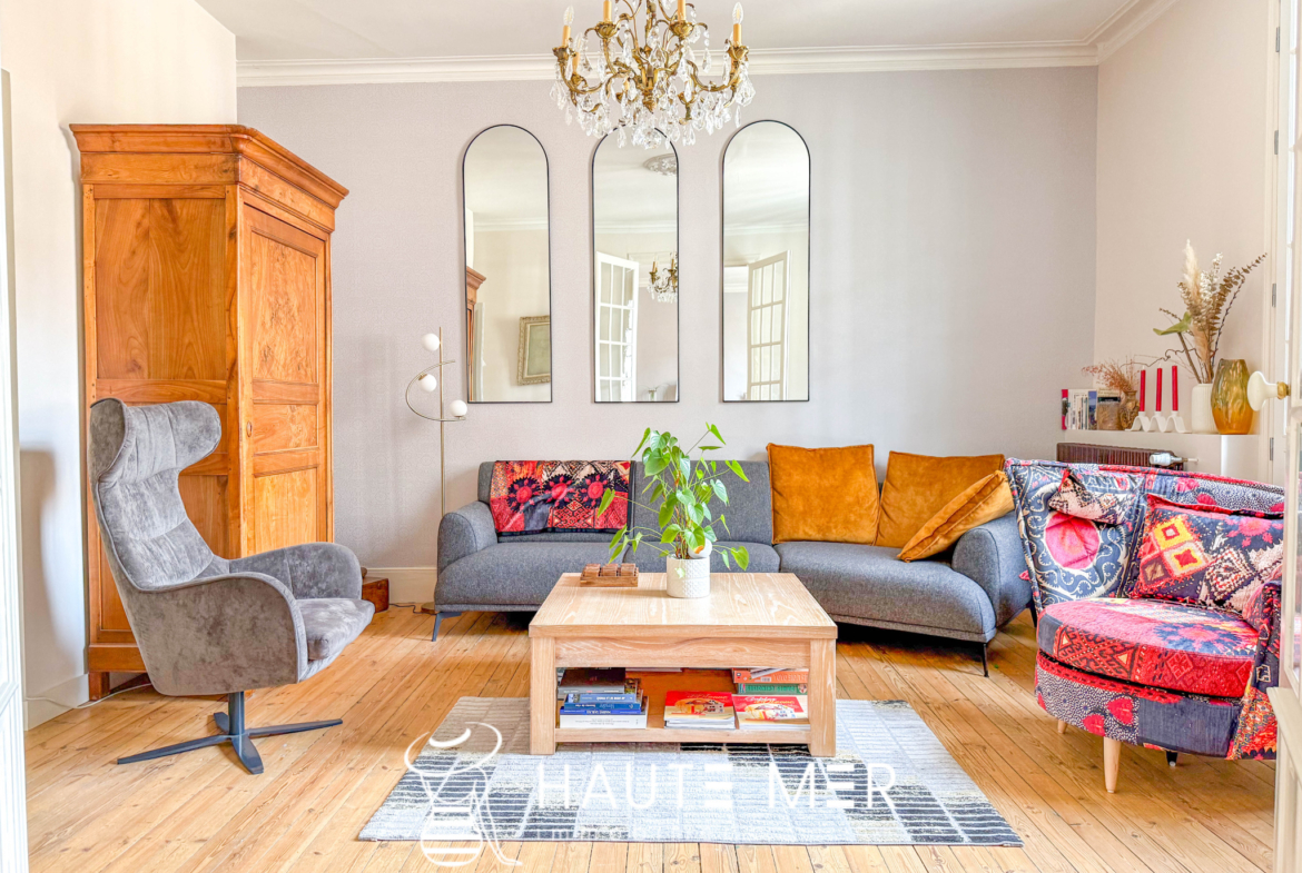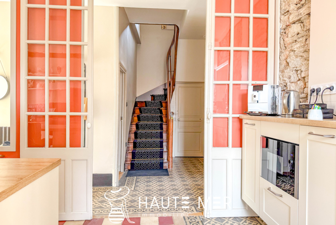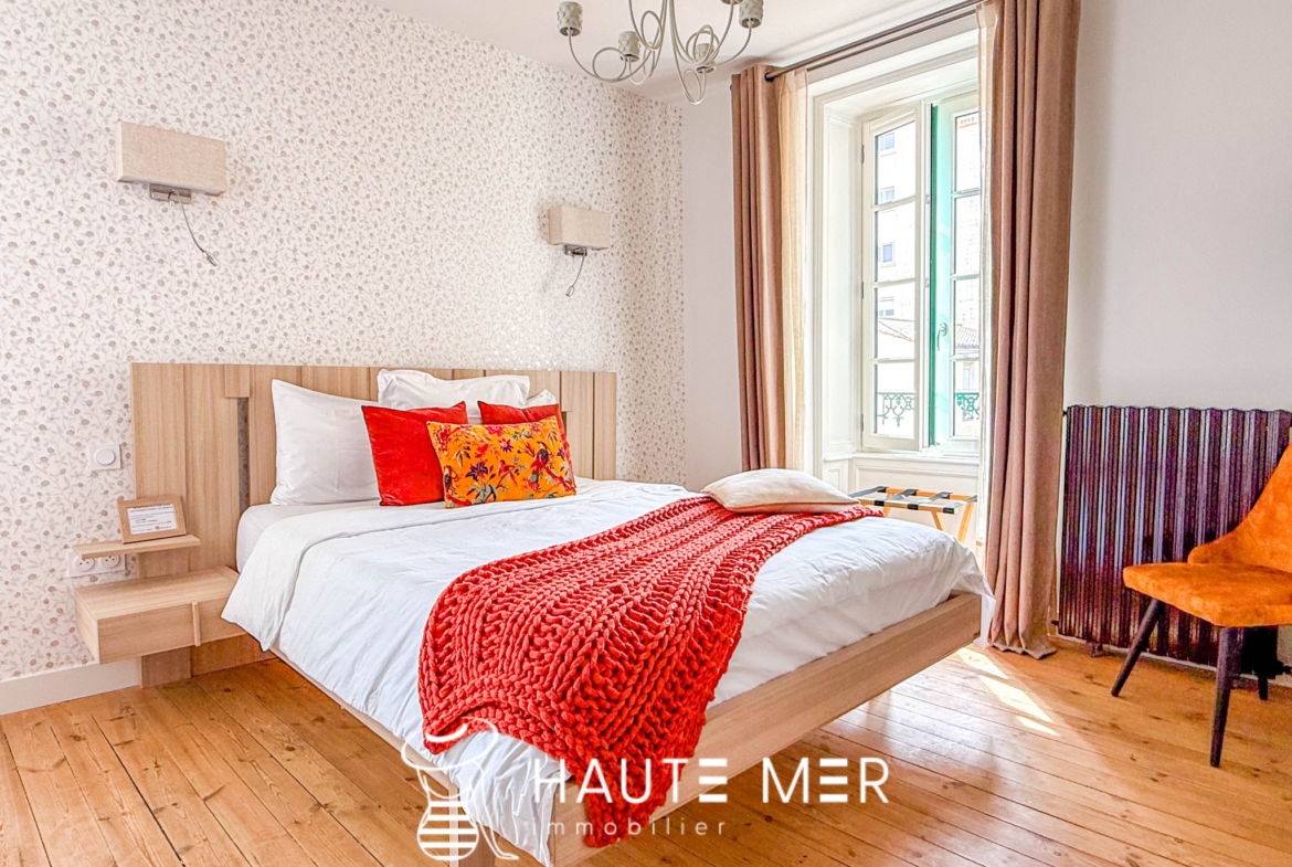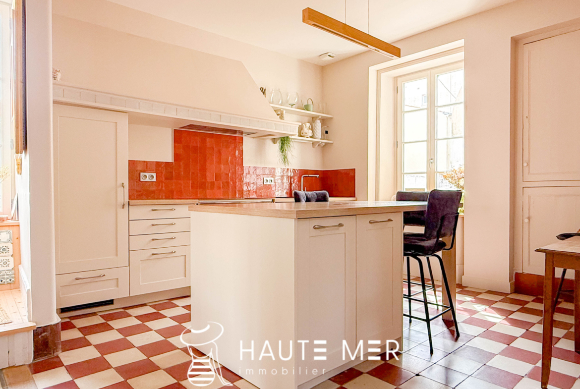À moins de 150 mètres de la grande plage, dans une rue paisible qui mène en quelques instants vers l’effervescence du marché Arago et la vitalité du centre-ville, se dévoile un ensemble immobilier unique composé de deux maisons sablaises indépendantes. Ici, l’authenticité des demeures d’époque dialogue avec l’élégance d’une rénovation soignée, conjuguant le confort du moderne et le charme intemporel de l’ancien. La maison principale, figure de caractère, se déploie avec aisance sur trois niveaux. Le rez-de-chaussée s’ouvre par une entrée qui conduit vers un vaste espace de vie d’environ 60 m2. Cuisine dînatoire, salle à manger et salon s’y rencontrent dans une atmosphère chaleureuse, sublimée par une hauteur sous plafond généreuse, des moulures délicates et un parquet ancien qui témoigne du temps passé. Cet étage se complète d’un bureau intimiste.À l’étage supérieur, l’élégance se poursuit avec quatre belles chambres, chacune dotée de sa propre salle d’eau, toutes baignées de lumière et bénéficiant d’une belle hauteur sous plafond qui confère aux lieux une impression d’espace et de fluidité. Une buanderie fonctionnelle et une cinquième suite viennent compléter la maison pensée pour le confort du quotidien. Les combles, offrent un stockage supplémentaire. La seconde maison, également édifiée sur trois niveaux, s’inscrit comme un lieu à part entière. Une cuisine dînatoire et un salon y occupent le rez-de-chaussée. Les étages révèlent deux chambres, chacune prolongée par sa salle d’eau, et un bureau, offrant la possibilité d’accueillir famille, amis en toute indépendance. En extérieur, une cour discrète se dévoile, véritable écrin pour les soirées estivales, où l’on imagine des dîners prolongés ou de doux moments de repos à l’abri des regards. Deux places de stationnement viennent sécuriser et compléter l’ensemble. À seulement 30 mètres, un garage à louer parachève le confort et la praticité du quotidien. Les atouts de ces deux propriétés sont multiples et rares : volumes généreux, belle hauteur sous plafond, parquet ancien, murs en pierre, carreaux de ciment et finitions élégantes. Chaque détail a été pensé pour préserver l’âme de la maison tout en offrant le standing et la fonctionnalité que l’on attend d’une rénovation contemporaine de qualité. Un lieu de vie singulier, où l’histoire et l’élégance des demeures sablaises rencontrent le confort moderne, à deux pas de l’océan et du cœur vibrant des Sables d’Olonne.