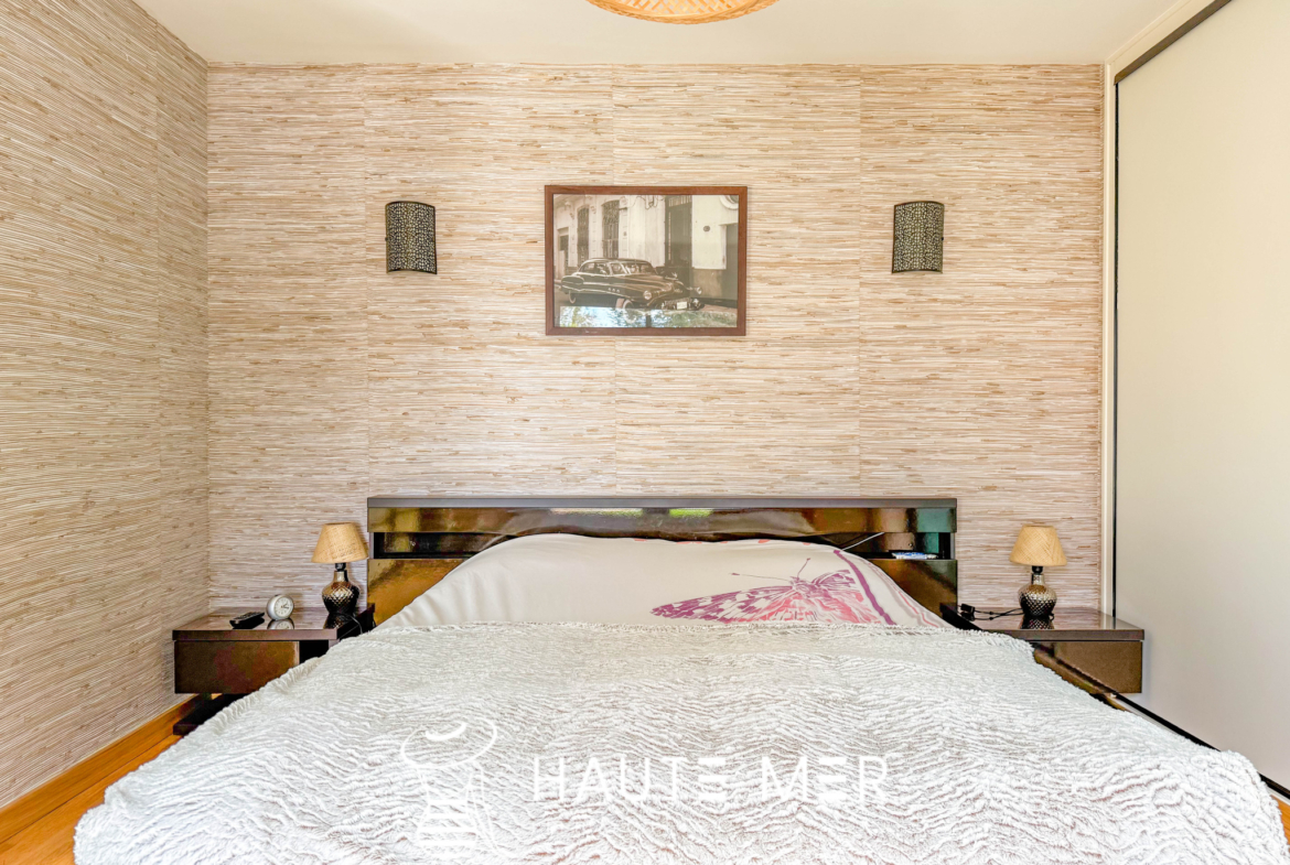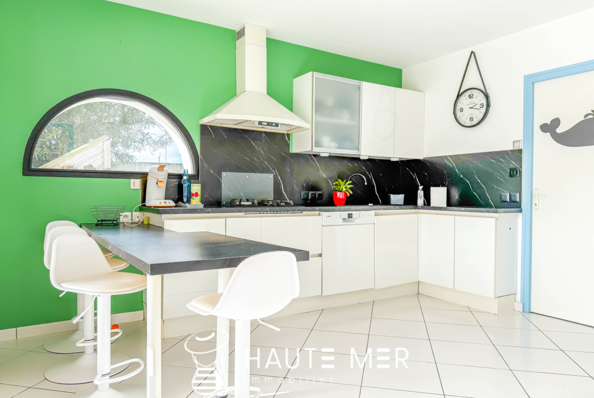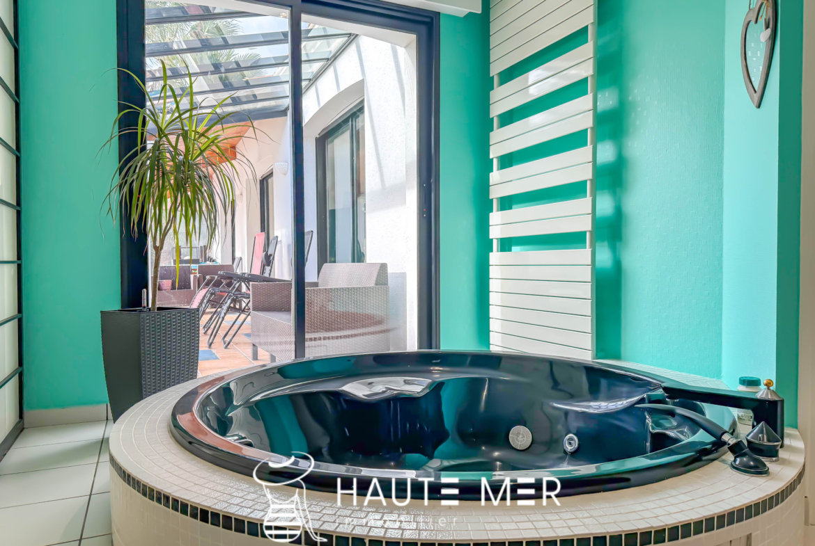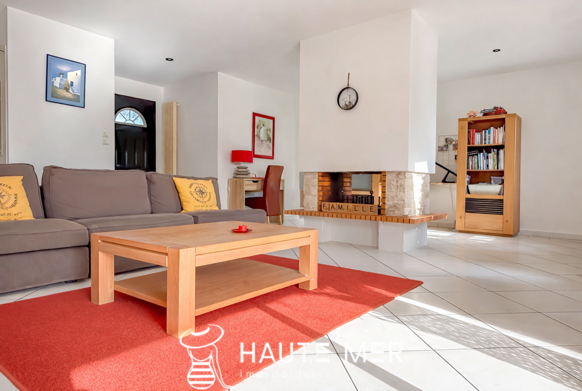 Dans un environnement de qualité, au cœur d’un cadre verdoyant et préservé, cette maison de plain-pied séduit par son harmonie avec la nature et ses volumes généreux, tournée vers un magnifique terrain de 1 300 m2 agrémenté d’une piscine exposée plein sud. La pièce de vie, véritable cœur de la maison, dévoile un spacieux séjour avec cheminée d’environ 50 m2, largement ouvert sur une vaste terrasse couverte qui prolonge naturellement les espaces vers le jardin. Ici, l’intérieur et l’extérieur dialoguent en douceur, offrant une atmosphère propice à la détente et aux moments partagés. La cuisine équipée, conviviale et fonctionnelle, s’ouvre également sur la terrasse, facilitant une vie quotidienne tournée vers l’extérieur. La suite parentale, composée d’une chambre, d’une salle de bains et de rangements, bénéficie elle aussi d’un accès direct à la terrasse et au jardin, offrant un espace intime et lumineux. L’espace nuit accueille deux chambres d’invités se partageant une salle d’eau, ainsi qu’un bureau. Une pièce indépendante, pouvant aisément devenir une chambre supplémentaire, complète l’ensemble. Un cellier et un grand garage indépendant d’environ 40 m2 viennent parfaire les prestations de cette propriété. Une maison chaleureuse et fonctionnelle, où la qualité de l’environnement, les volumes et l’ouverture sur le jardin composent un cadre de vie particulièrement agréable.