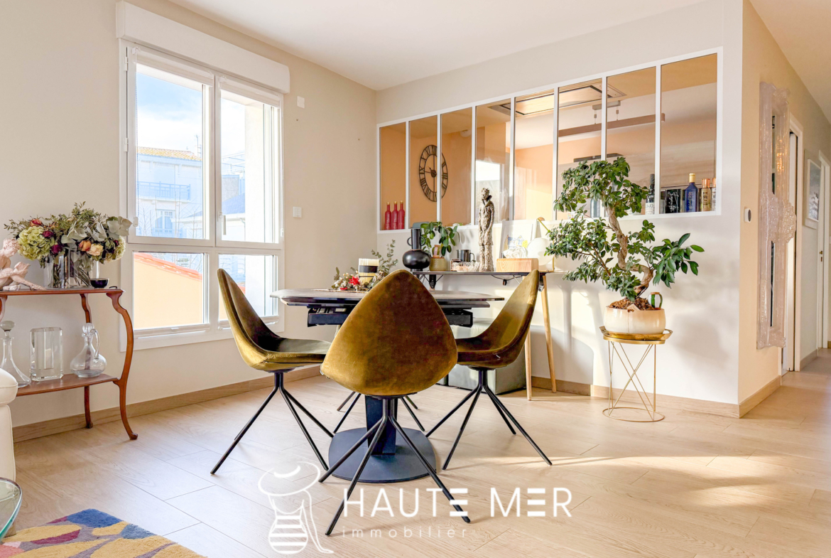 À moins de 150 mètres du remblai et à deux pas du marché Arago cet appartement de standing offre une atmosphère lumineuse et raffinée où chaque volume a été imaginé pour conjuguer douceur de vivre, élégance et confort au quotidien où tout se fait à pied. Il offre une vaste entrée, par la suite, la pièce de vie s’ouvre généreusement sur un balcon spacieux baigné de lumière naturelle et offrant une continuité harmonieuse entre intérieur et extérieur. Dans le prolongement, la cuisine séparée, aménagée et équipée se fond dans l’ensemble avec élégance. L’appartement dévoile deux espaces nuits parfaitement séparés avec un premier composé de deux chambres et d’une salle d’eau offrant intimité et fonctionnalité ; et un second entièrement dédié à la suite parentale révélant un dressing sur mesure et une salle d’eau. Lumineux, spacieux, doté de nombreux rangements et situé dans une résidence de standing bénéficiant d’un emplacement prisé ce bien rassemble l’ensemble des atouts d’un cadre de vie rare et recherché sur le littoral. Un garage vient enfin compléter cet ensemble apportant sérénité et confort dans un environnement convoité.