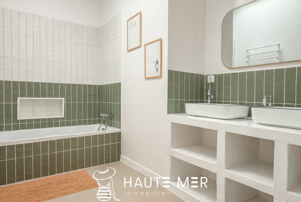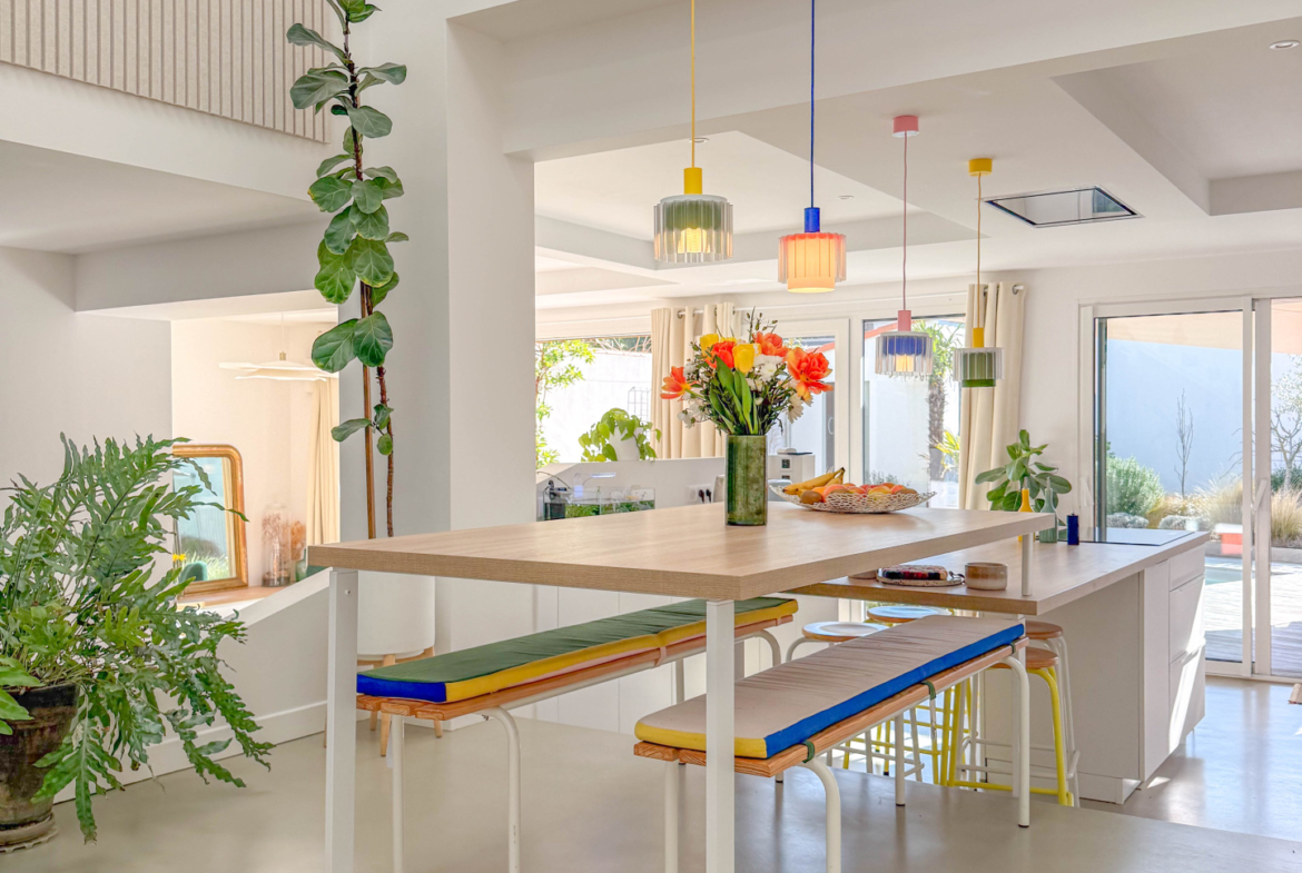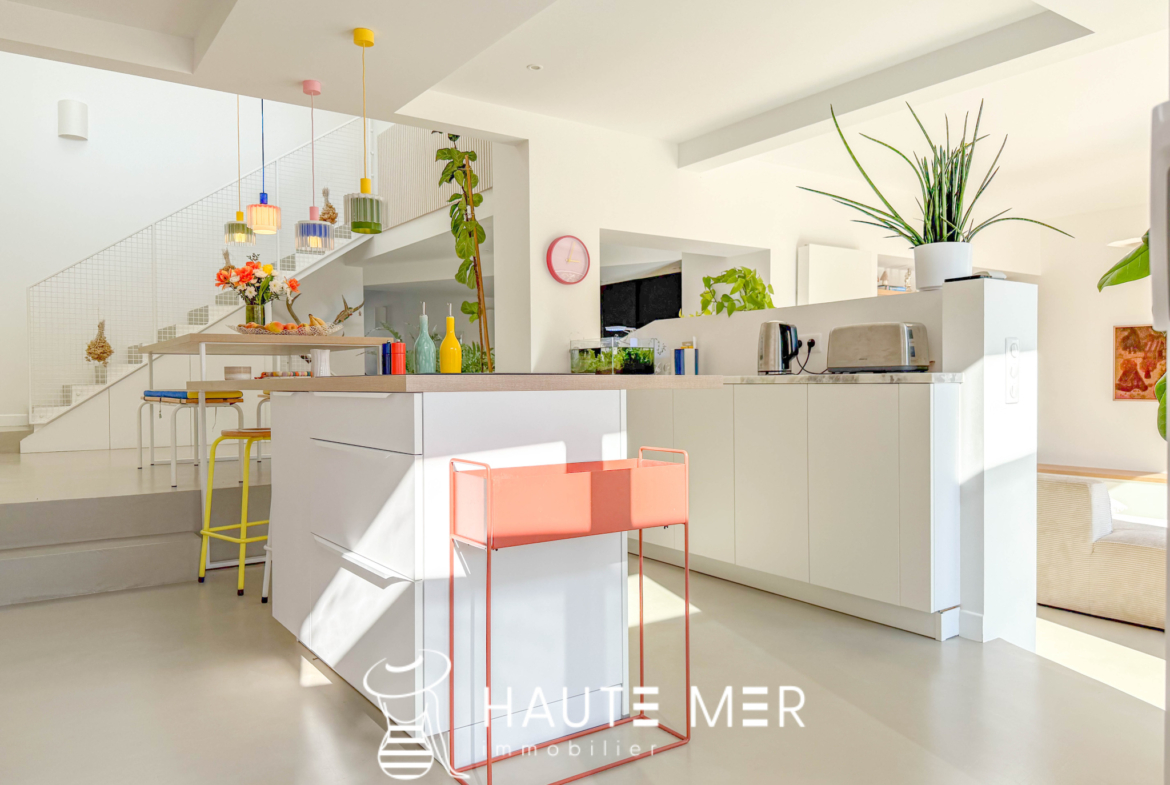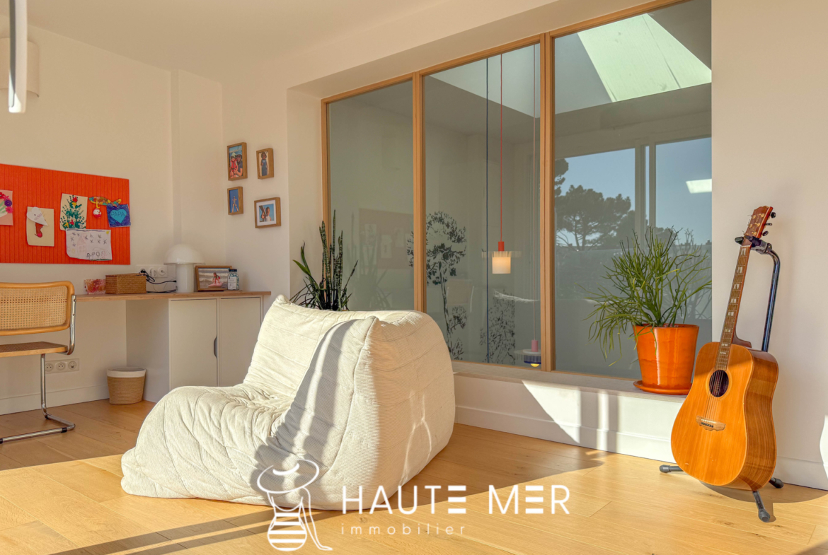 Au cœur du quartier très recherché des Présidents, cette villa entièrement repensée avec des matériaux haut de gamme dévoile une atmosphère à la fois chaleureuse et résolument contemporaine. Développant 166 m2 habitables, la maison s’organise autour d’un superbe espace de vie d’environ 50 m2, où séjour et cuisine équipée composent un lieu de réception convivial et lumineux. L’ensemble s’ouvre largement plein sud sur le jardin, offrant une belle continuité entre intérieur et extérieur. À l’abri des regards, le jardin paysager avec piscine devient un véritable espace de détente, baigné de lumière et propice aux moments partagés en toute intimité. La maison propose un bureau, cinq chambres, dont deux suites disposant de leur salle d’eau privative. Trois salles d’eau au total, de nombreux rangements intégrés, une buanderie, une cave ainsi qu’un garage confortable viennent compléter les prestations de cette propriété familiale aux volumes parfaitement maîtrisés. À l’étage, une terrasse supplémentaire offre un espace extérieur privilégié, idéal pour profiter des douces fins de journée. L’adresse constitue l’un de ses atouts majeurs : la plage des Présidents et l’ensemble des commerces se rejoignent à pied, à moins de 500 mètres. Une villa élégante et parfaitement rénovée, située dans l’un des quartiers les plus prisés du littoral sablais, où la douceur de vivre se conjugue naturellement avec la proximité de l’océan.