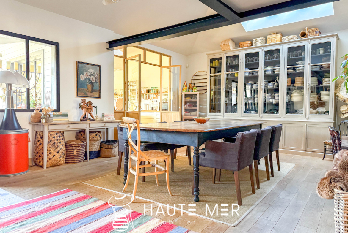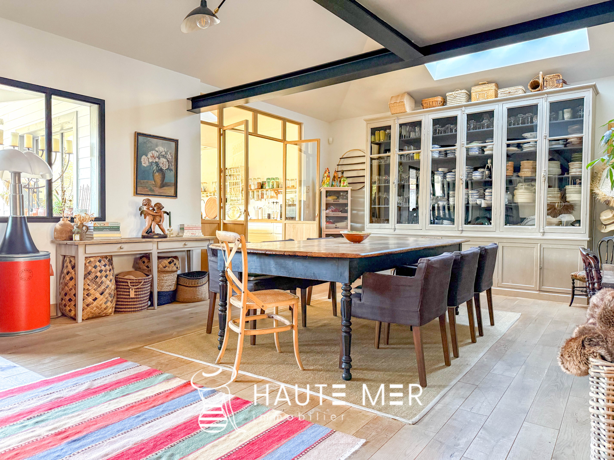 À quelques encablures des quais et des commerces, cette superbe villa T9 récente incarne à merveille l’esprit des maisons rétaises et noirmoutrines. Derrière ses murs de pierre se cache un véritable havre de paix, lumineux, spacieux et résolument familial. D’une surface généreuse de 290 m2, la maison principale séduit dès l’entrée par ses volumes et son raffinement. La cuisine, digne d’un chef étoilé, s’ouvre sur un vaste séjour-salon avec cheminée, prolongé par une cuisine d’été conviviale pour profiter des beaux jours. Le jardin clos de murs en pierre, magnifiquement paysagé, abrite une piscine chauffée et un atelier indépendant de 20 m2, parfait pour les amateurs de création ou de télétravail. Côté nuit, la villa offre 5 chambres, 4 salles d’eau, un bureau et 5 WC, ainsi qu’un patio intérieur qui baigne la maison de lumière naturelle. Le stationnement privé complète cet ensemble rare. Une seconde entrée dessert un second salon et une cuisine indépendante, permettant d’imaginer une maison d’amis ou un espace totalement autonome, regroupant trois des chambres principales. Alliance parfaite entre élégance, confort et fonctionnalité, cette propriété est une invitation à vivre la mer autrement : avec style, sérénité et grand air. Une maison rare, de qualité, où chaque détail respire la douceur de vivre.