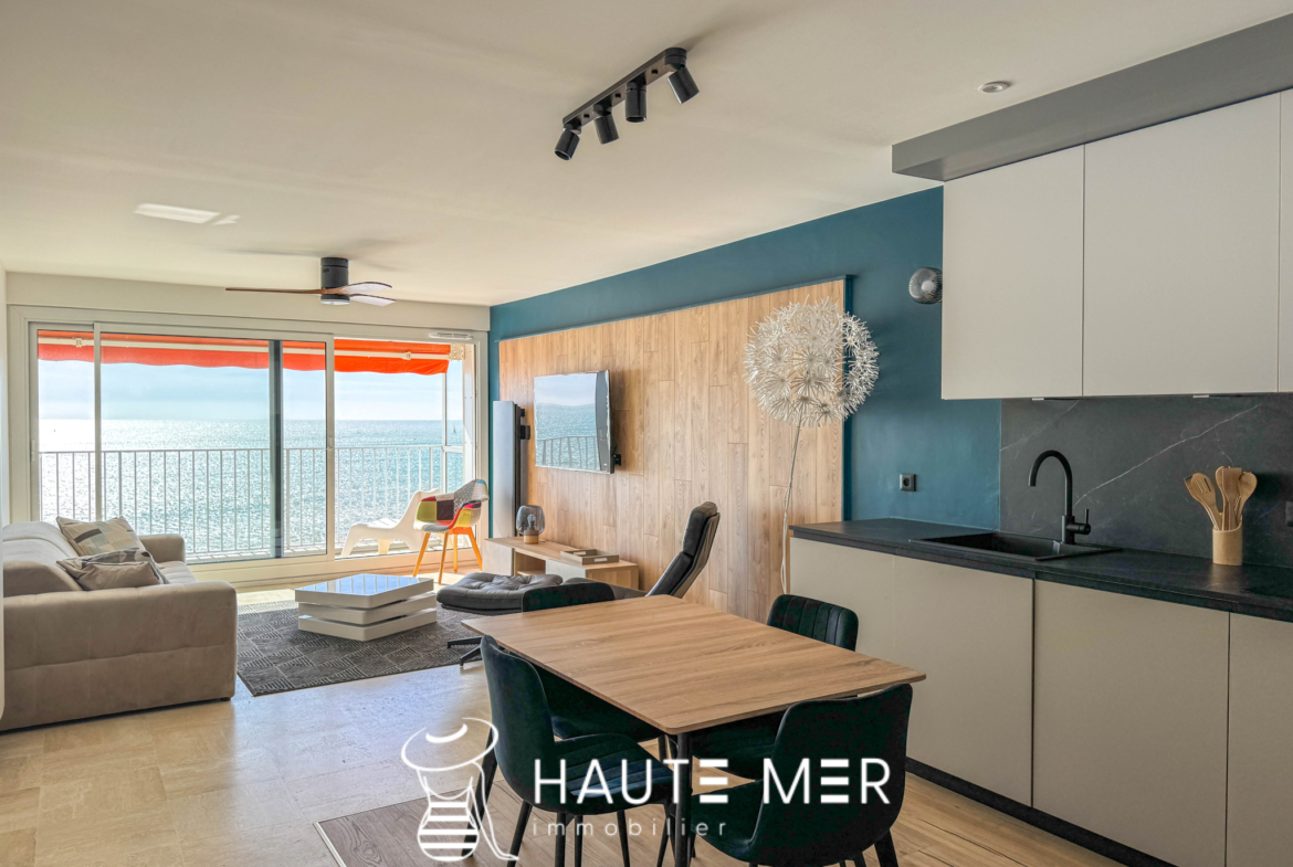 L’agence HAUTE MER IMMOBILIER recommande cet appartement pour sa vue exceptionnelle, sa rénovation soignée et son confort absolu.