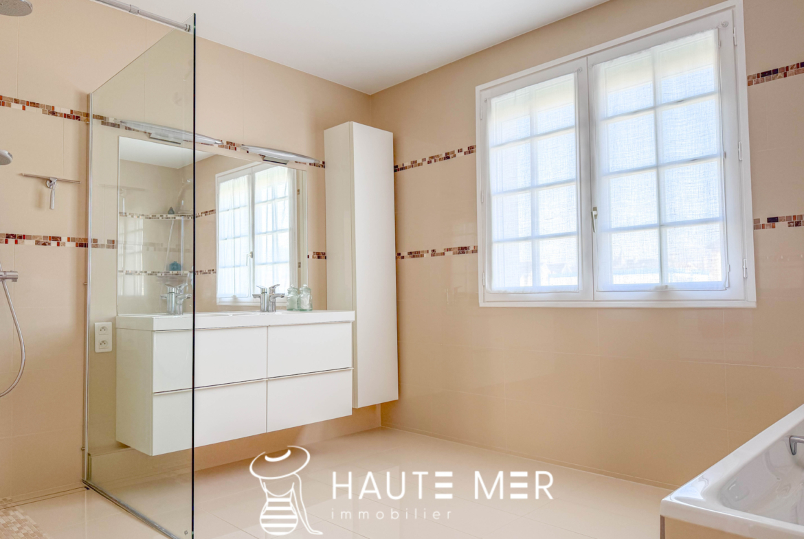 L’agence Haute Mer Immobilier vous recommande cette villa aux prestations complètes, pensée pour une vie de famille à l’année comme pour les séjours en bord de mer, où le marché, les commerces et l’océan deviennent un quotidien.