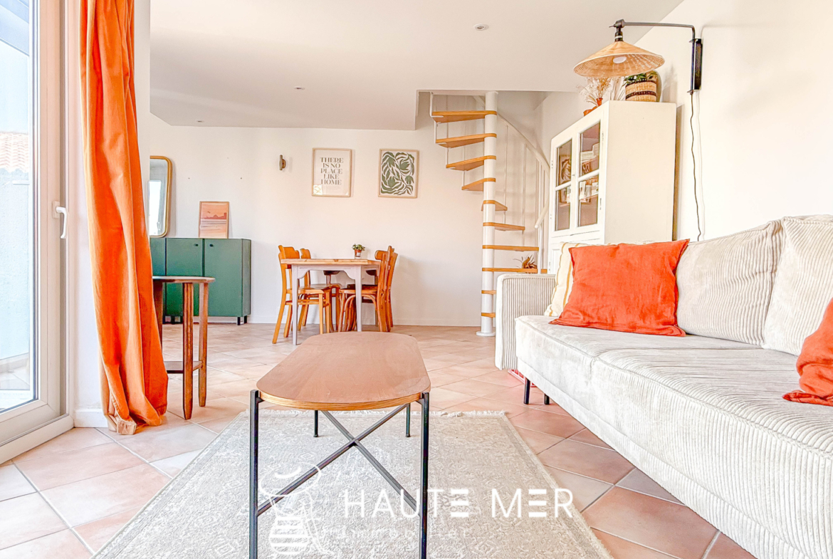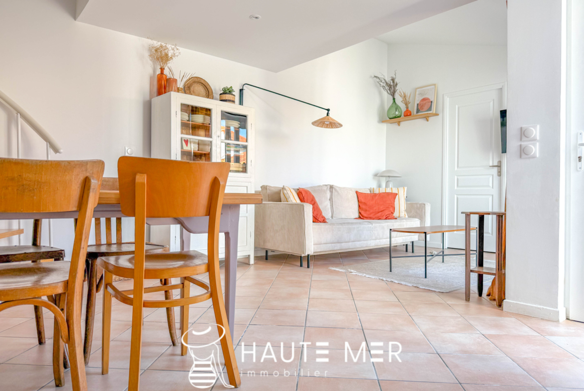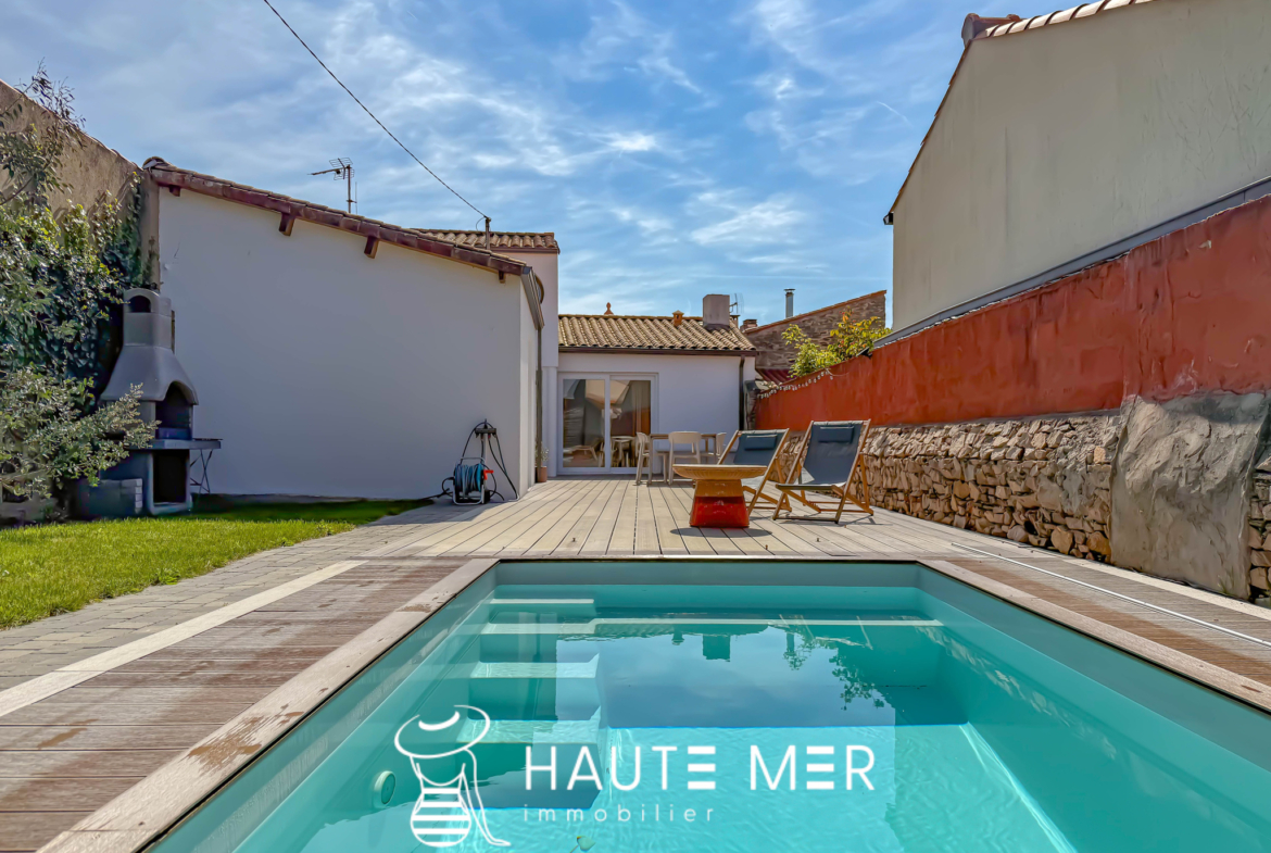 À proximité immédiate des commerces et à quelques pas de la plage, cette jolie maison séduit par son atmosphère actuelle, lumineuse et apaisante. Dès l’entrée, les volumes dévoilent une ambiance chaleureuse, portée par une décoration douce et soignée. Le séjour, baigné de lumière, s’ouvre naturellement sur une terrasse avec piscine chauffée, invitant à profiter pleinement des beaux jours dans un cadre intime. La maison propose deux chambres, offrant confort et simplicité, dans une configuration idéale pour une résidence principale comme pour un pied-à-terre en bord de mer. Fonctionnelle et agréable à vivre, elle dispose également d’un stationnement privatif, véritable atout au quotidien. À seulement 200 mètres des commerces et proche de la plage, cette maison offre un cadre de vie privilégié où tout se fait à pied. Un bien coup de cœur, alliant douceur de vivre, confort et emplacement recherché.