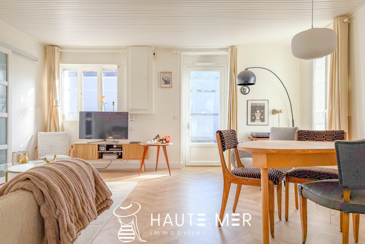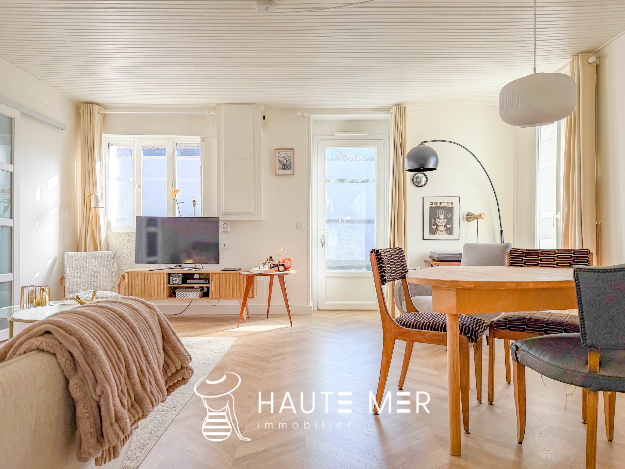À moins de 4 minutes à pied du port, laissez-vous séduire par cette maison de plain-pied à la décoration soignée, pensée pour offrir un quotidien facile, tout à pied. Elle s’ouvre sur une pièce de vie baignée de lumière, suivie d’une cuisine séparée, aménagée et entièrement équipée. Côté nuit, vous trouverez une chambre confortable, un bureau pouvant faire office de seconde chambre d’appoint, ainsi qu’une salle d’eau. Une spacieuse buanderie vient parfaire l’ensemble, apportant un véritable confort de rangement et de fonctionnalité. À l’extérieur, un petit espace cosy vous permettra de créer un agréable coin détente, idéal pour savourer les douces soirées d’été. Sans travaux, parfaitement entretenue et bénéficiant d’un agencement optimisé, cette maison séduit par sa luminosité naturelle et par sa proximité immédiate du port et des commodités.