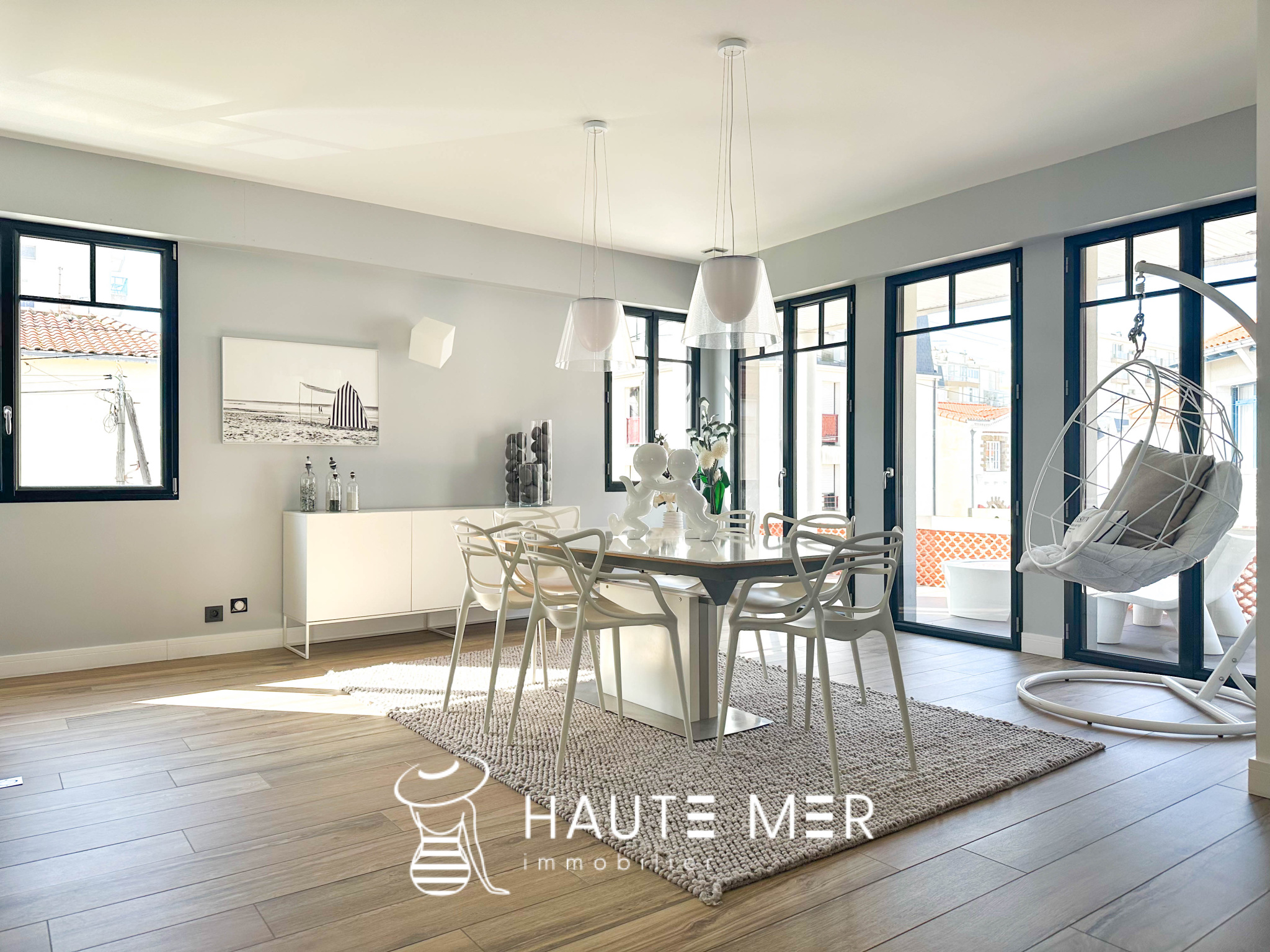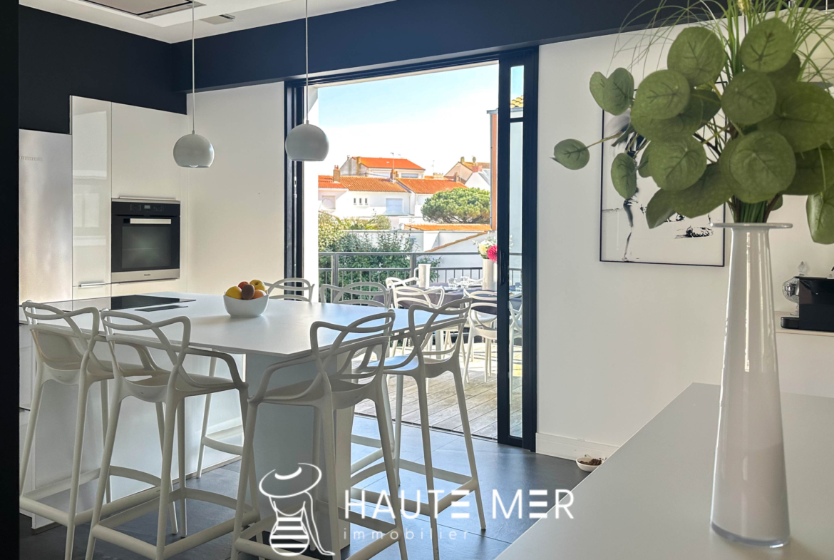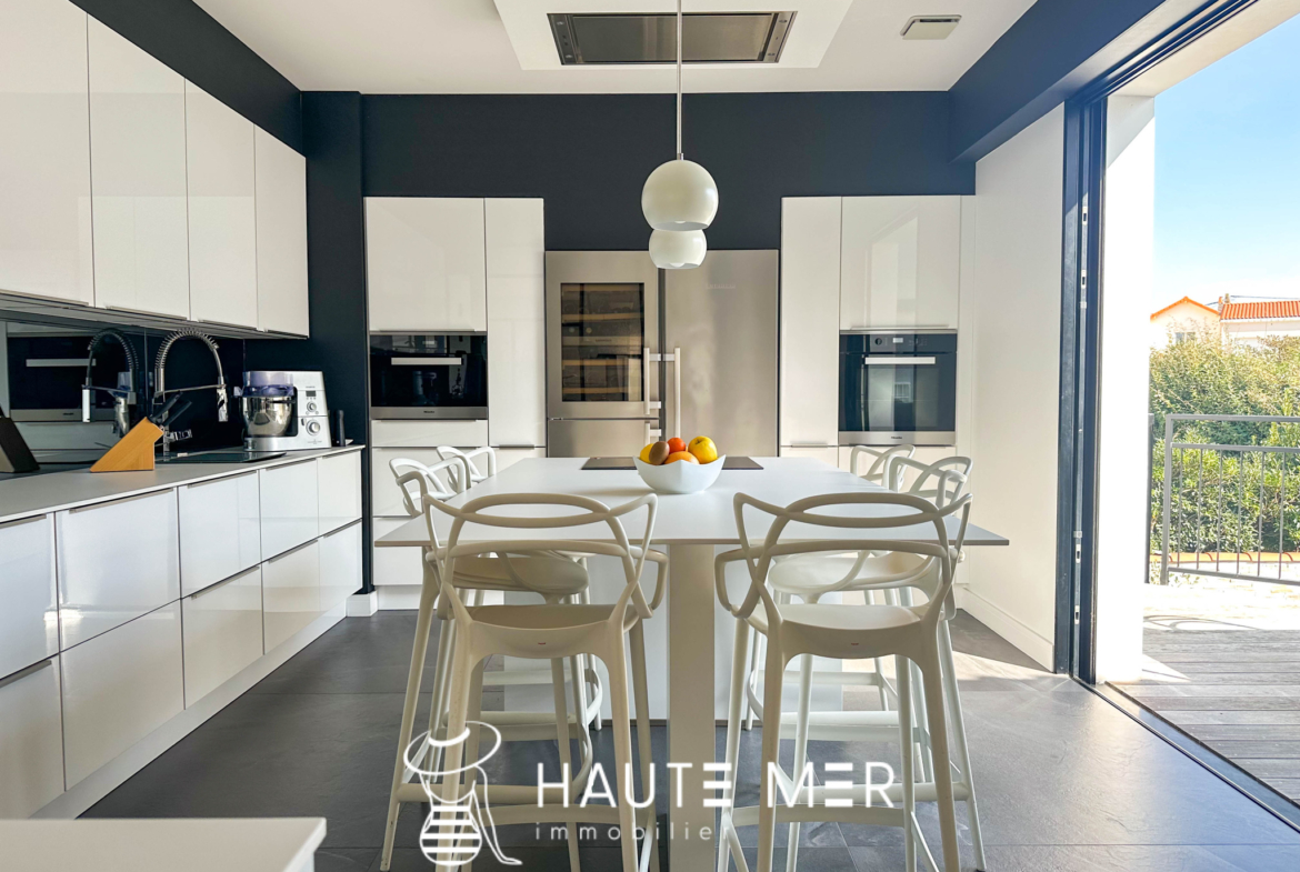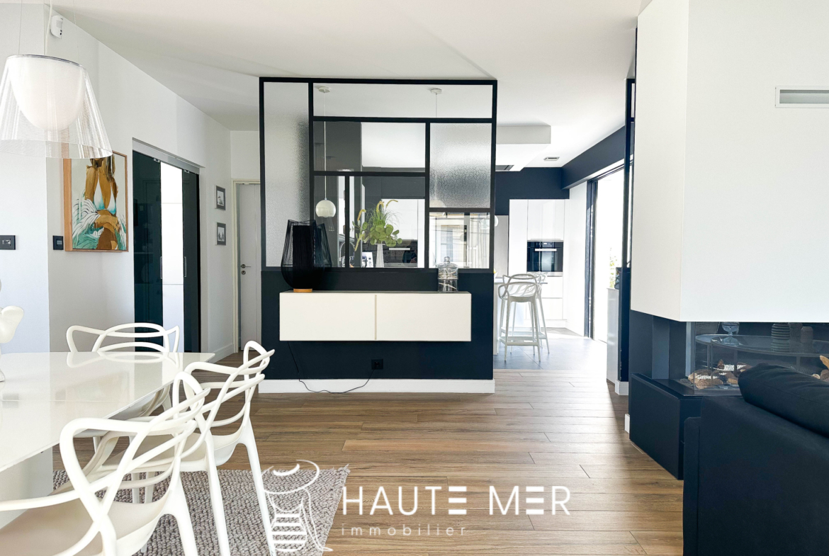 Située à quelques pas de la plage et des commerces, au coeur du quartier recherché des Présidents, cette villa d’exception se distingue par ses prestations et son architecture singulière. D’une superficie de près de 201 m2, elle offre un cadre de vie raffiné, entre élégance et modernité, où chaque détail a été pensé pour sublimer l’espace. L’espace de vie de 65 m2, véritable cœur de la maison, bénéficie d’une luminosité exceptionnelle grâce à ses nombreuses ouvertures, laissant pénétrer la lumière naturelle tout au long de la journée. Cet espace généreux dispose d’une cheminée et d’une cuisine aux prestations haut de gamme, créant une atmosphère chaleureuse et accueillante, idéale pour recevoir des convives ou simplement partager des moments précieux en famille. La villa dispose d’une confortable suite parentale composée d’une salle d’eau et de son dressing. Un bureau et trois autres chambres se partagent deux salles d’eau. Une salle de sport complète le confort de cet espace. Dotées d’une piscine exposée au sud, les terrasses sont idéales pour des moments de détente. Agrémentée de multiples rangements, elle dispose d’une buanderie et d’un garage directement accessible. Située à deux pas de la plage et des commerces, cette villa a réussi l’équilibre parfait entre confortables volumes et prestations haut de gamme.