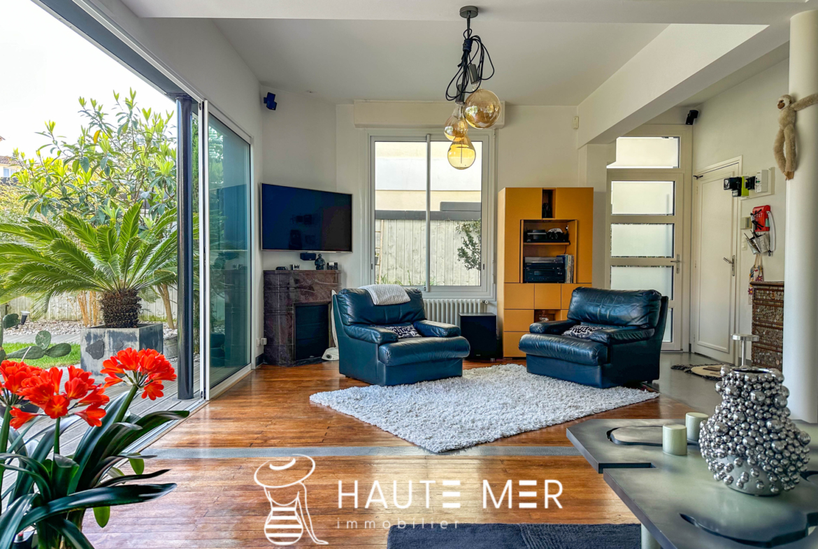 Située au cœur du quartier convoité des Présidents, à 300 mètres de la plage et des commerces, cette ensemble immobilier composé de 2 maisons séduit dès les premiers instants par son équilibre entre authenticité et modernité. L’intérieur, aux lignes contemporaines, dévoile des pièces aux volumes remarquables, laissant circuler la lumière avec générosité. Pensée pour recevoir et pour vivre aux rythmes des saisons, la maison principale dispose d’un chaleureux salon s’orientant sur son jardin et d’un séjour cosy, s’ouvrant sur la cuisine équipée. À l’étage, l’espace nuit est rythmé par 3 chambres se partageant une salle de bains. De nombreux rangements, tels qu’un cellier, un dressing et un espace buanderie apportent du confort à la maison principale. À l’arrière, le jardin soigneusement entretenu se déploie dans une véritable bulle de verdure, à l’abri des regards, offrant un cadre paisible et soigné. Au fond de cette oasis, une dépendance au charme singulier se dévoile : une seconde maison, atypique et indépendante, sera le lieu idéal pour recevoir famille et amis. Dotée de trois autres chambres, elle dispose également d’un salon avec cheminée et d’une cuisine. Un garage complète cet ensemble immobilier idéalement situé, à 300 mètres de la plage et des commerces. L’agence Haute Mer Immobilier recommande cette propriété pour son atmosphère paisible et sa localisation privilégiée.