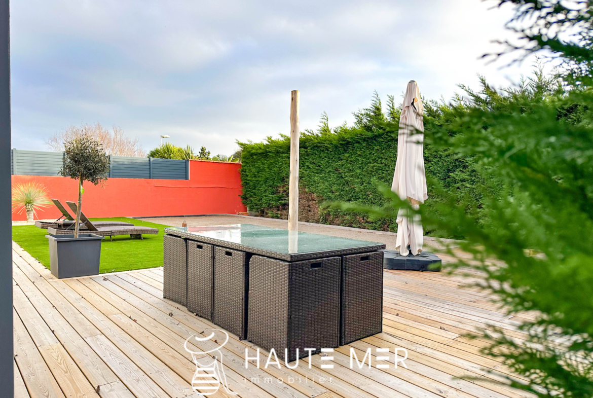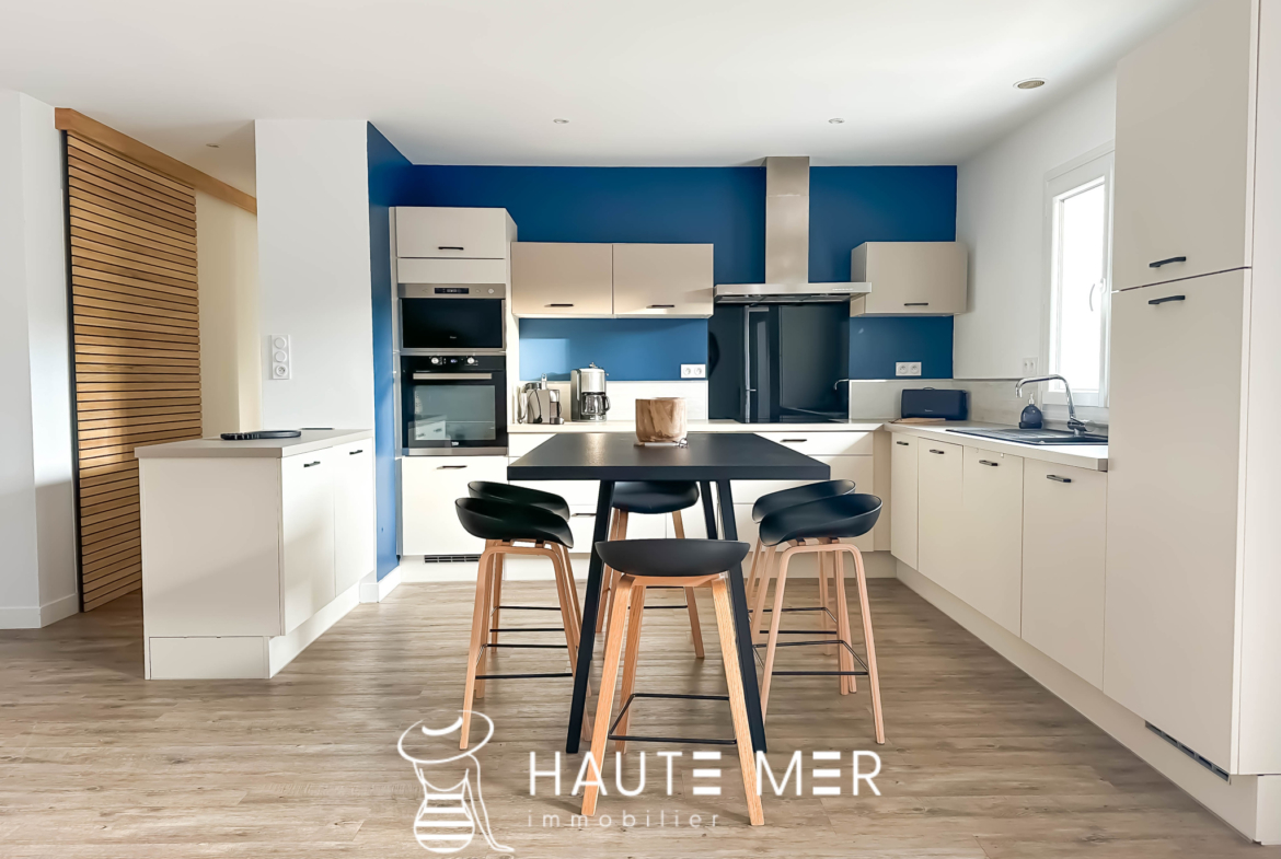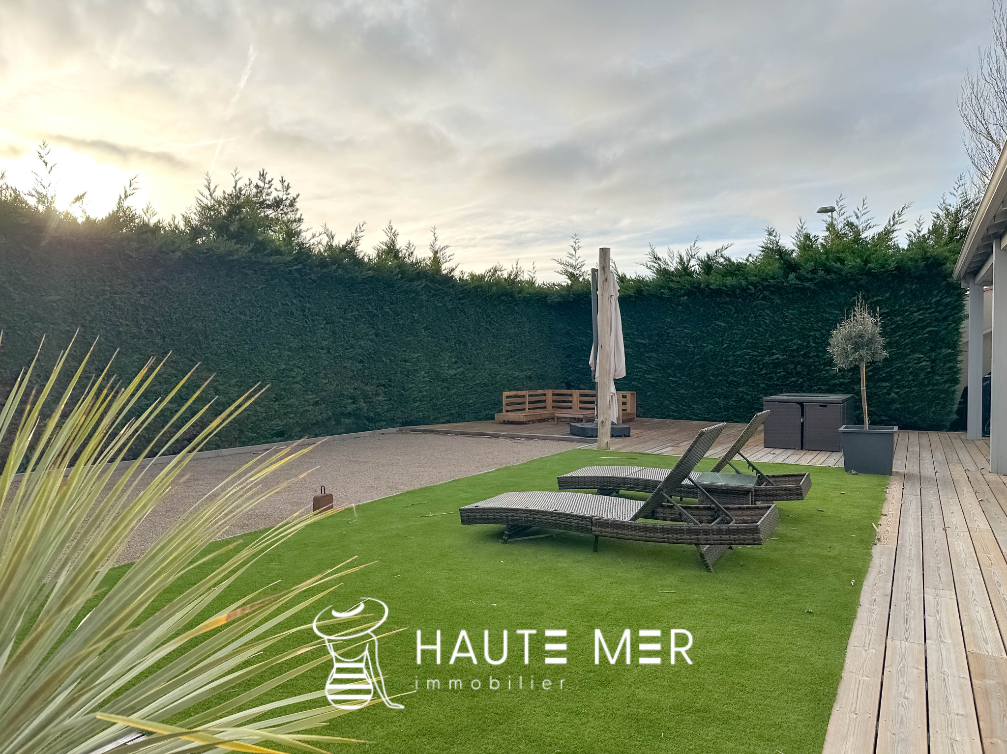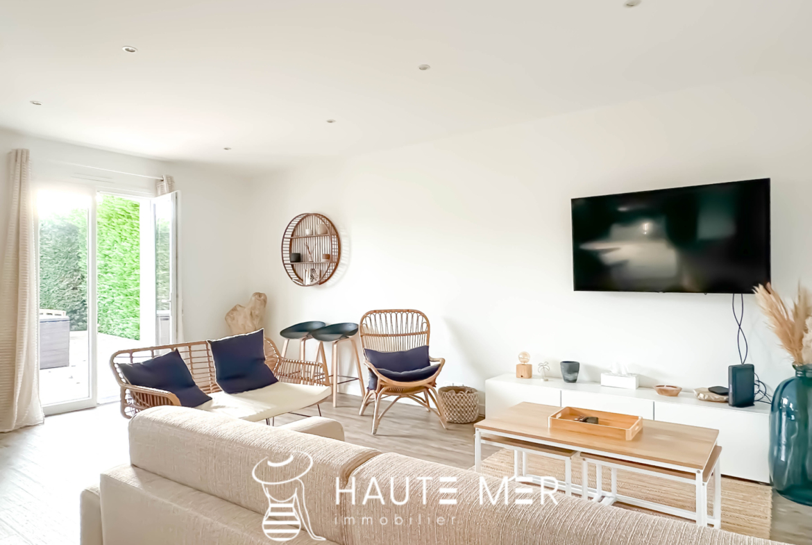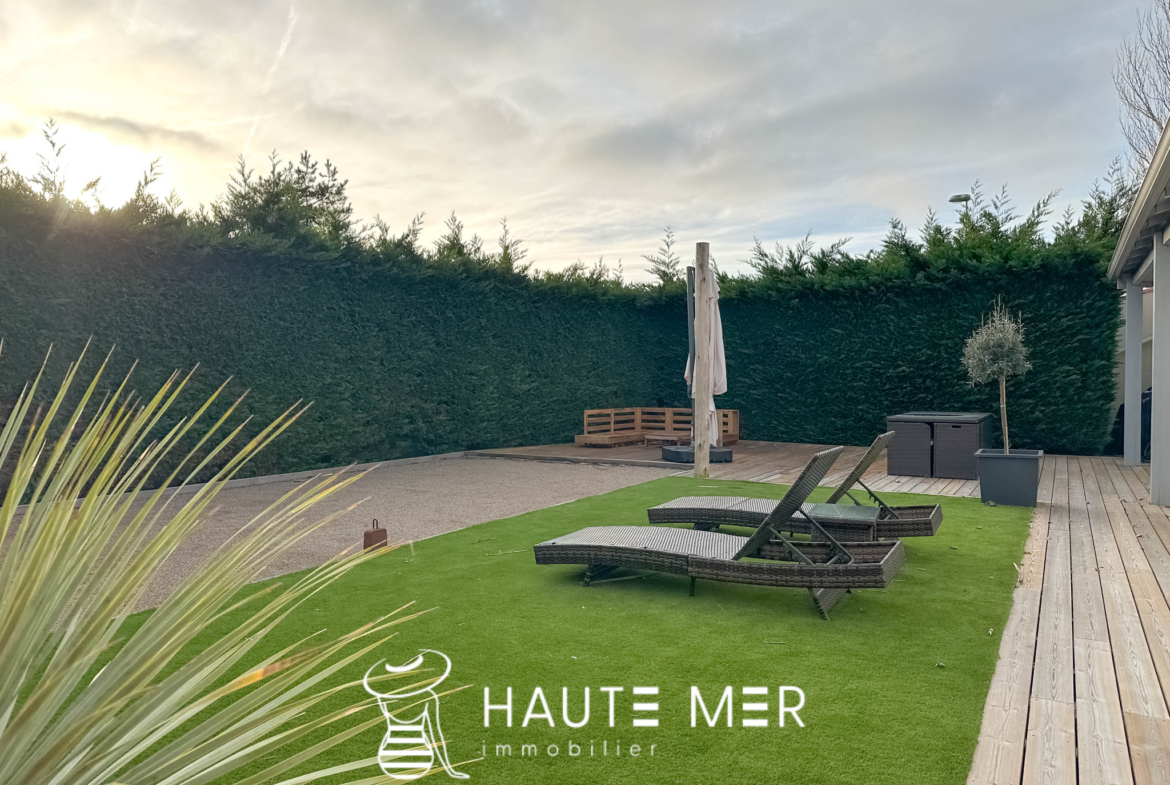 Située à 1,5km de plage de Tanchet, au pied des commerces, cette maison récemment rénovée est idéale pour recevoir. L’entrée s’ouvre sur l’espace de vie qui se compose d’un salon baigné de lumière et d’une magnifique cuisine dînatoire où s’entremêlent les matériaux de qualité. Une large porte-fenêtre permet l’accès à l’extérieur agrémenté d’une vaste terrasse prolongée par un terrain de pétanque qui représente autant d’invitations à la détente et à la convivialité. Cette première maison d’une surface de 90 m2, abrite 3 chambres et deux salles d’eau. Astucieuse, la maison dispose d’un appartement indépendant T2 de 30 m2 afin d’y accueillir famille et amis. Un garage, une buanderie et deux emplacements complètent la description de cette maison résolument fonctionnelle.