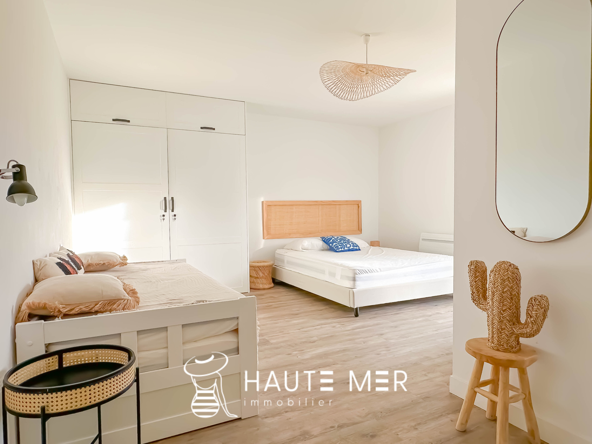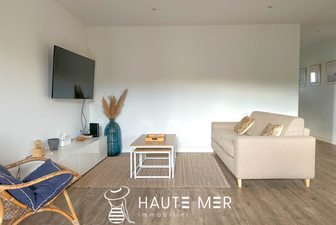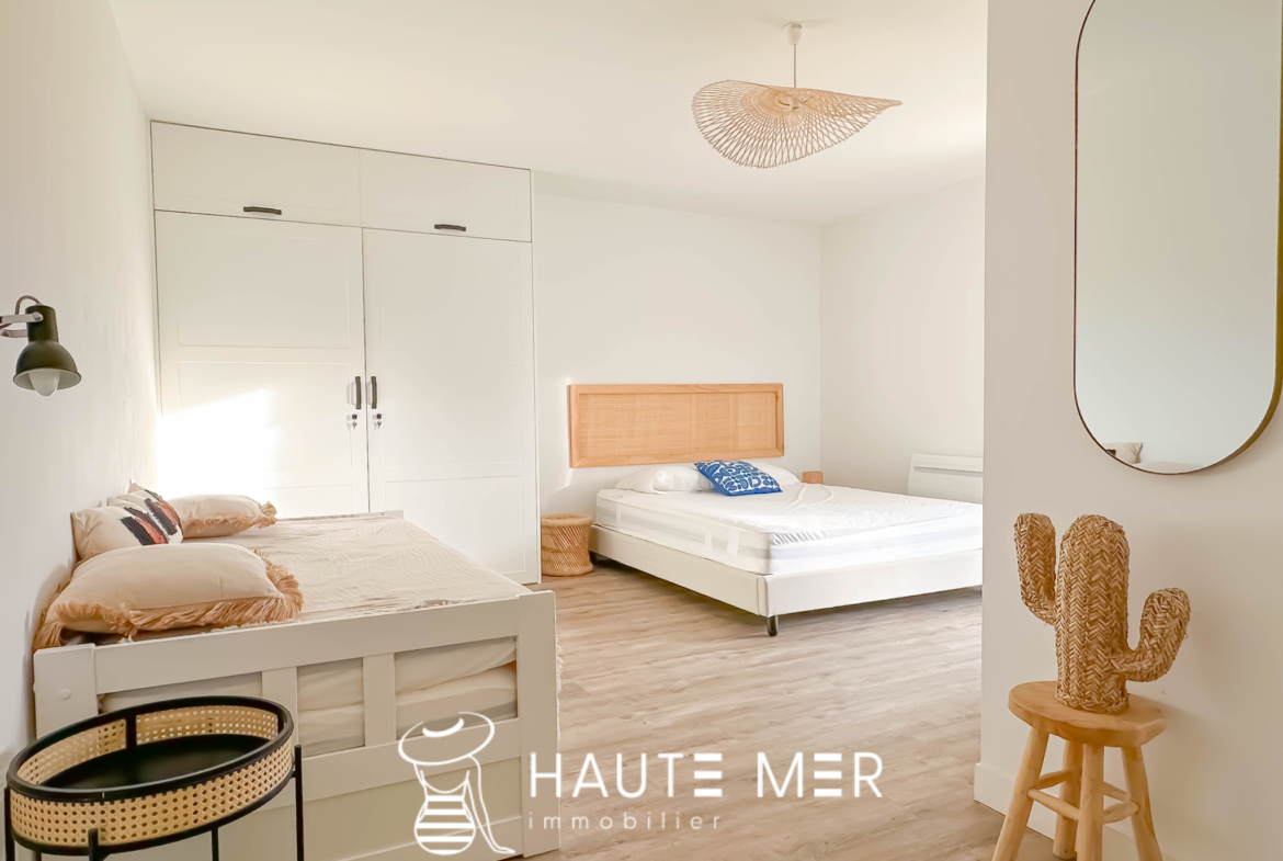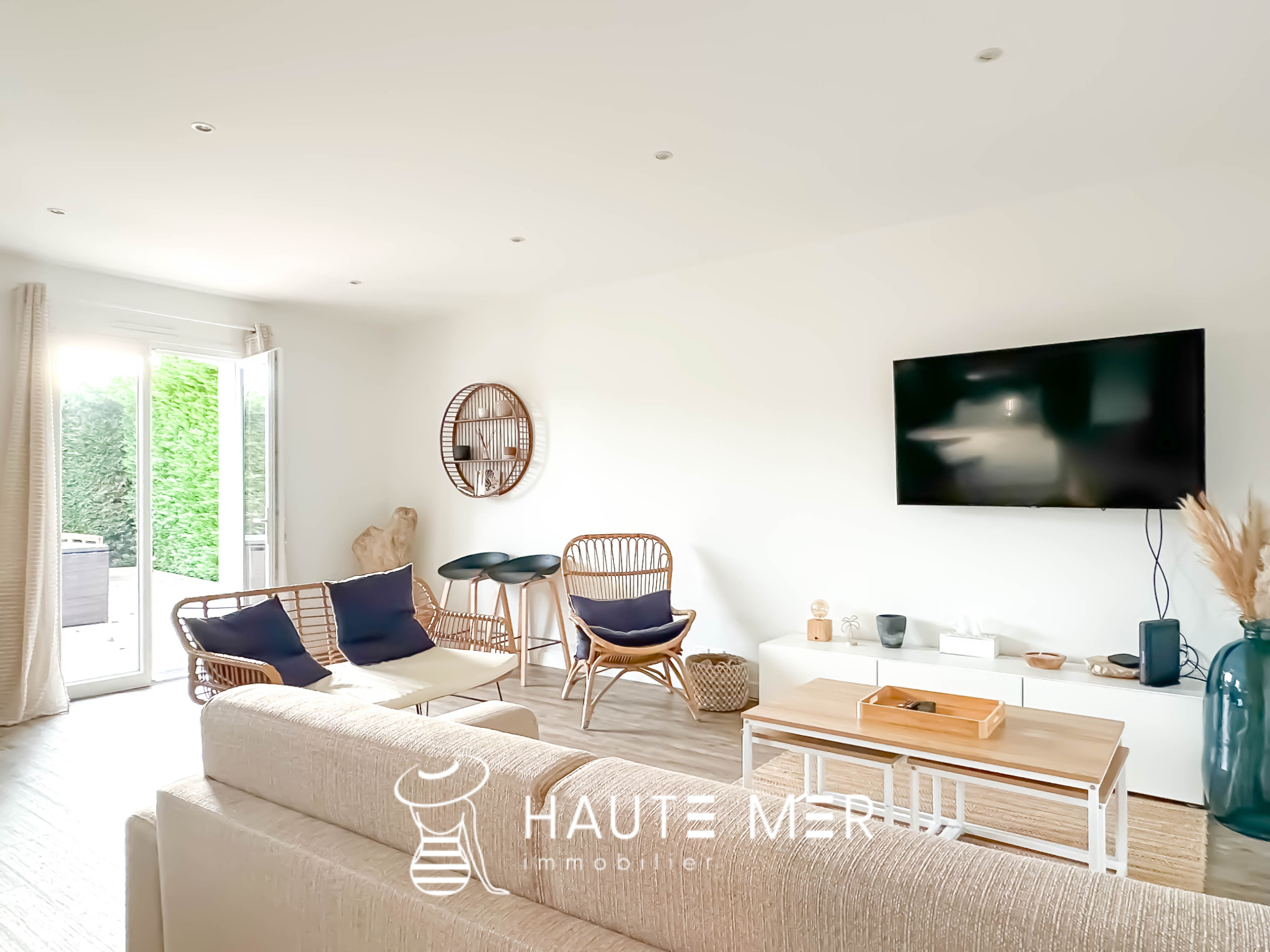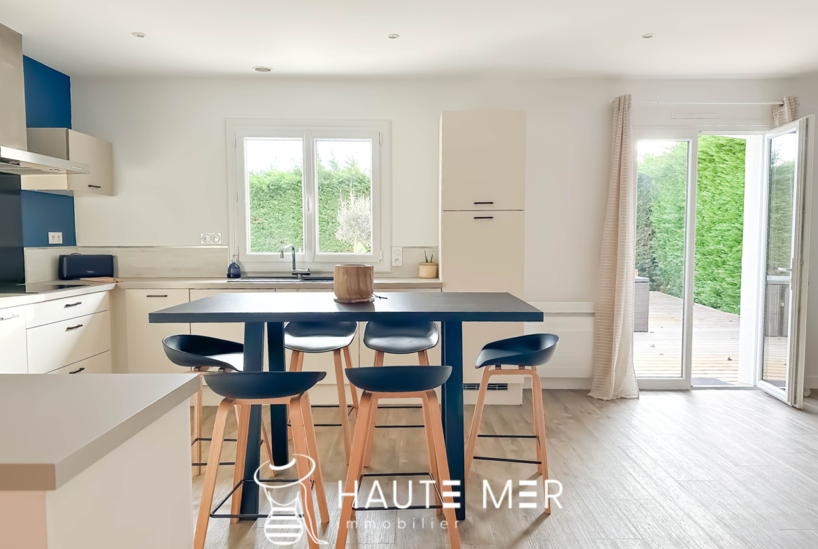 Située à 1,5km de plage de Tanchet, au pied des commerces, cette maison récemment rénovée est idéale pour recevoir. L’entrée s’ouvre sur l’espace de vie qui se compose d’un salon baigné de lumière et d’une magnifique cuisine dînatoire où s’entremêlent les matériaux de qualité. Une large porte-fenêtre permet l’accès à l’extérieur agrémenté d’une vaste terrasse prolongée par un terrain de pétanque qui représente autant d’invitations à la détente et à la convivialité. Cette première maison d’une surface de 90 m2, abrite 3 chambres et deux salles d’eau. Astucieuse, la maison dispose d’un appartement indépendant T2 de 30 m2 afin d’y accueillir famille et amis. Un garage, une buanderie et deux emplacements complètent la description de cette maison résolument fonctionnelle.