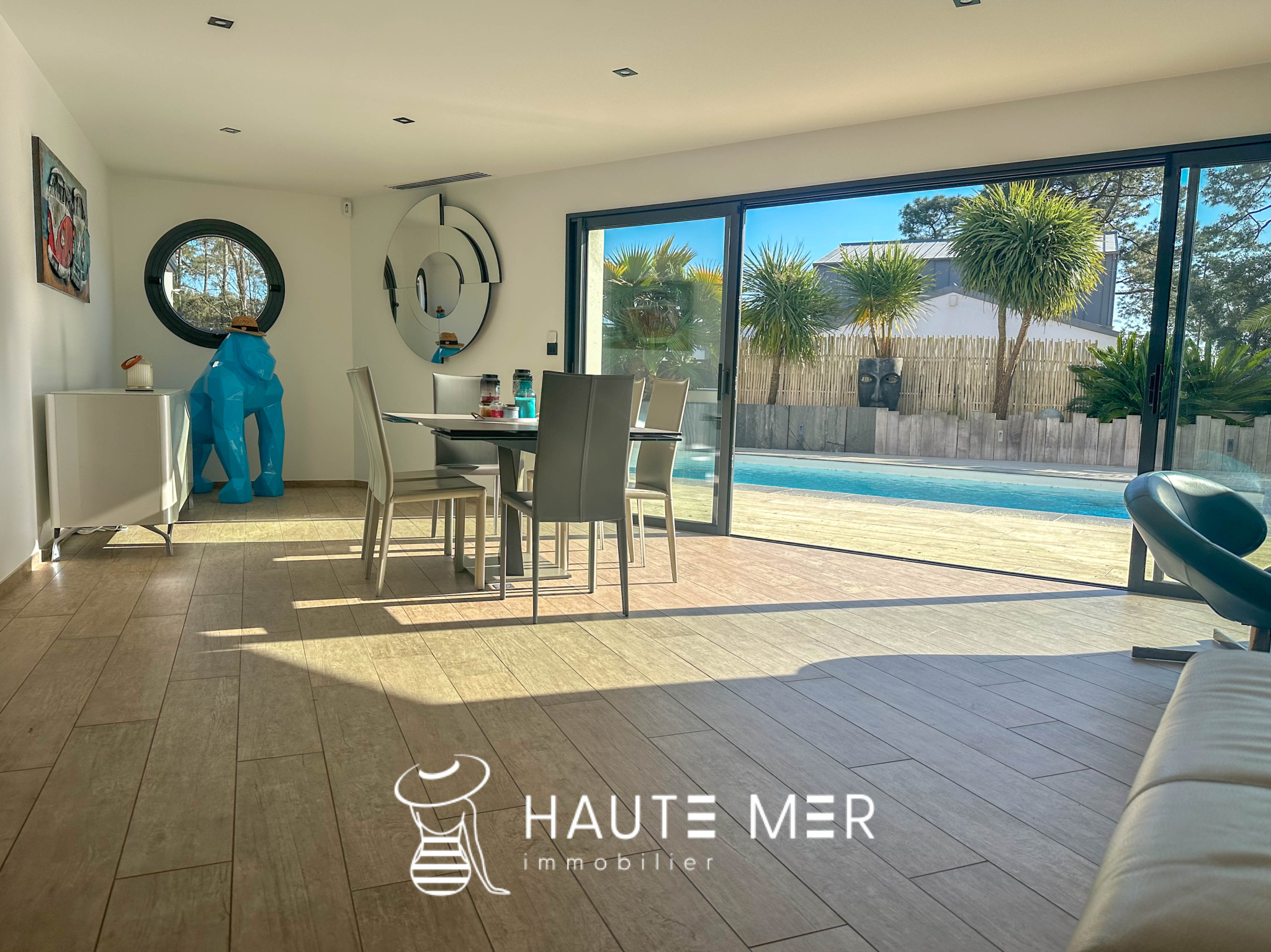 Au pays de Jard-sur-Mer, à quelques encablures des plages et du port, cette villa se distingue par son architecture contemporaine et ses prestations soignées. Dès l’entrée, la lumière naturelle souligne les espaces généreux de l’espace de vie. Conçue pour profiter pleinement des extérieurs, de larges baies s’ouvrent sur la terrasse dotée d’une cuisine d’été et d’une piscine chauffée. Le rez-de-chaussée offre une confortable suite parentale avec dressing et salle d’eau, ainsi qu’un vaste bureau de 27 m2. L’étage est rythmé par 4 chambres supplémentaires, se partageant une salle d’eau. Afin de profiter pleinement des lieux et de son environnement, l’étage se prolonge sur une terrasse avec son spa, dominant ainsi les pins et la mer. Un spacieux garage, un cellier et de nombreux rangements complètent la description de cette agréable villa contemporaine située à 400 mètres du port et des plages.