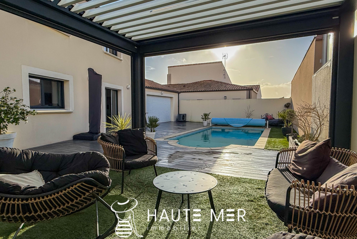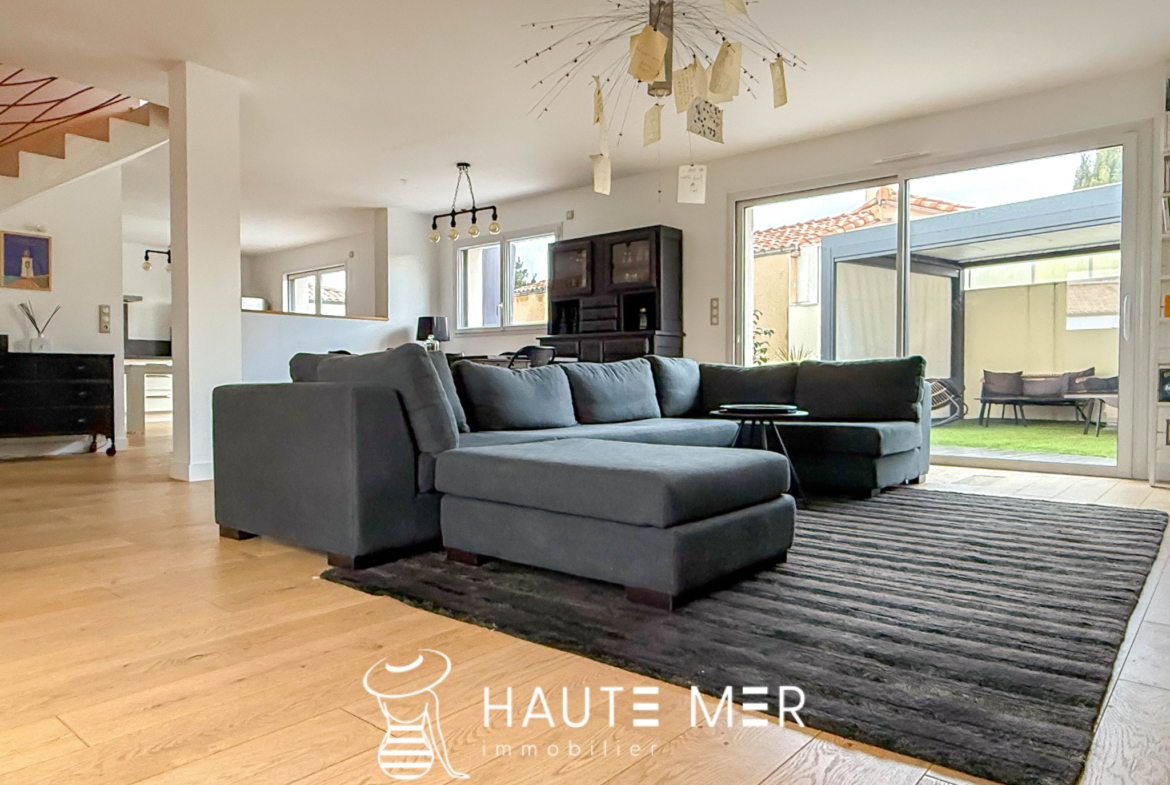 À seulement 15 minutes à pied du marché Arago, cette lumineuse maison récente et récemment rénovée séduit par ses volumes généreux et son atmosphère chaleureuse : au rez-de-chaussée, la vaste pièce de vie, véritable cœur de la maison accueille un salon-séjour convivial ainsi qu’une cuisine aménagée prolongée par un cellier. Toujours au rez-de-chaussée une chambre disposant de sa salle d’eau privative s’ouvre sur le jardin. À l’étage, une grande pièce offre un espace idéal pour une salle de jeux, un bureau ou une bibliothèque, complétée par quatre chambres et une salle d’eau, le tout prolongé par un extérieur soigneusement aménagé avec piscine, pergola bioclimatique et garage double créant un cadre de vie privilégié, élégant et propice à la détente.