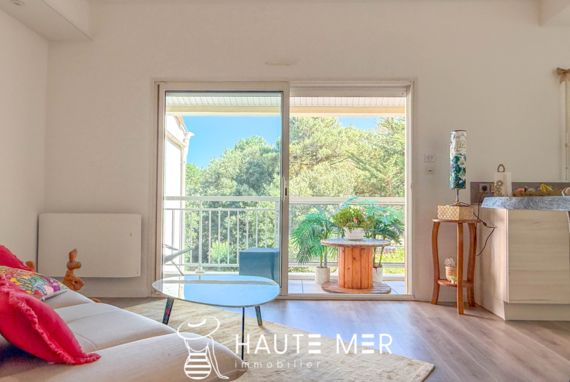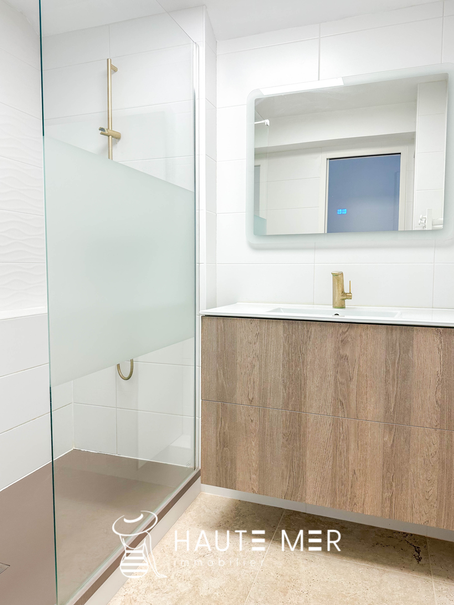 L’agence Haute Mer Immobilier recommande cet appartement pour son emplacement, sa vue dégagée sur la Pinède et son confort.