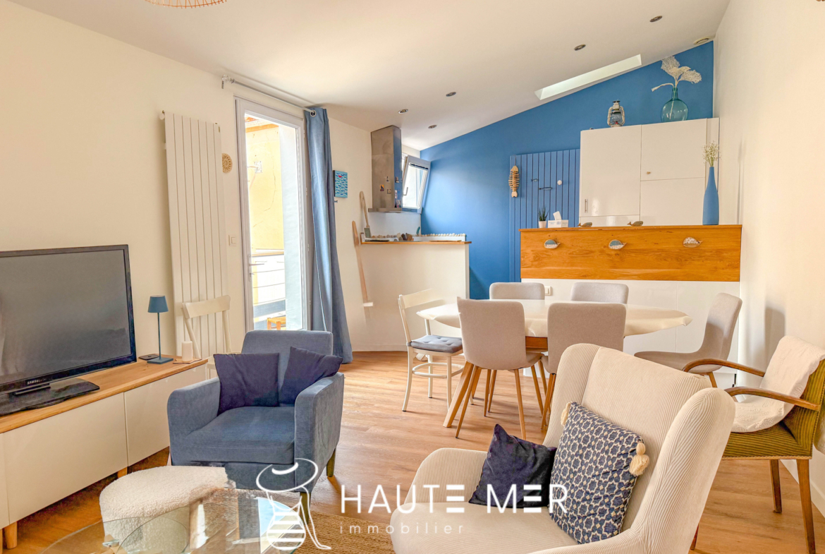 C’est à quelques pas du port, de la plage et des rues piétonnes que cet appartement T3 récemment rénové prend place. Baigné de lumière, le salon se prolonge sur sa cuisine et sur un balcon à l’abri des regards. Deux belles chambres se partagent une salle d’eau. Véritable coup de cœur, cet appartement promet d’agréables moments à ses futurs occupants.
