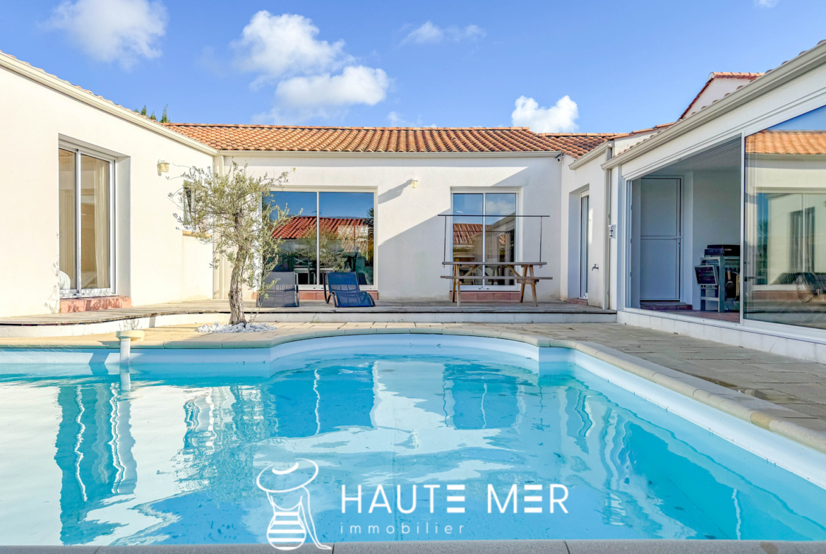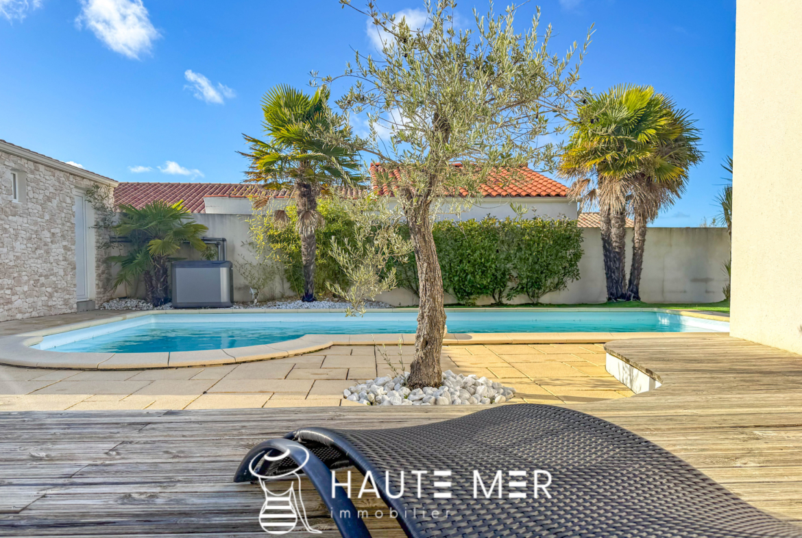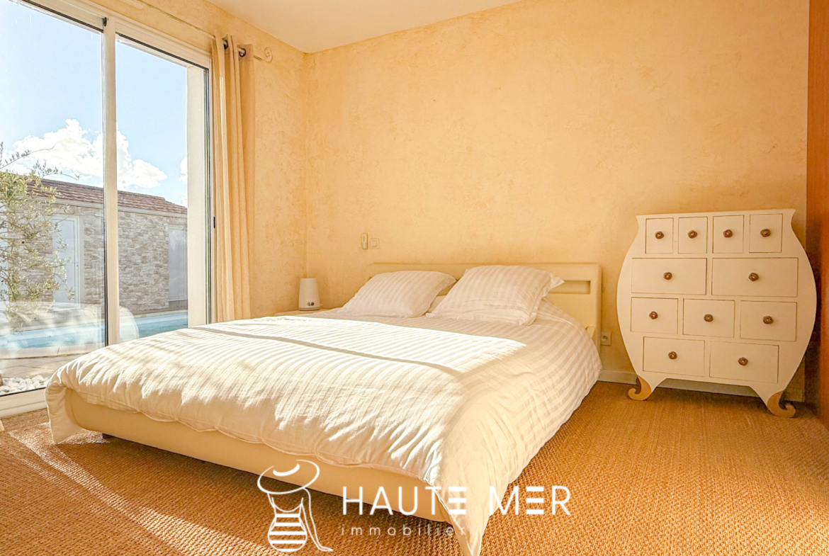 À moins de dix minutes à vélo de la plage et au cœur des commodités, cette élégante maison de plain-pied allie confort, luminosité et intimité. La pièce de vie, baignée de lumière, s’ouvre sur une terrasse accueillante et sa piscine préservée des regards. Trois chambres, un bureau, une salle de bains et une buanderie composent un intérieur harmonieux, pensé pour le bien-être au quotidien. Le pool house prolonge naturellement l’espace vers l’extérieur, invitant à savourer les beaux jours dans une atmosphère paisible et confidentielle. Une adresse rare, où chaque détail incarne la simplicité élégante et l’art de vivre au bord de mer.
