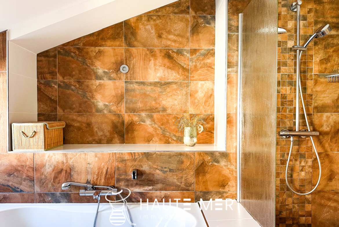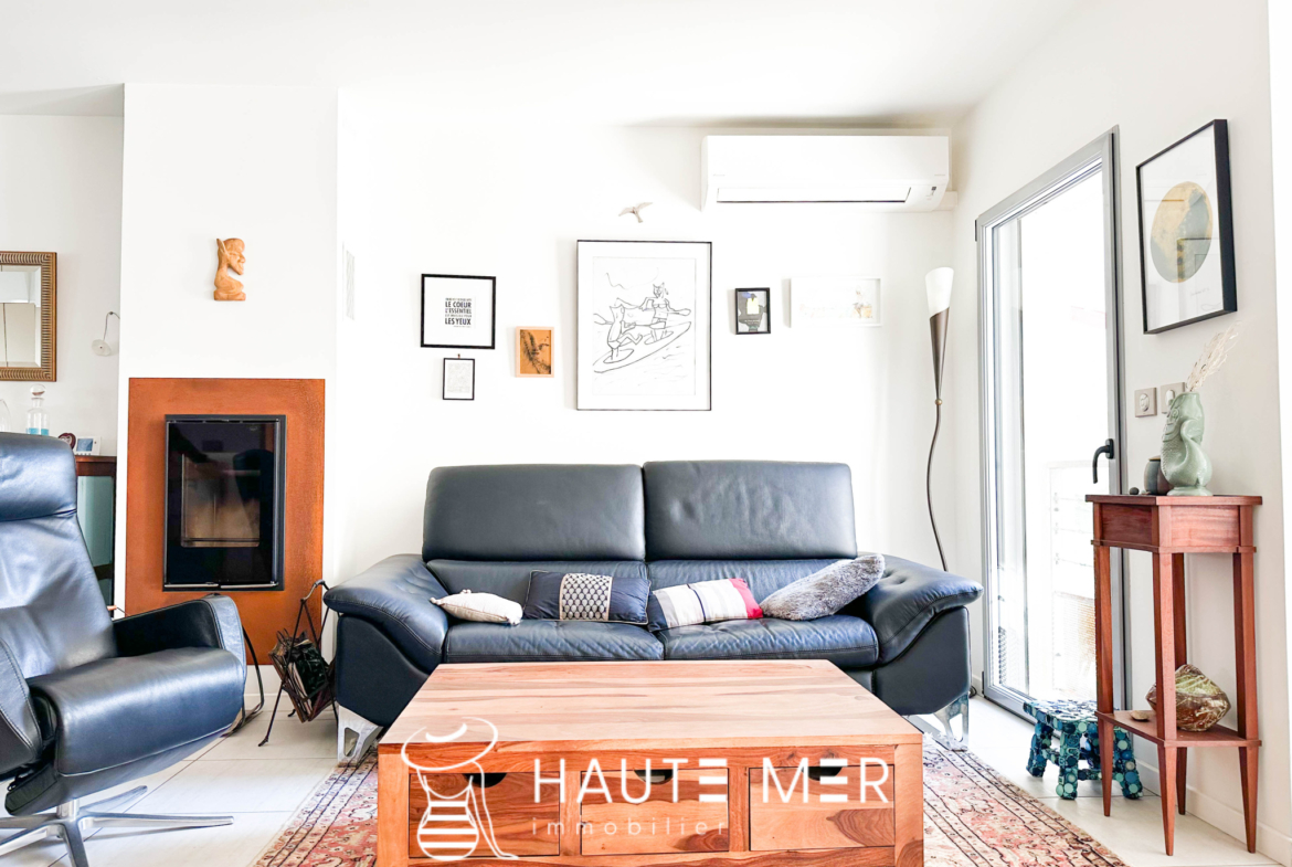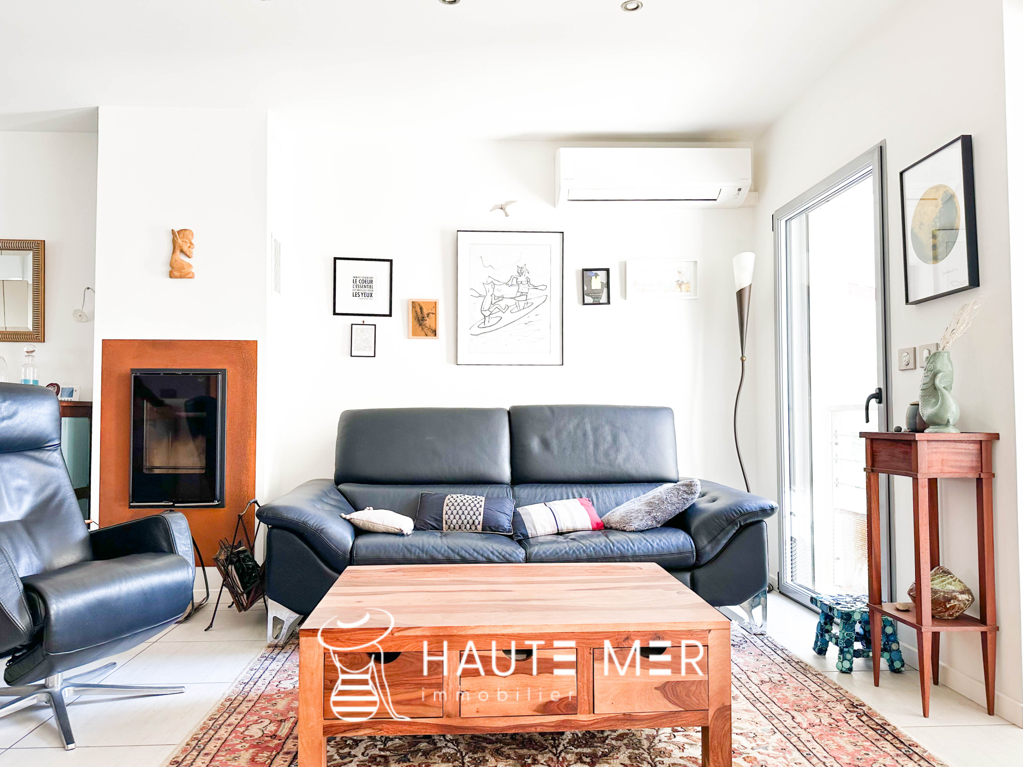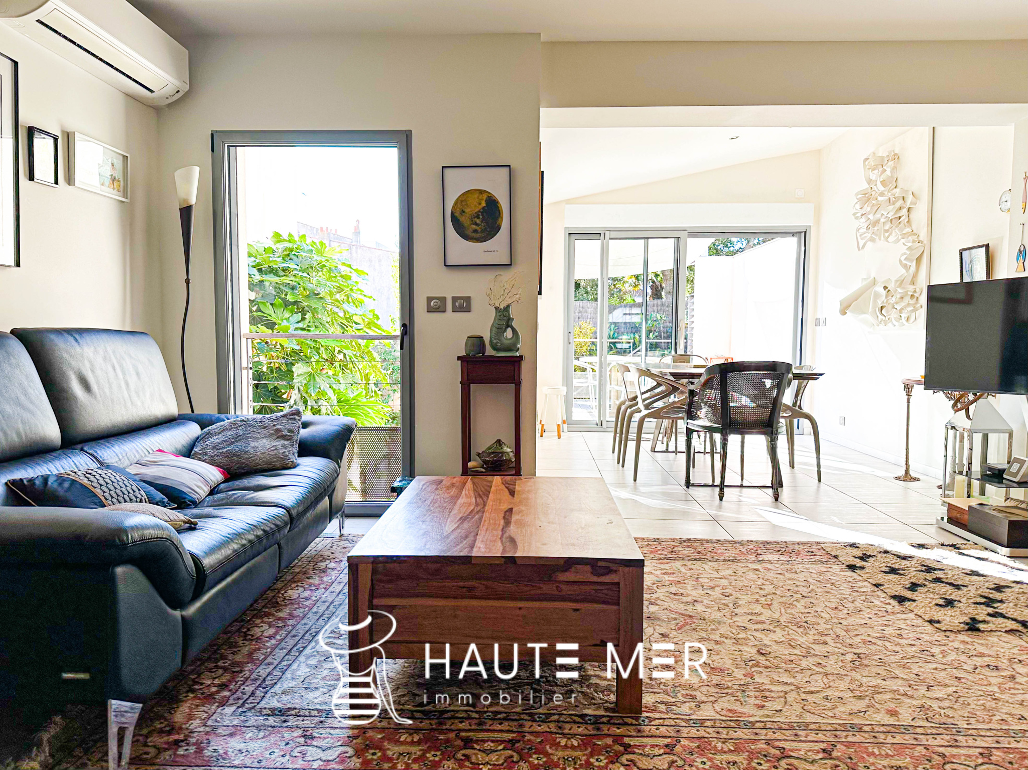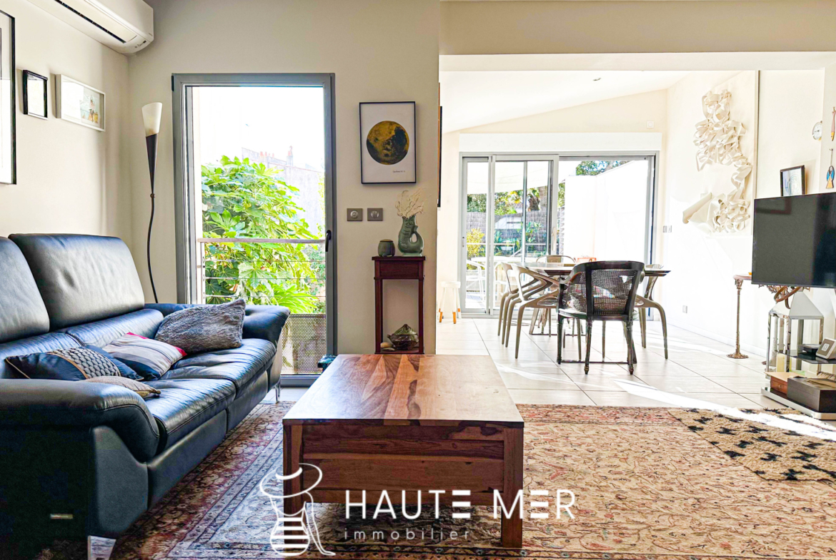 L’agence HAUTE MER IMMOBILIER recommande cette villa de bord de mer pour sa généreuse luminosité et son emplacement idéal, à quelques pas du marché Arago et de la grande plage.