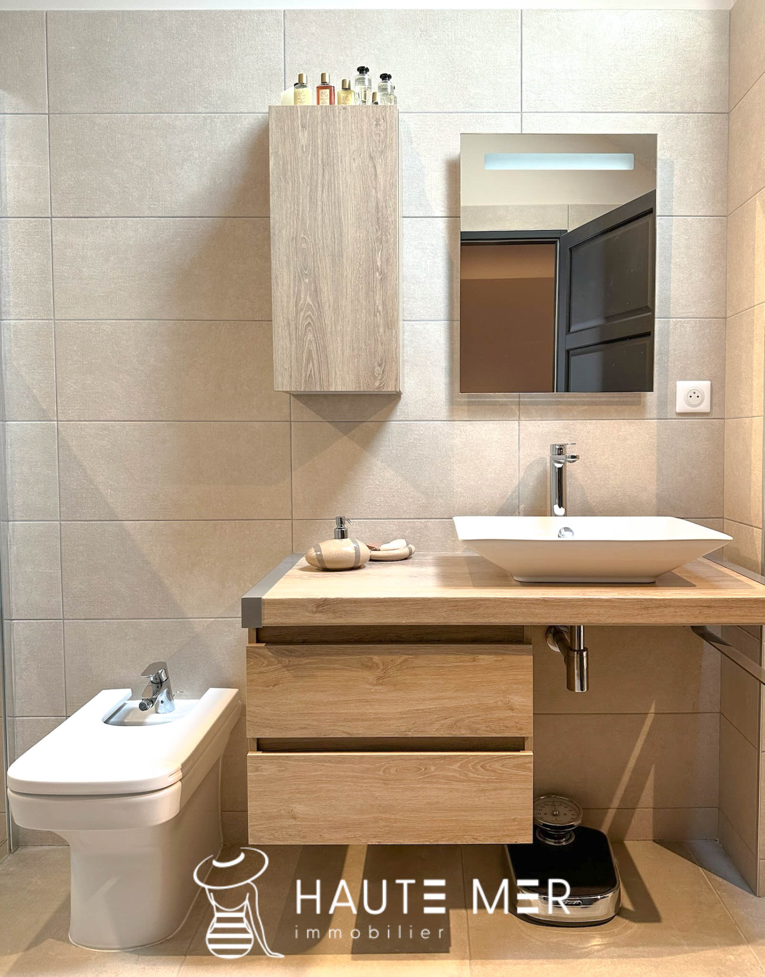 Discrètement localisé dans le quartier des Présidents au sein d’un bâti neuf, ce lieu atypique, doté d’une terrasse avec aperçu mer, se distingue par sa rareté. Édifiée telle une ‘villa Sablaise’, l’espace de vie se compose d’un salon indépendant et d’un séjour ainsi qu’une cuisine aux finitions haut de gamme. Dans son prolongement, une terrasse agrémente les journées ensoleillées. Trois belles chambres se partagent de confortables salles d’eau. Pour le confort de ses futurs occupants, la villa dispose d’un ascenseur privatif ainsi qu’une buanderie et une cave de 7 m2. Doté de finitions haut de gamme, ce lieu de vie offre un cadre de vie agréable et fonctionnel et répond aux attentes des plus exigeants. Possibilité l’acquérir une place de parking au sous-sol de la résidence en complément.