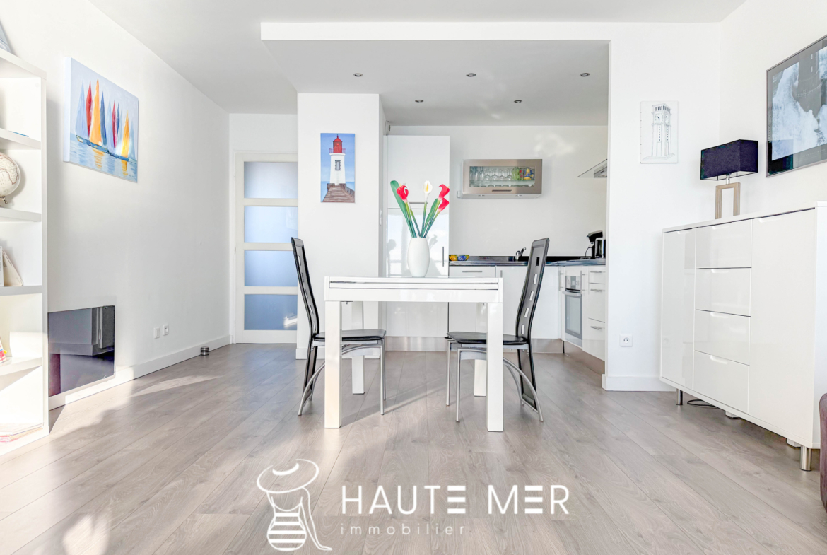 Situé dans le quartier dynamique des Présidents, à quelques pas des plages et des commerces, ce spacieux T2bis rénové de 53 m2 situé face à la mer vous séduira par ses pièces aux volumes généreux et sa luminosité. Profitez de la vue hypnotisante sur la baie des Sables d’Olonne depuis la pièce principale de 30 m2 composée d’un salon et d’une cuisine équipée. A l’arrière, au calme, se trouve une grande chambre, un bureau et une salle d’eau fonctionelle. Une cave vient compléter cet appartement idéal pour une résidence principale comme secondaire !