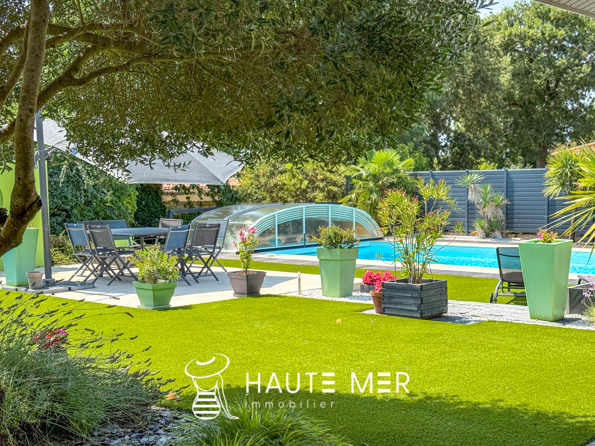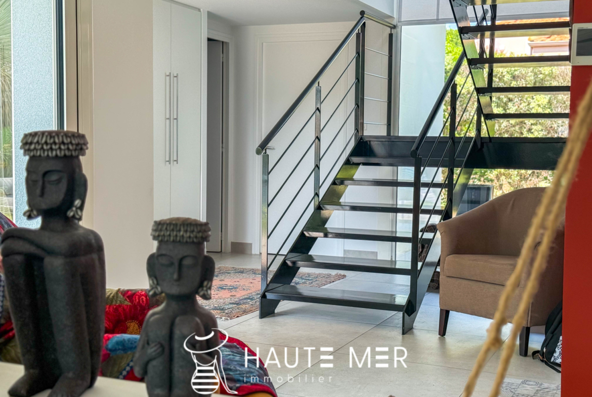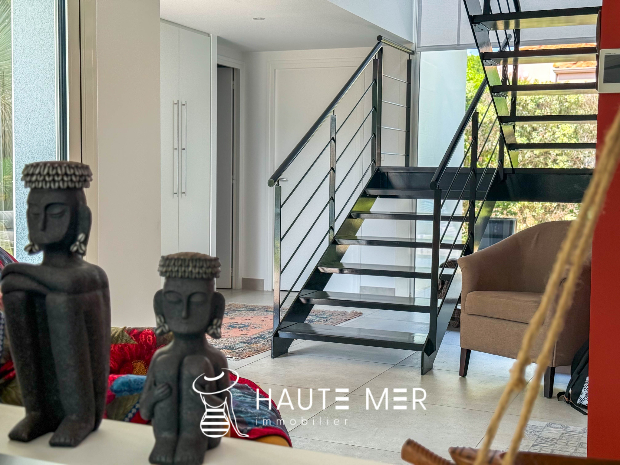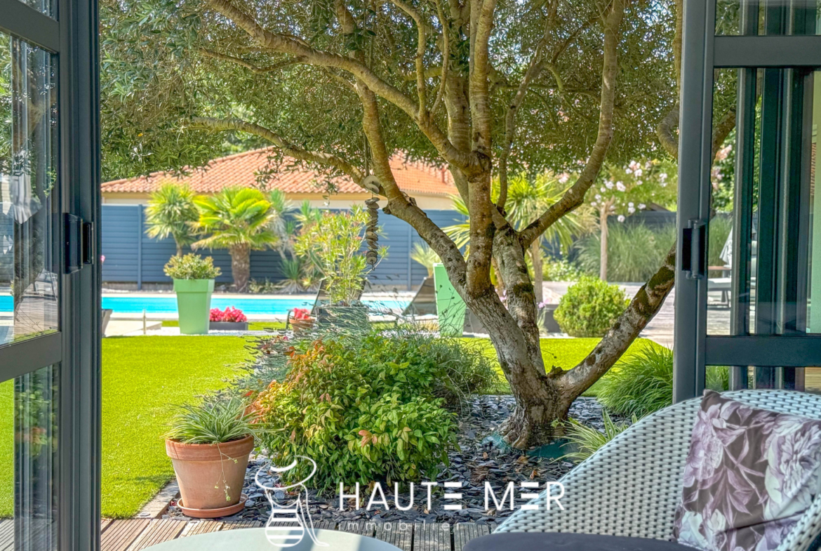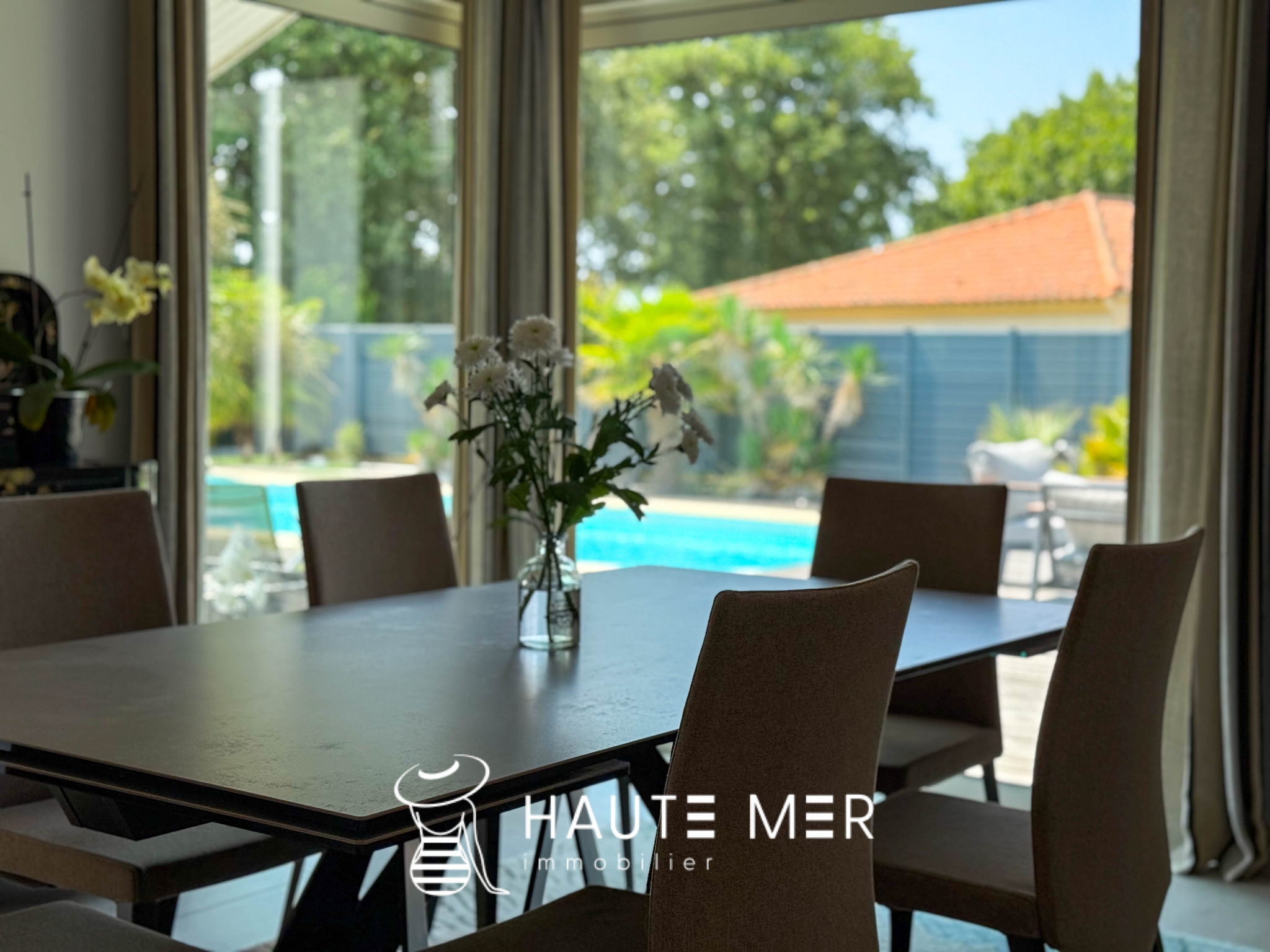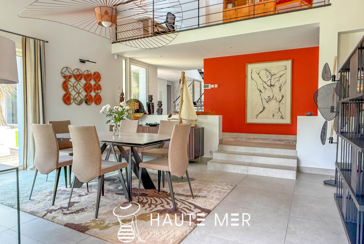 Dans un quartier résidentiel paisible et soigné, à deux pas des commerces et à quelques minutes des plages, cette villa d’architecte de 204 m2 vous surprendra dès les premiers instants. Derrière sa façade discrète, l’intérieur révèle une ambiance lumineuse et généreuse, portée par de beaux volumes, une hauteur sous plafond impressionnante et une architecture unique. Dès l’entrée, le charme opère : un vaste hall qui s’ouvre sur un salon baigné de lumière, animé par une cheminée contemporaine. La spacieuse cuisine, haut de gamme et ouverte, séduira les amateurs de partage. Un salon d’hiver fait le lien avec l’extérieur, offrant une vue apaisante sur la piscine.Côté nuit, la maison propose une chambre avec salle d’eau et dressing au rez-de-chaussée, une seconde chambre s’orientant sur le jardin et une salle de bains complètent cet espace. À l’étage, une mezzanine esprit loft accueille un bureau, menant à une deuxième chambre avec salle d’eau privative, idéale pour recevoir. Un spacieux garage, une buanderie et un bureau complètent le confort de la villa.À l’extérieur, l’ambiance est douce et préservée : un jardin plein sud sans vis-à-vis, deux terrasses, une piscine chauffée parfaitement intégrée… ici, tout est réuni pour savourer les saisons, en toute quiétude.