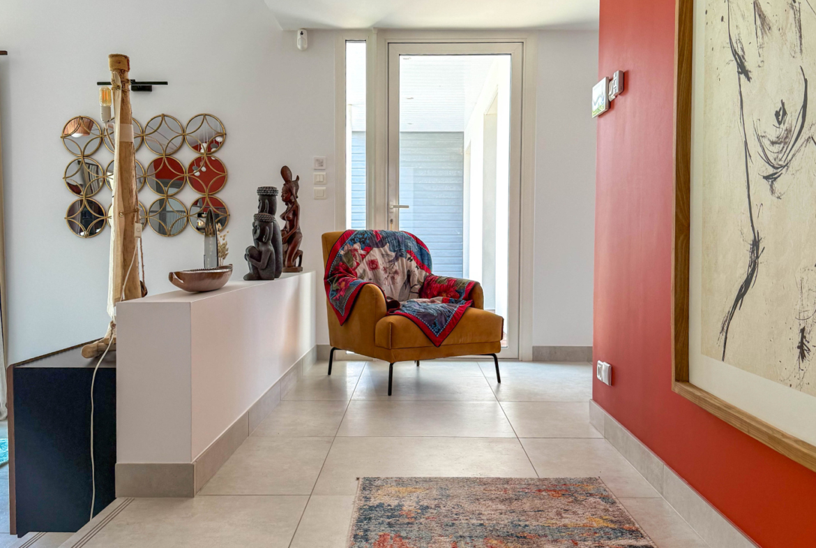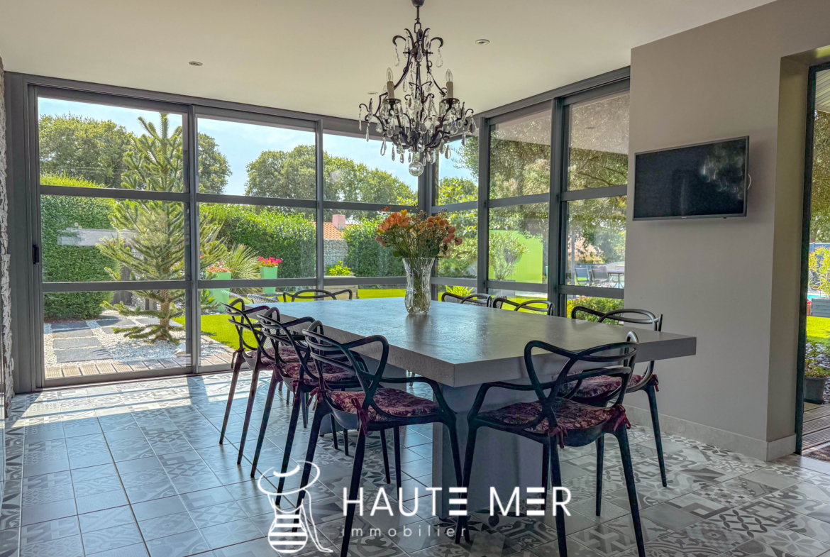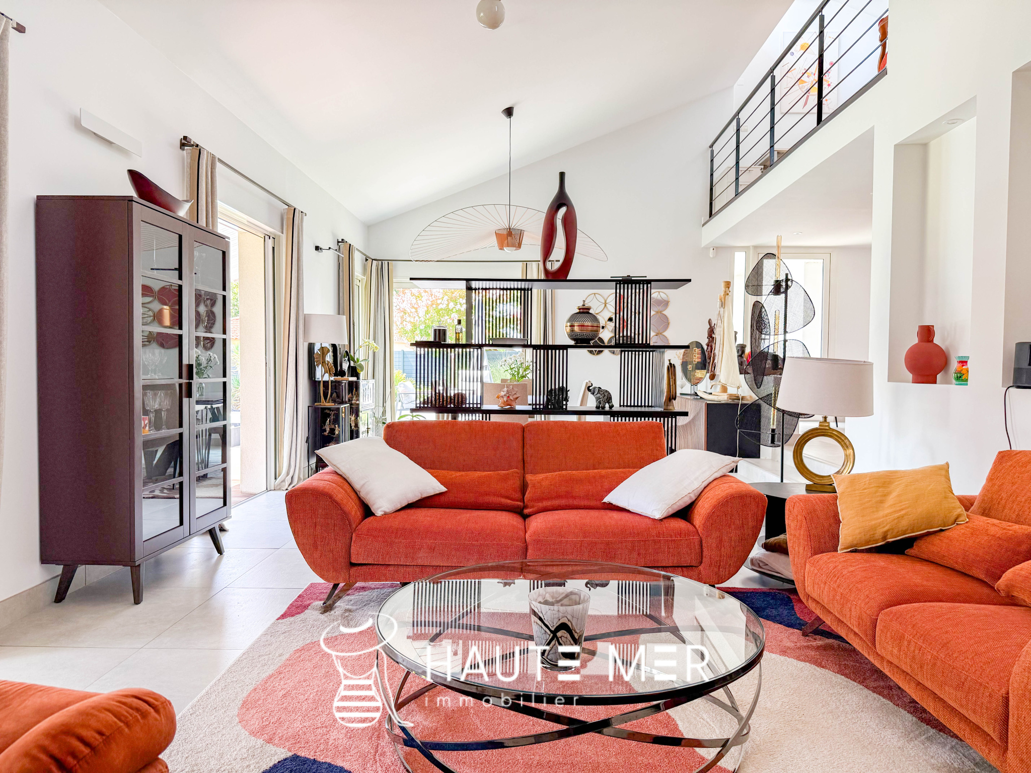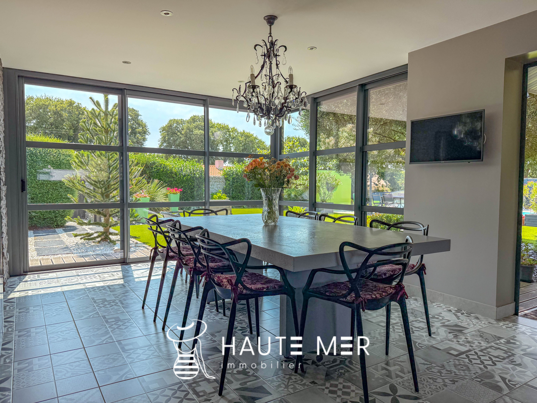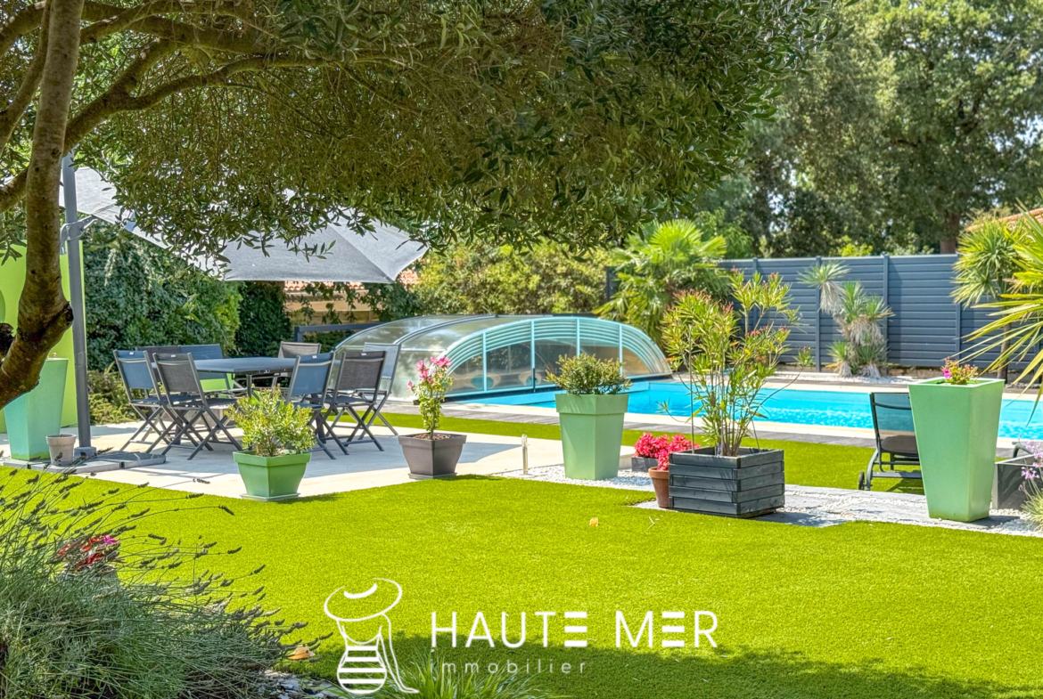 Dans un quartier résidentiel paisible et soigné, à deux pas des commerces et à quelques minutes des plages, cette villa d’architecte de 204 m2 vous surprendra dès les premiers instants. Derrière sa façade discrète, l’intérieur révèle une ambiance lumineuse et généreuse, portée par de beaux volumes, une hauteur sous plafond impressionnante et une architecture unique. Dès l’entrée, le charme opère : un vaste hall qui s’ouvre sur un salon baigné de lumière, animé par une cheminée contemporaine. La spacieuse cuisine, haut de gamme et ouverte, séduira les amateurs de partage. Un salon d’hiver fait le lien avec l’extérieur, offrant une vue apaisante sur la piscine.Côté nuit, la maison propose une chambre avec salle d’eau et dressing au rez-de-chaussée, une seconde chambre s’orientant sur le jardin et une salle de bains complètent cet espace. À l’étage, une mezzanine esprit loft accueille un bureau, menant à une deuxième chambre avec salle d’eau privative, idéale pour recevoir. Un spacieux garage, une buanderie et un bureau complètent le confort de la villa.À l’extérieur, l’ambiance est douce et préservée : un jardin plein sud sans vis-à-vis, deux terrasses, une piscine chauffée parfaitement intégrée… ici, tout est réuni pour savourer les saisons, en toute quiétude.
