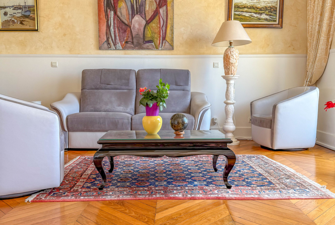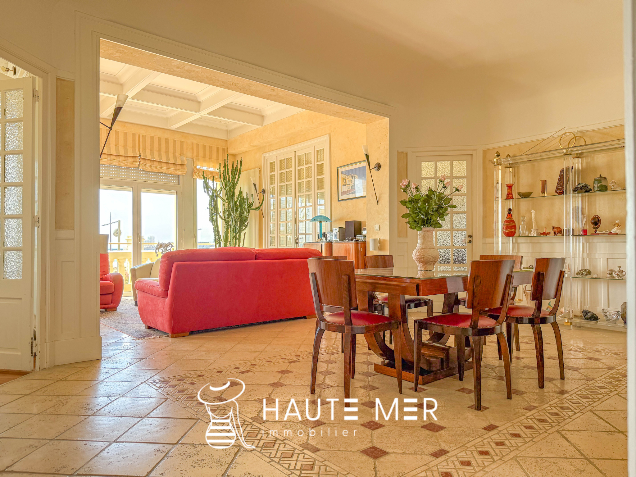 Face à l’océan, à quelques pas du marché Arago, cet ensemble immobilier, réparti sur deux plateaux, incarne avec justesse le cachet de l’ancien. Ses volumes généreux, baignés de lumière, sa distribution fluide et ses finitions soignées en font une adresse unique. Desservis par un ascenseur privatif, les deux appartements qui composent cet ensemble conjuguent espace, fonctionnalité et élégance. Le premier séduit par sa pièce de vie majestueuse de plus de 60 m2 face à la mer, sa cuisine séparée et équipée, ses trois belles chambres et ses deux salles d’eau. Le second révèle une belle réception, une cuisine indépendante, deux chambres, un bureau, et s’ouvre sur une terrasse de 55 m2 tourné vers la mer. Le charme opère dès les premiers pas : parquet en chevrons, hauteur sous plafond, lumière, et localisation exceptionnelle, au calme et au cœur de la vie sablaise. Un garage de 60 m2 vient compléter l’ensemble. Possibilité de division pour un projet à double vocation.