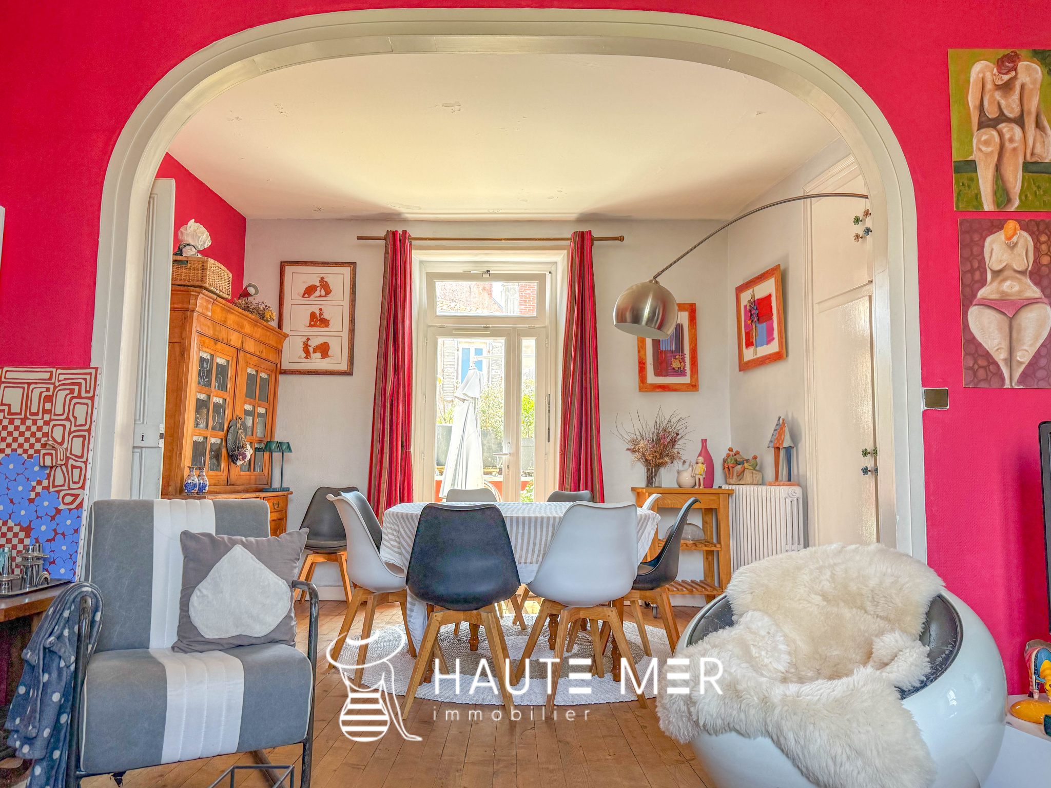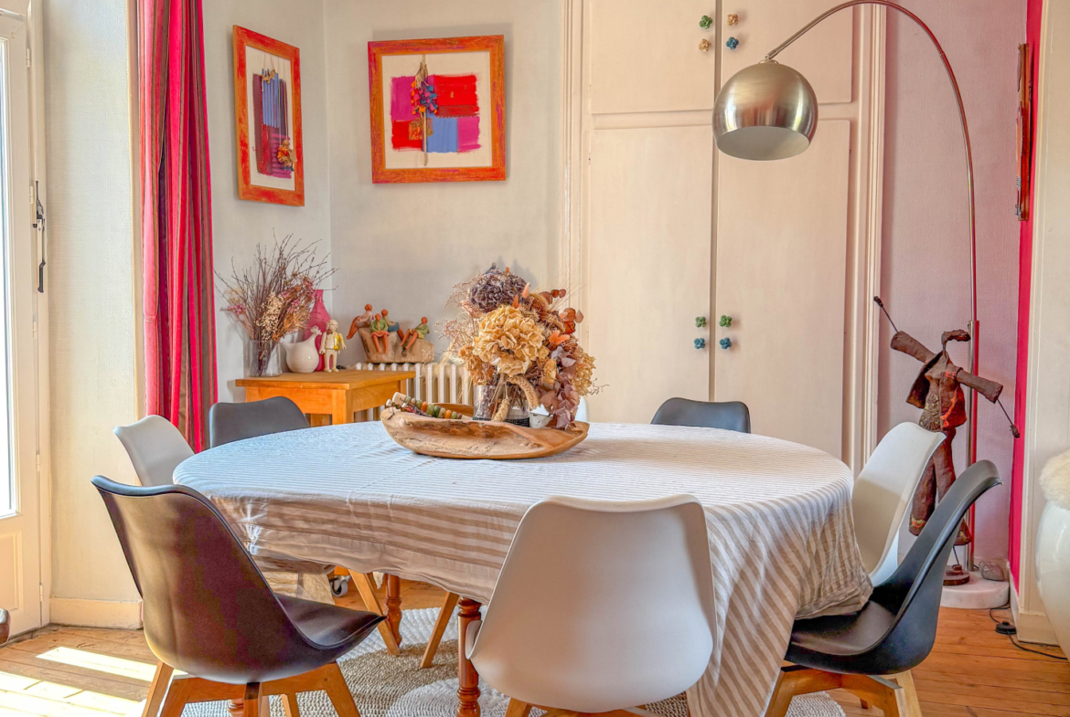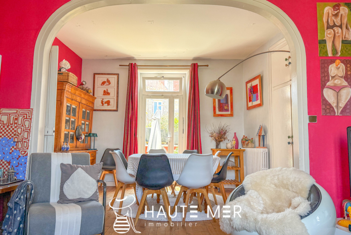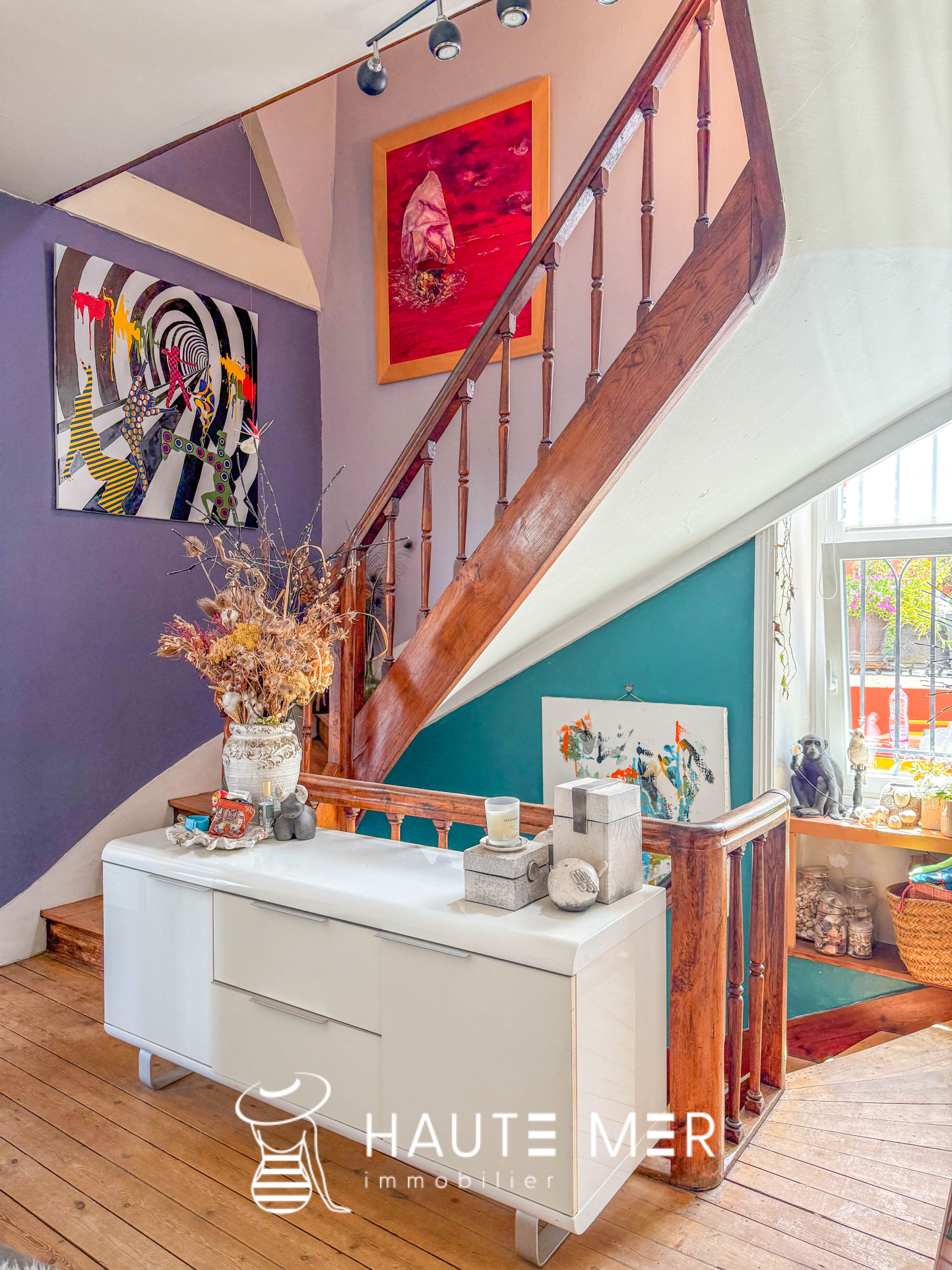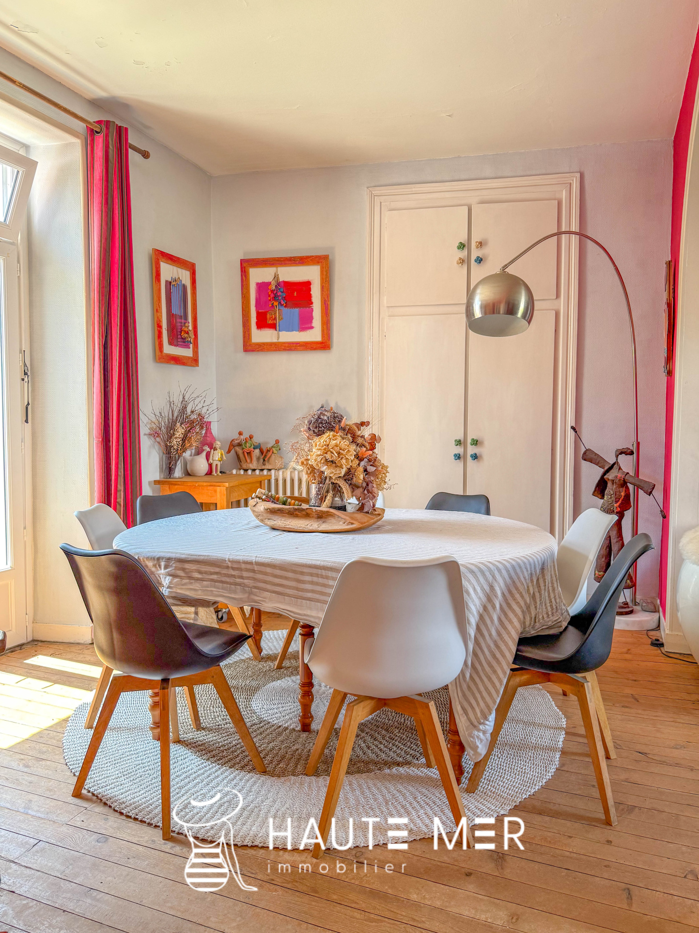 À quelques pas de la grande plage, du quartier Arago et des commerces, cette maison de maître au caractère affirmé déploie ses 215 m2 dans un cadre de vie vivant et privilégié, en plein cœur des Sables d’Olonne. Dès l’entrée, le charme opère : hauteur sous plafond, carreaux de ciment, et parquet en chêne massif insufflent à la maison une atmosphère élégante et chaleureuse, empreinte d’histoire. L’habitation principale, d’environ 150 m2, s’articule autour d’un salon traversant, d’une cuisine aménagée et équipée, et de quatre chambres confortables, accompagnées d’une salle de bains avec WC. À l’arrière, une vaste terrasse plein sud de 50 m2 prolonge naturellement les espaces de vie vers l’extérieur, en toute intimité. Un garage de 36 m2 et une cave occupant la totalité du sous-sol complètent les prestations. En rez-de-chaussée, deux commerces actuellement loués sous baux commerciaux apportent un revenu locatif sécurisé, sans nuire à la tranquillité des lieux.