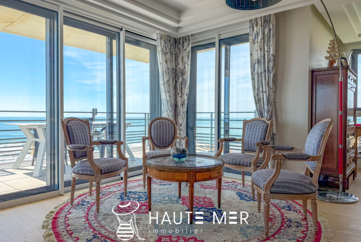 L’agence Haute Mer Immobilier vous présente cet appartement unique en exclusivité et vous le recommande pour la qualité remarquable de ses prestations, son panorama à couper le souffle faisant de chaque instant une expérience face à l’océan.