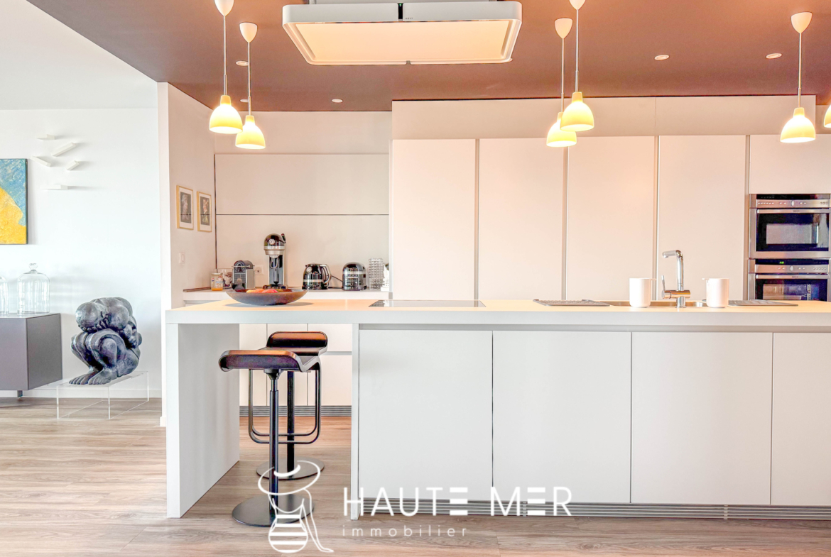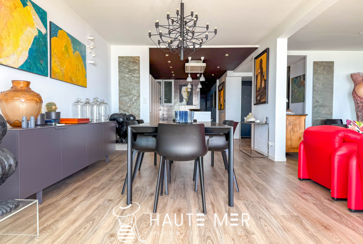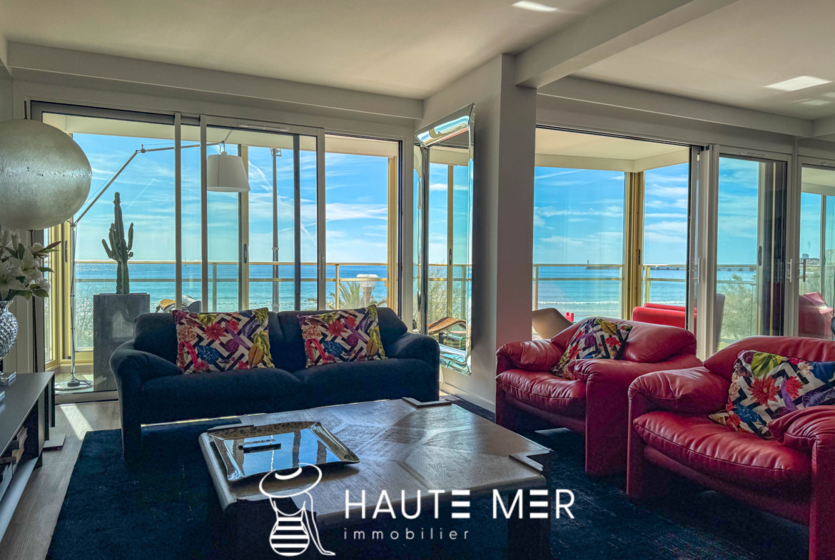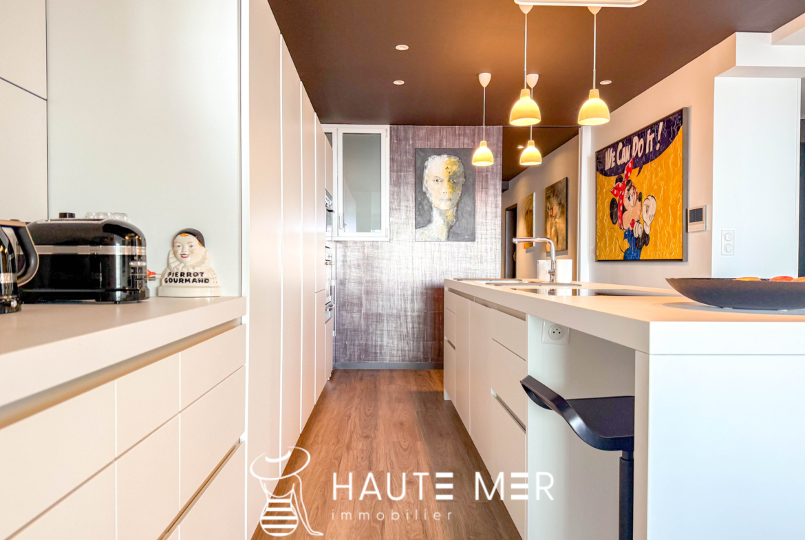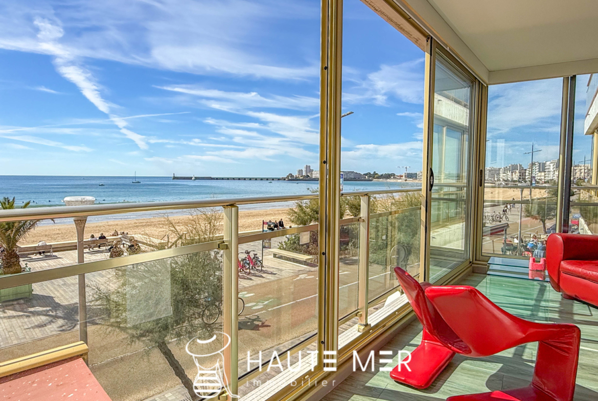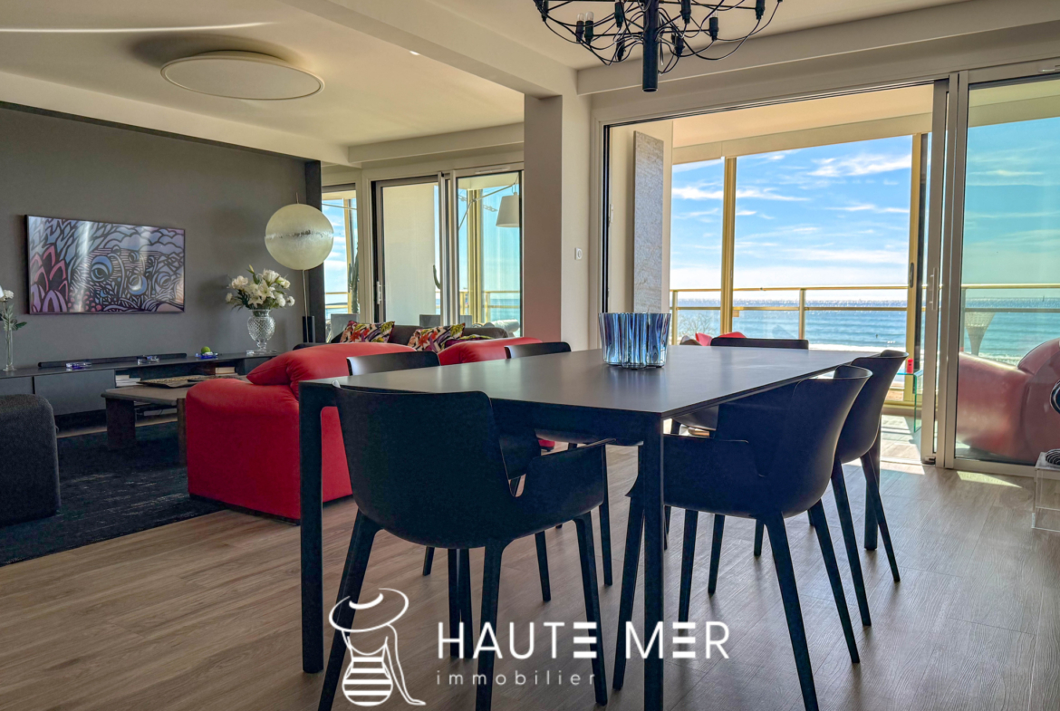 Placée au coeur du remblai des Sables d’Olonne, face à l’océan et à deux pas du centre-ville, découvrez ce superbe appartement traversant d’environ 140 m2, niché au sein d’une agréable résidence. Un bien rare qui séduit par ses finitions soignées et sa vue unique sur la grande plage. Dès l’entrée avec rangements, vous accédez à une pièce de vie lumineuse, baignée de lumière grâce à de larges baies vitrées. Salon et salle à manger s’ouvrent sur un panorama spectaculaire. La cuisine moderne, aménagée et équipée, ainsi qu’une buanderie viennent compléter cet espace convivial. La partie nuit se compose de deux chambres, d’une salle d’eau, d’un WC indépendant, et d’une suite parentale avec une salle de bains élégante et de nombreux rangements. À l’extérieur, une terrasse arborée de 31 m2 offre un véritable écrin de détente : idéale pour vos soirées d’été, un moment lecture ou des instants chaleureux entre amis. Ce bien exceptionnel allie confort, modernité et volumes généreux. Chaque détail a été pensé pour offrir un havre de paix face à l’océan. Atouts supplémentaires : possibilité d’un garage double avec dressing et douche en supplément.