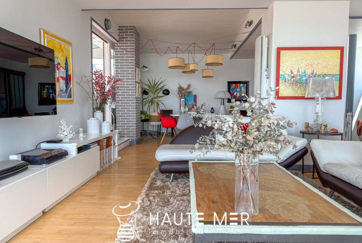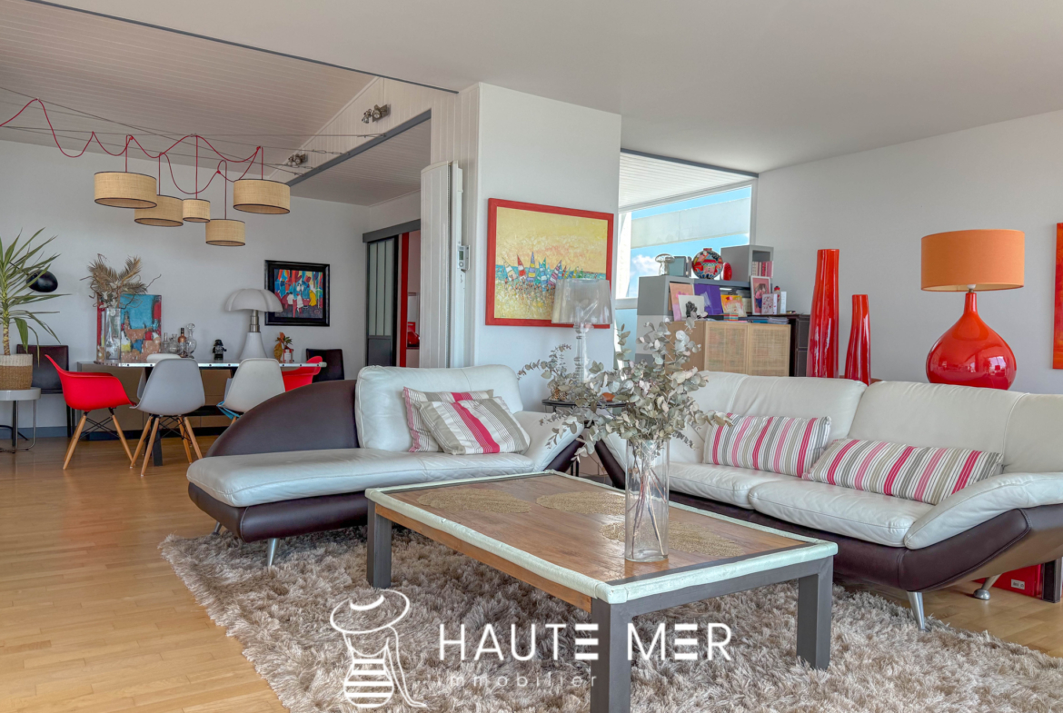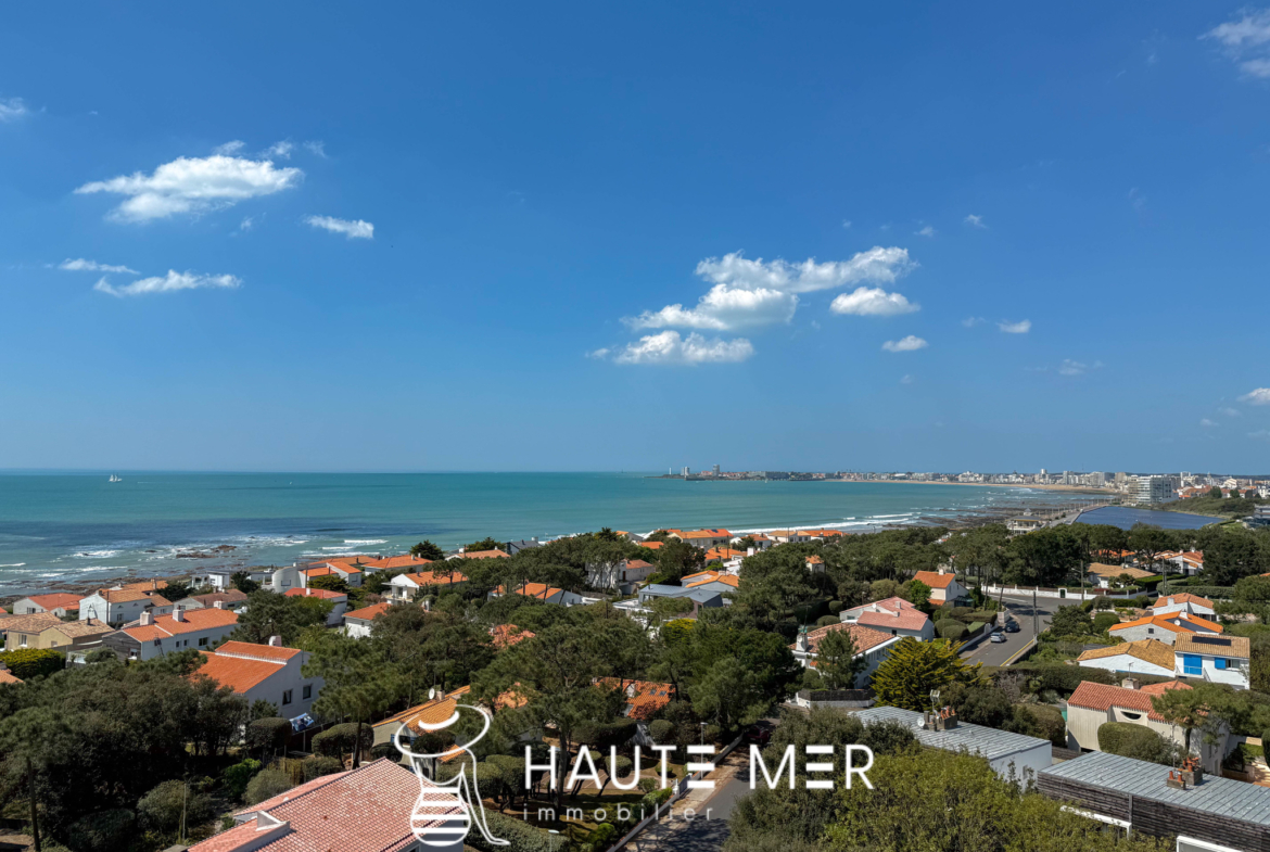 Face à l’océan et aux plages des Sables d’Olonne, à l’abri du bruit et des regards, découvrez cet espace de 109 m2 offrant une vue imprenable, à 180 degrés, sur le charmant quartier de la Pironnière. Ces panoramas saisissants, alliant terre et mer, créent une atmosphère unique. Niché au dernier étage de la résidence, l’appartement dispose d’un spacieux séjour de 46 m2 offrant un jeu de lumière constant avec 3 baies vitrées aux différentes orientations et profitant ainsi de la vue. Une confortable véranda se prolonge sur terrasse de 14 m2. Côté nuit, l’appartement dispose de 2 chambres avec balcons, profitant du bleu de l’océan, et d’une salle d’eau. Un garage au sous-sol de la résidence peut compléter en sus le caractère exceptionnel de ce bien. Rare et inattendu, cet appartement à la vue panachée de couleurs vives est une merveilleuse surprise à ciel ouvert.