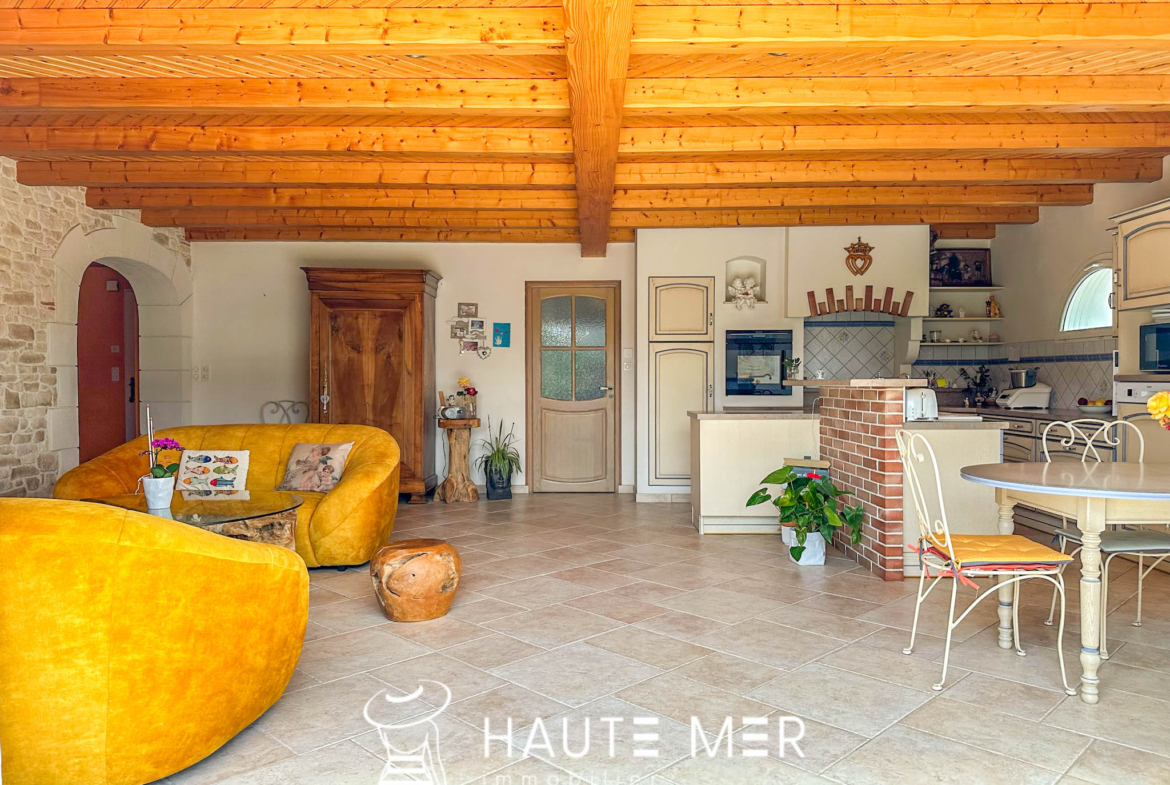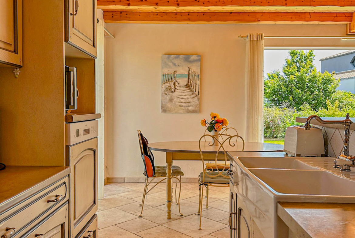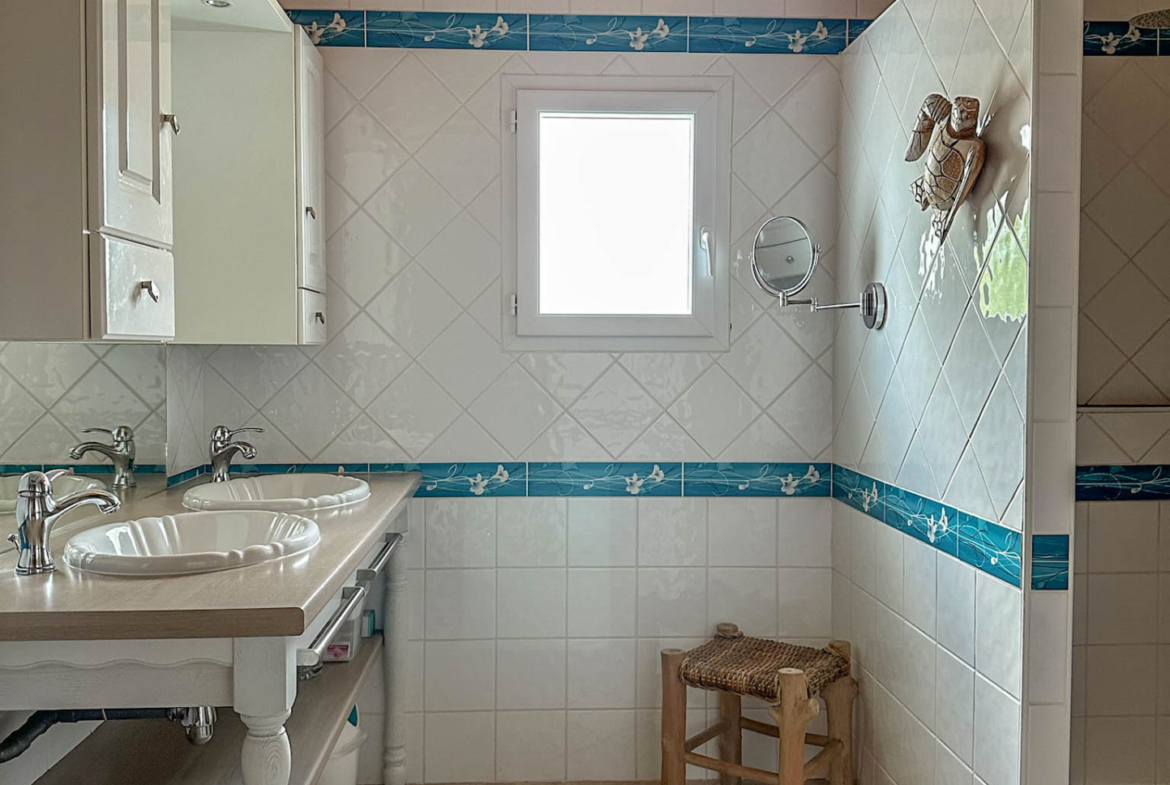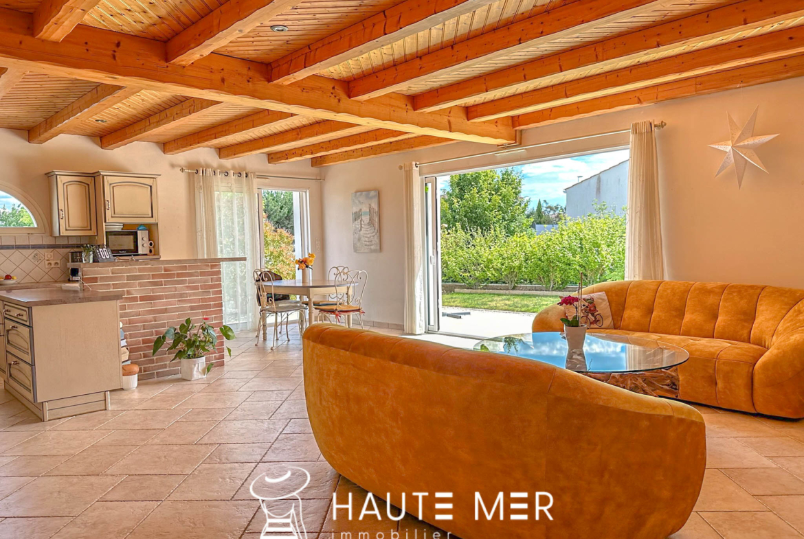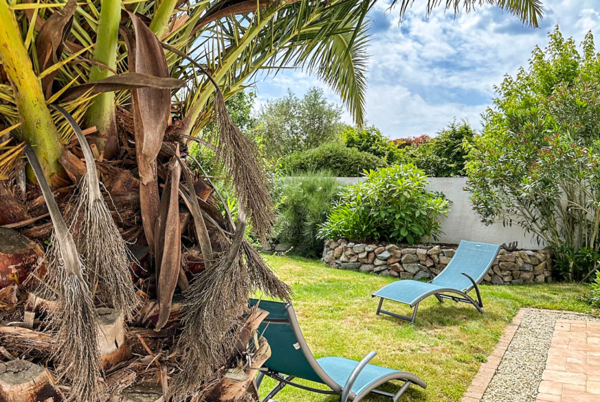 Située dans un quartier résidentiel aux allées arborées et soignées, cette maison résolument fonctionnelle vous séduira par ses volumes et sa lumière constante. La salle de séjour de 49 m2 accompagné d’une cuisine à l’allure provençale se prolongent sur un jardin clos, exposé au sud. L’espace nuit est composé de 3 belles chambres et d’une salle d’eau. Un cellier, une cave ainsi qu’un spacieux garage de 41 m2 complètent cette maison récente située à 1,5 km des commerces et 3 km de la plage.