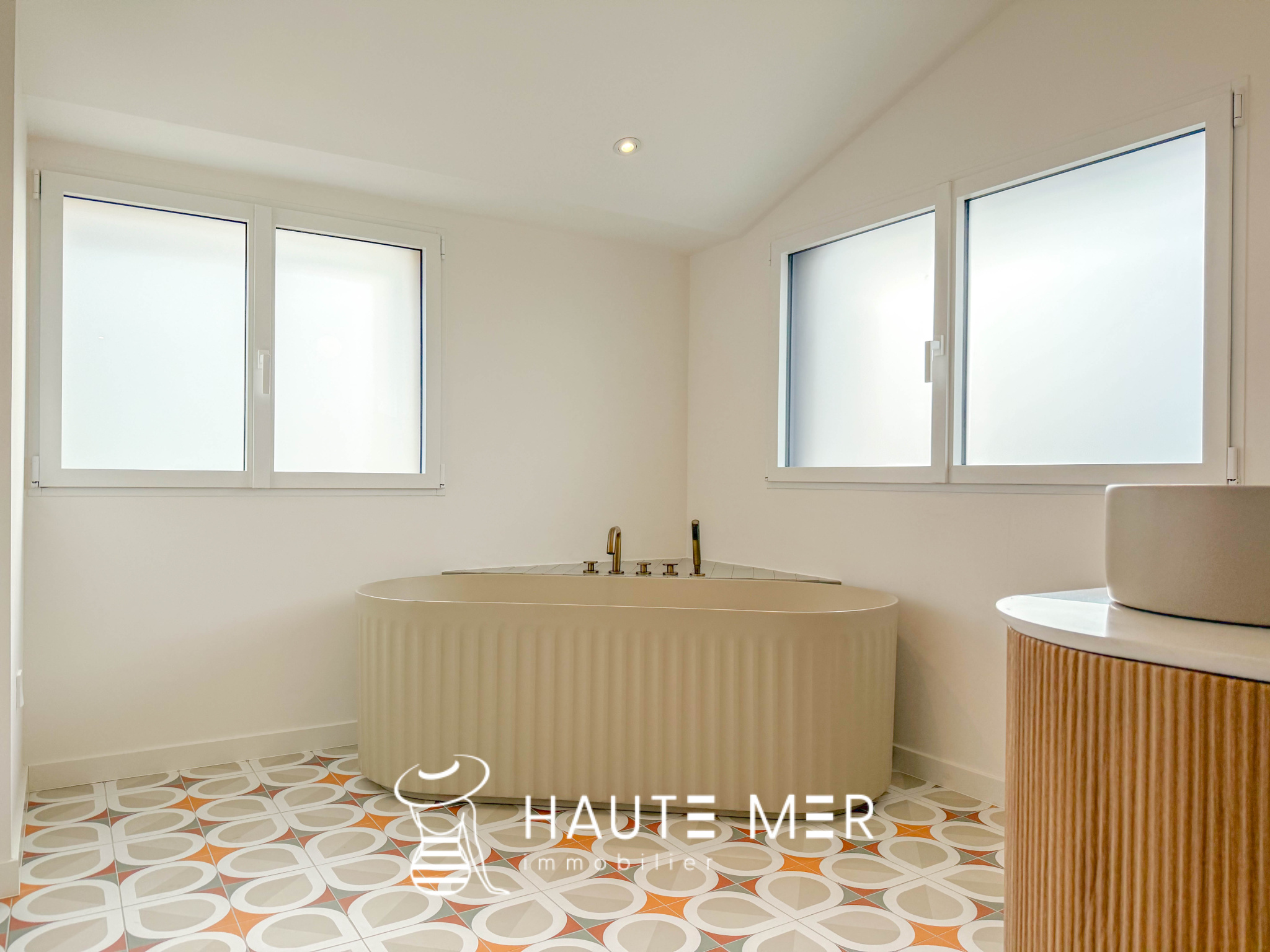 A quelques pas des commerces et de la plage, cette propriété aux volumes exceptionnels est née d’une métamorphose totale. Conçue à l’origine dans les années 70, cette demeure a été entièrement repensée et rénovée pour atteindre le niveau d’excellence du neuf, alliant élégance contemporaine et matériaux de très haute qualité. Implantée sur plus de 2 700 m2 de parc paysager, la villa offre un havre de paix absolu : une piscine extérieure pour savourer les beaux jours vendéens et un bassin intérieur pour le plaisir de nager toute l’année. De vastes terrasses en bois prolongent les espaces de vie, idéales pour recevoir en toute convivialité. À l’intérieur, près de 500 m2 de surface habitable baignent dans la lumière. Le grand salon constitue le cœur de la maison, convivial et ouvert sur le jardin. Cinq suites spacieuses, chacune pensée comme une suite d’hôtel, disposent de leur salle d’eau privative et d’un dressing pour un confort absolu. Les prestations haut de gamme se poursuivent avec une salle de cinéma, un espace fitness et un sauna, dédiés au bien-être et à l’évasion. L’ensemble se distingue par un calme exceptionnel, tout en bénéficiant de la proximité immédiate des plages et des commodités. Entièrement modernisée et vendue meublée, cette propriété prête à vivre incarne le raffinement dans sa forme la plus aboutie.