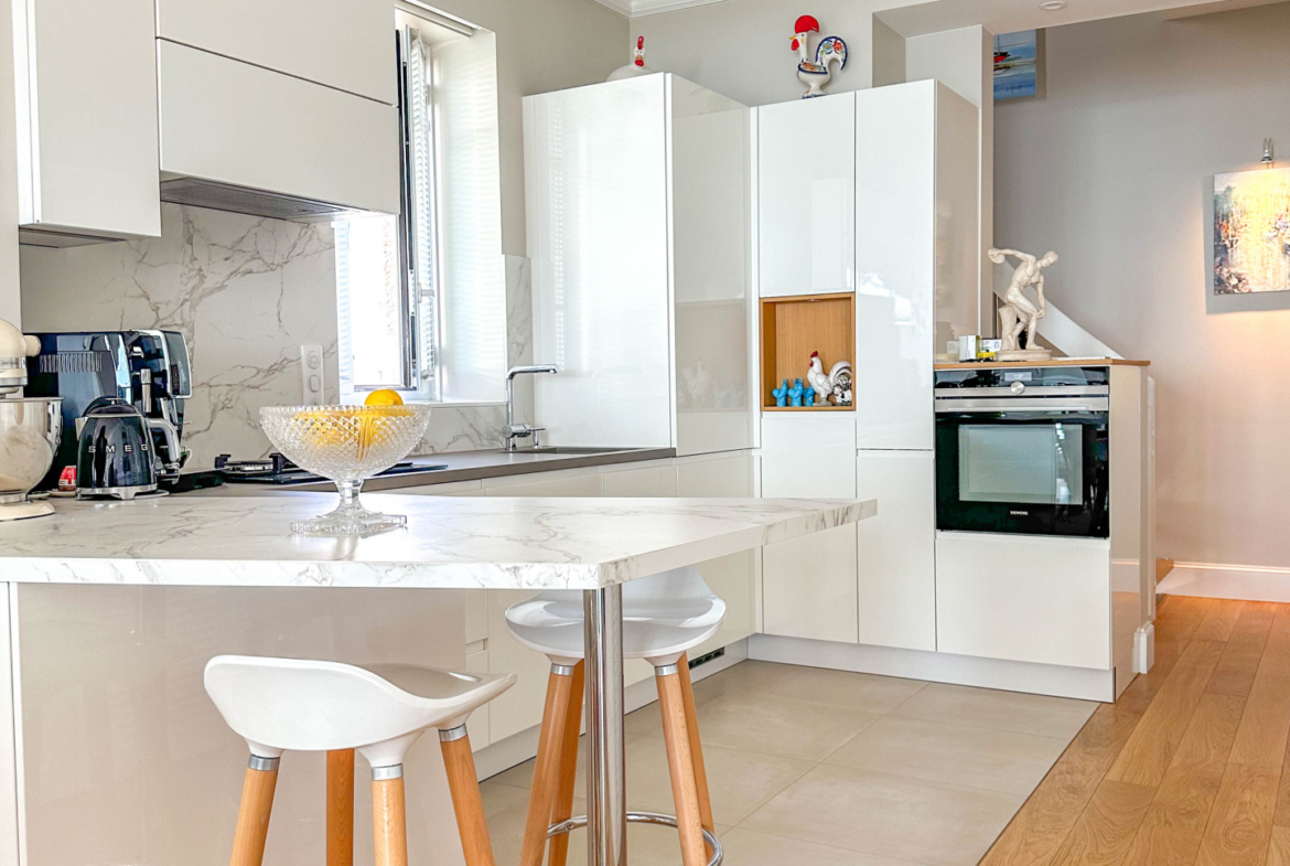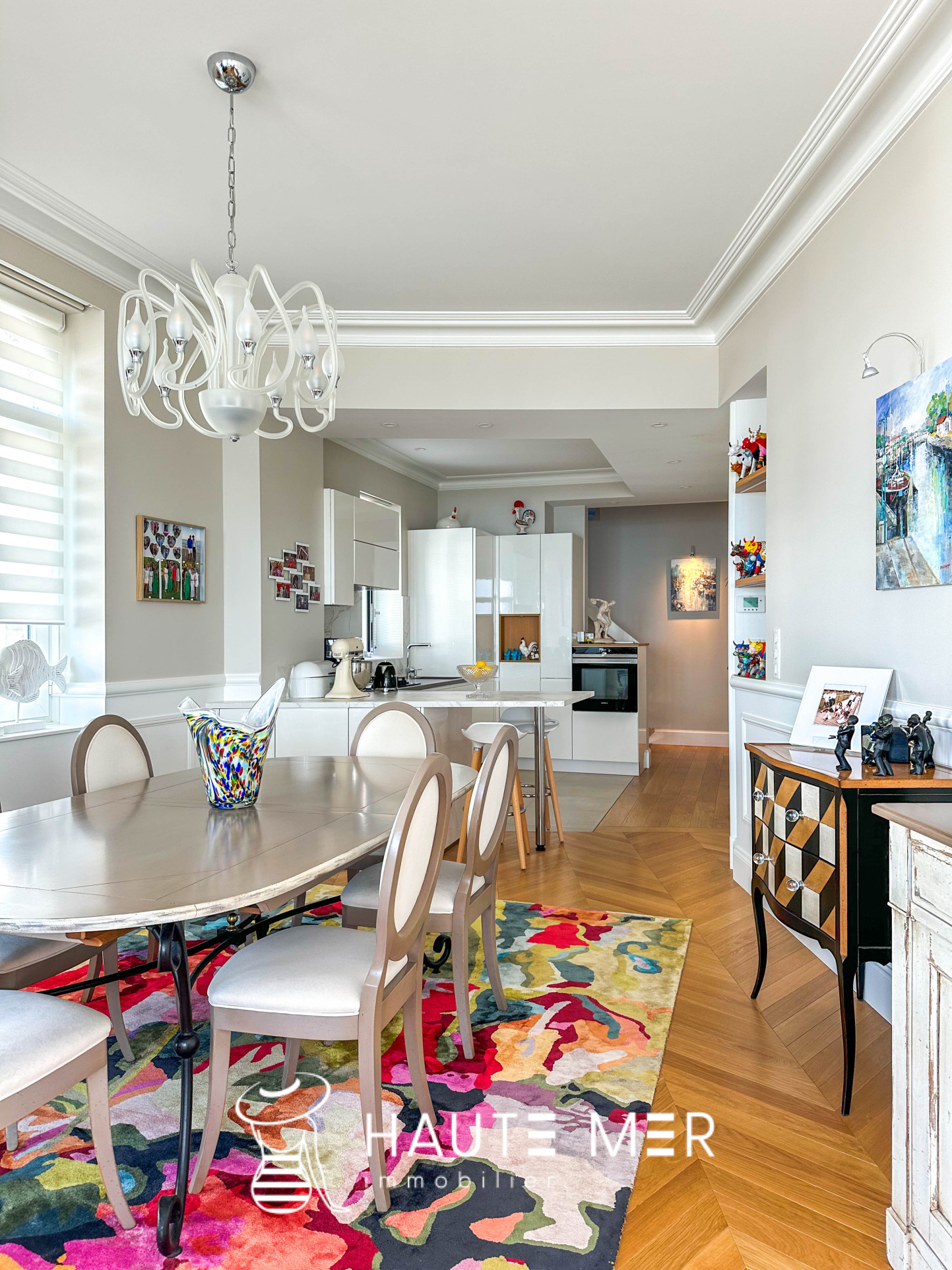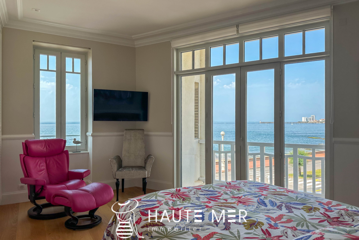 La quartier prisé des Présidents abrite une remarquable villa face mer. Ce décor raffiné aux prestations haut de gamme offre un cadre exceptionnel dans l’une des plus belles rues des Sables d’Olonne. L’espace de vie, à la luminosité constante, se prolonge vers l’extérieur dévoilant un tableau scintillant. Le parquet point de Hongrie et les moulures sont sublimées par les rayons persistants. Intimiste, la suite parentale laisse apparaître une décoration subtile et apaisante : la chambre ainsi que la salle d’eau dotée d’une baignoire profitent de la vue sur mer, tandis qu’un bureau et un dressing aménagé optimisent le confort de cet espace. Le dernier étage est dédié aux invités, offrant ainsi 2 chambres, une salle d’eau et un salon TV. Agrémenté de plusieurs balcons, de rangements, d’une buanderie et d’un ascenseur, cet écrin dispose d’un spacieux garage de 27 m2, procurant ainsi une vie citadine accomplie.