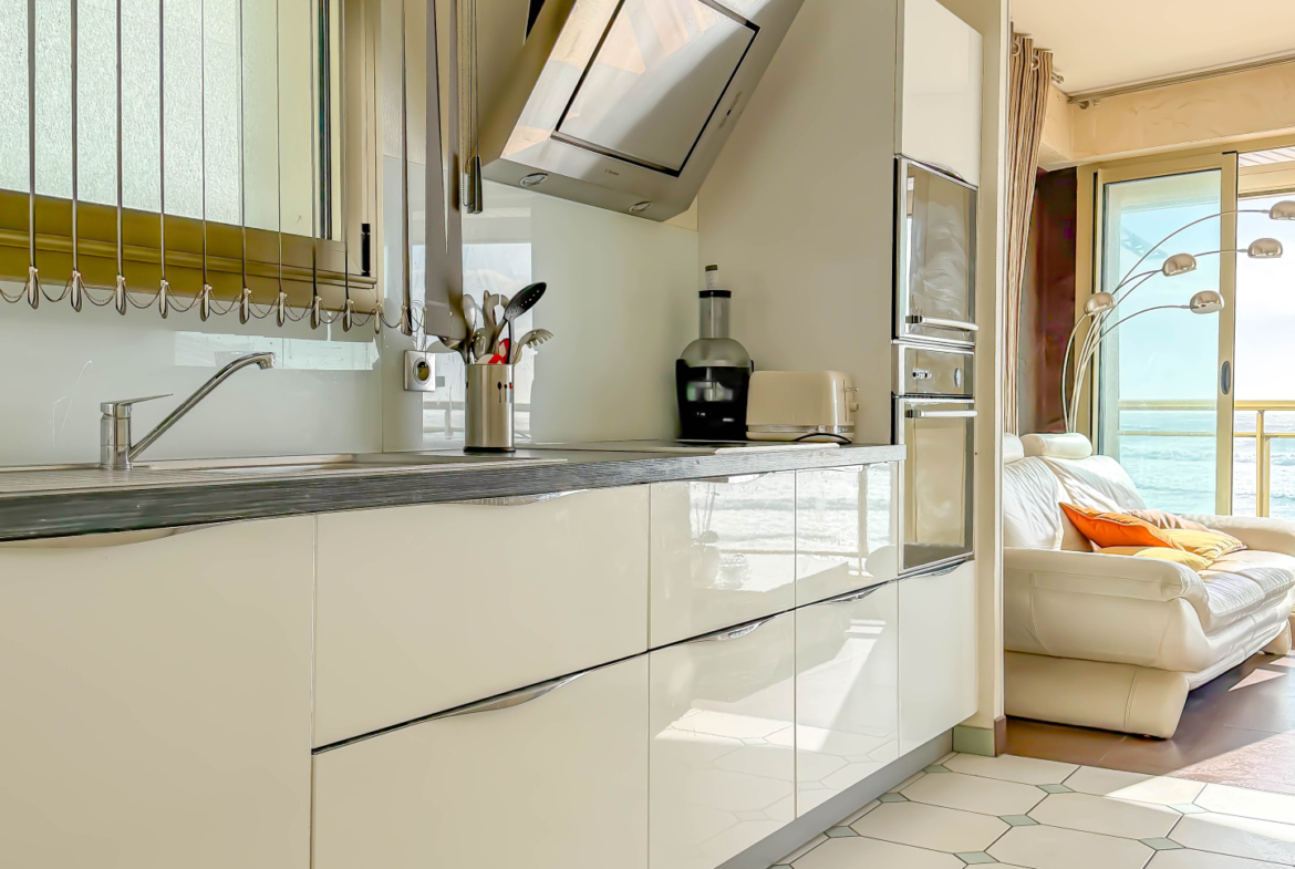 C’est au cœur du Remblai des Sables d’Olonne, face à l’océan, que cet appartement T3 prend place au sein d’une résidence soigneusement entretenue. Dès l’entrée, le ton est donné : volumes, lumière et élégance. La pièce de vie, baignée de lumière, s’ouvre sur une cuisine tournée vers l’horizon, comme une invitation à contempler l’Atlantique. Les larges baies prolongent naturellement le séjour vers un balcon front de mer, offrant un panorama permanent sur la grande plage. L’espace nuit accueille deux chambres confortables et une salle d’eau fonctionnelle. Pensé pour faciliter la vie au quotidien, l’appartement dispose également d’une buanderie, ainsi que de nombreux placards offrant des solutions de rangement appréciables. Une place de parking privative et une cave au sein de la résidence viennent compléter ce bien rare sur le Remblai. Lumineux, fonctionnel et élégant, cet appartement incarne un art de vivre tourné vers l’océan, ou chaque coucher de soleil devient un spectacle privé.